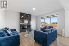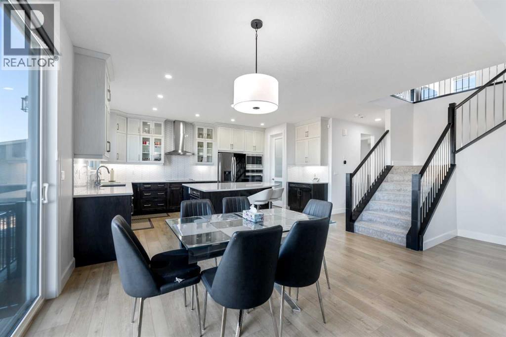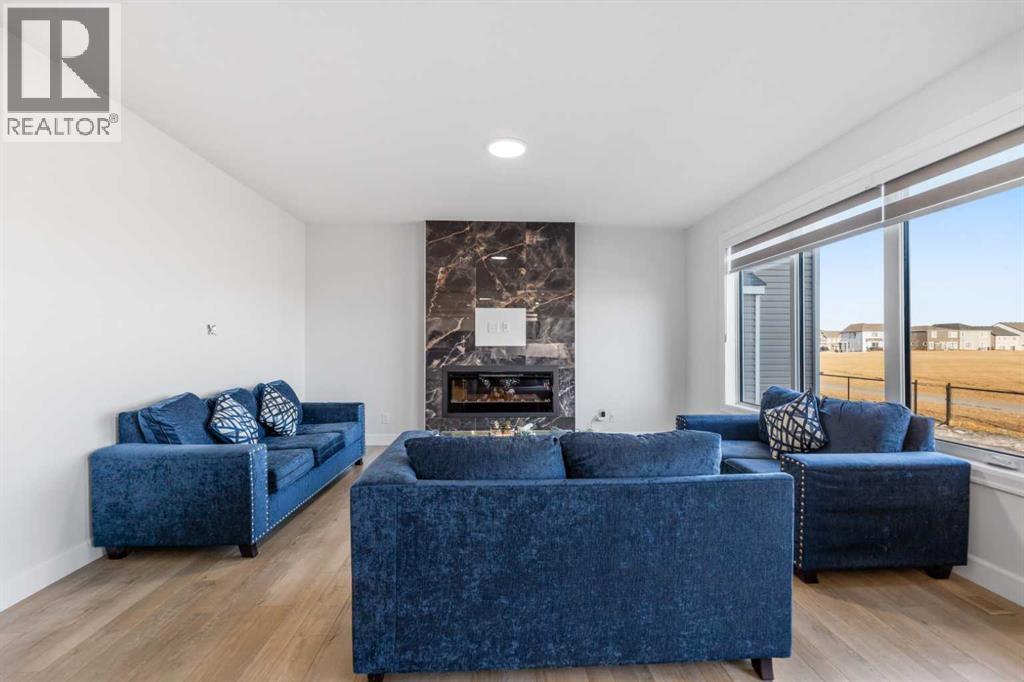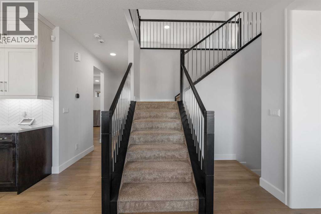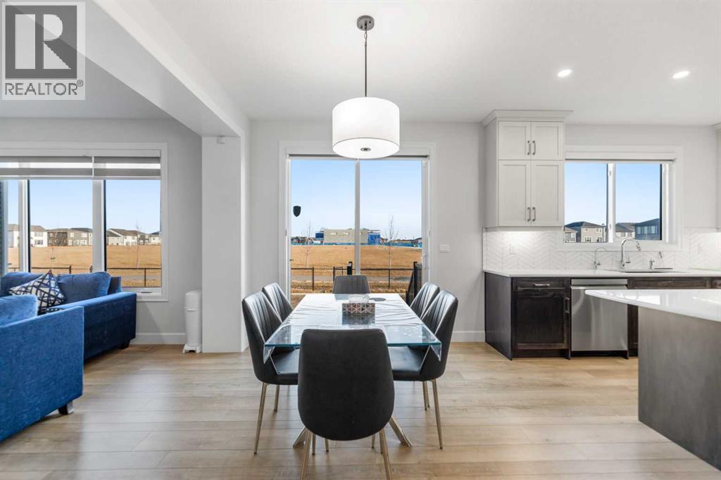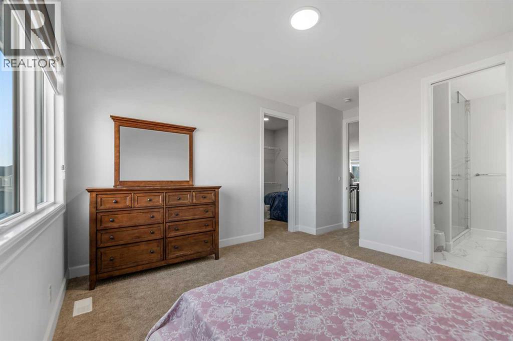 Welcome to 1116 Southwinds Green SW in Southwinds, Airdrie! Backing onto green space and a school, this upgraded 5-bedroom, 4 full-bathroom home offers approx. 2,800 sq. ft. above grade with over $200K in builder upgrades. Situated on a premium deep lot with an oversized backyard and separate basement entry. The main floor bedroom with full bathroom and two primary suites upstairs are thoughtfully designed. All three levels feature 9’ ceilings and 8’ doors. The open-concept main floor home includes upgraded luxury vinyl plank flooring, upgraded tile and carpet, triple-pane windows with motorized blinds, and a spacious living room with electric fireplace. The fully upgraded kitchen showcases two-tone cabinetry, built-in upgraded stainless steel appliances, electric cooktop, gas line rough-in, upgraded quartz countertops, large island, silgranit sink with soap dispenser, RO system, garburator, and walk-in pantry. Main-floor bedroom and full bath with standing shower ideal for guests or multi-generational living. Large mudroom adds functionality with ample storage space.Upstairs offers a huge bonus room, two primary suites each with walk-in closets and ensuites with dual sinks and large showers, plus two well sized additional bedrooms and full bath. Upper laundry with stackable washer/dryer and utility sink rough-in for future needs.Smart home with Wi-Fi–controlled appliances, lights, and garage door. Basement includes two legal-size windows and plumbing rough-in for future development.Premium green space location, front porch charm, and exceptional upgrades make this a rare opportunity in family-friendly Southwinds. (id:6769)