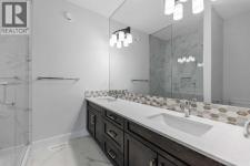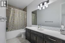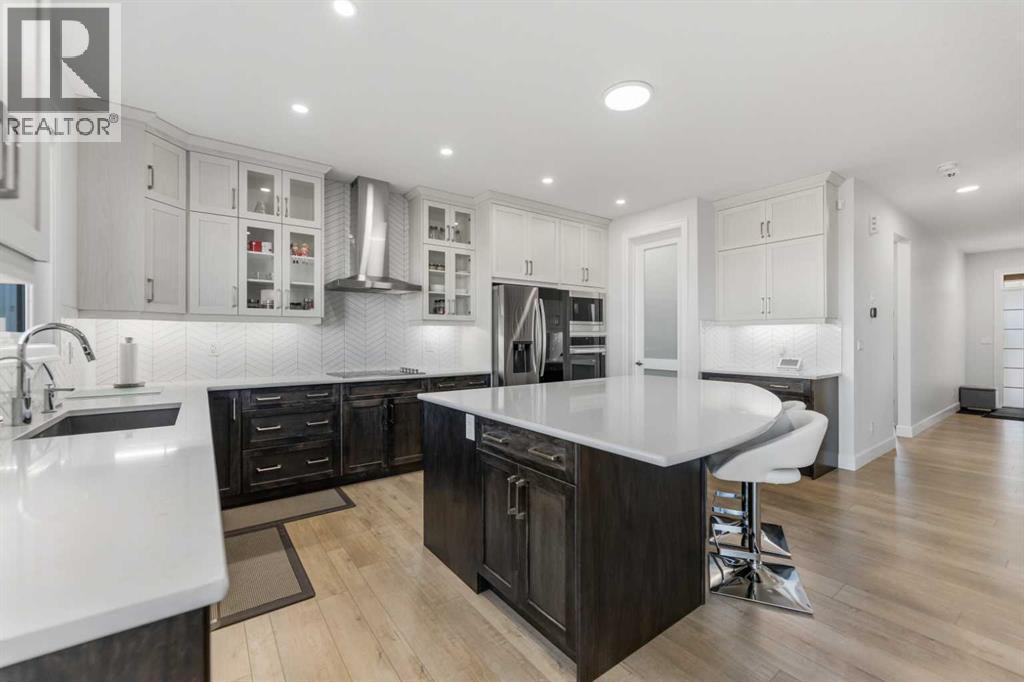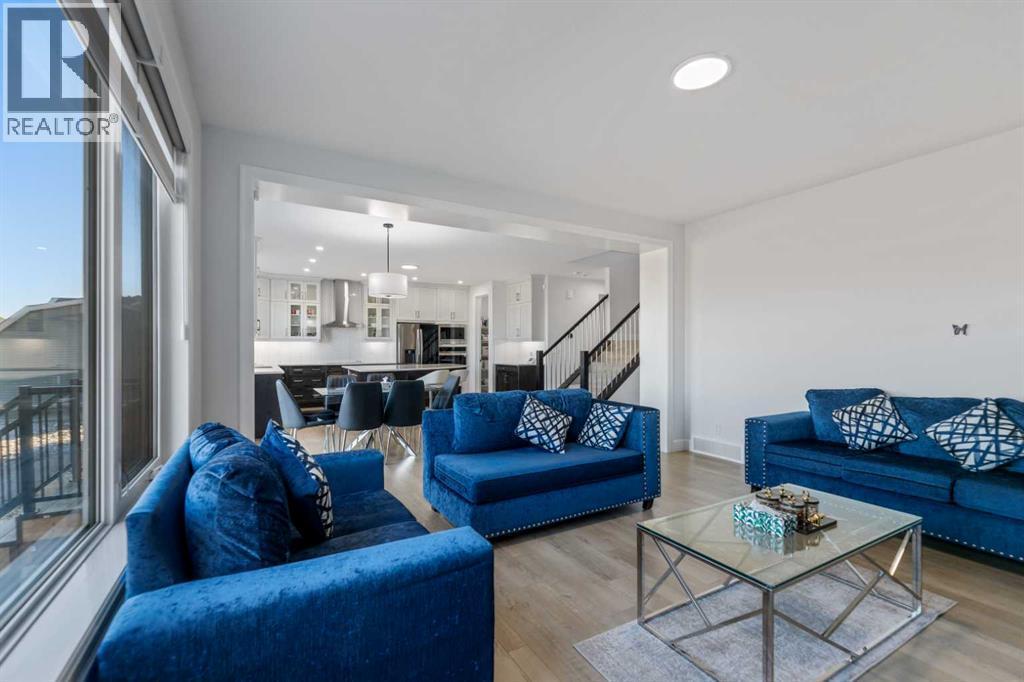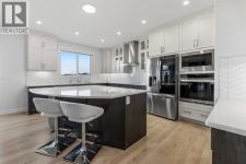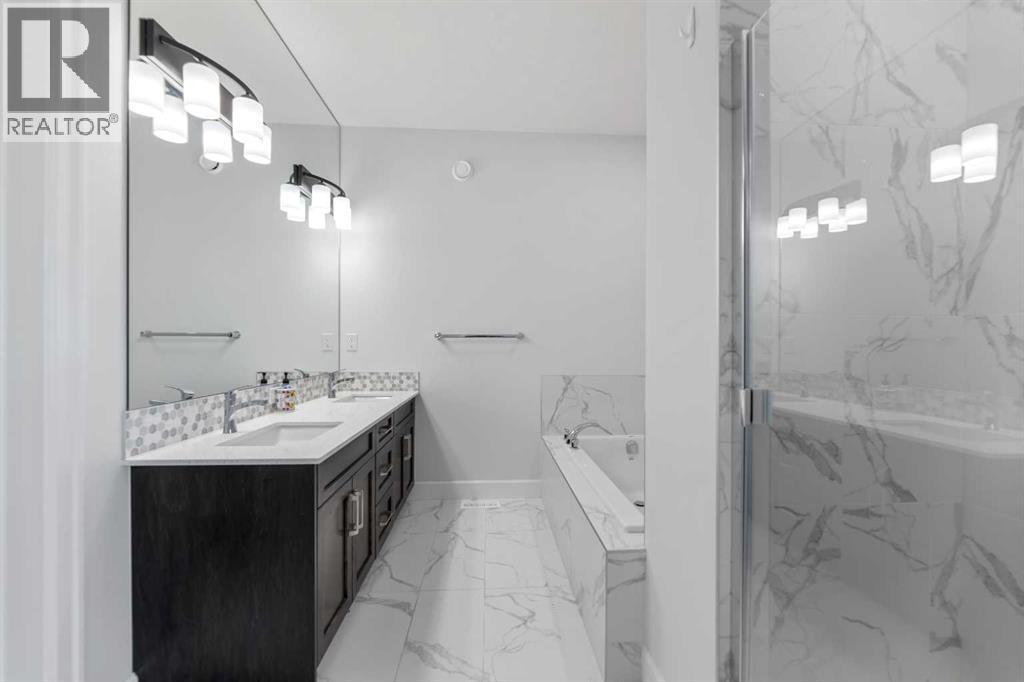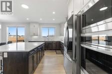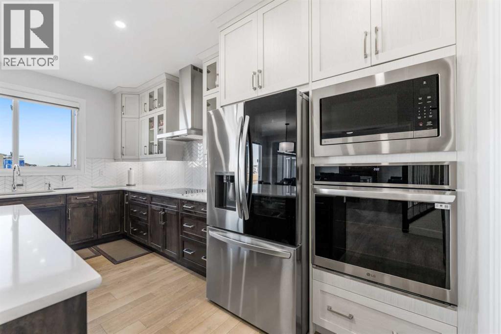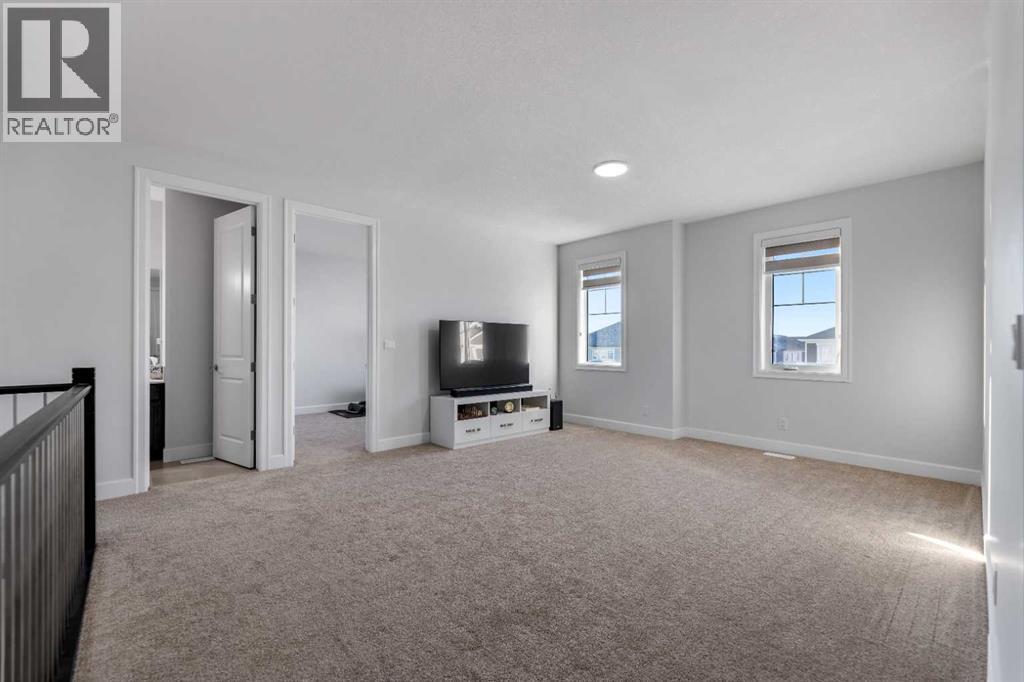 Welcome to 1116 Southwinds Green SW in Southwinds, Airdrie! Backing onto green space and a school, this upgraded 5-bedroom, 4 full-bathroom home offers approx. 2,800 sq. ft. above grade with over $200K in builder upgrades. Situated on a premium deep lot with an oversized backyard and separate basement entry. The main floor bedroom with full bathroom and two primary suites upstairs are thoughtfully designed. All three levels feature 9’ ceilings and 8’ doors. The open-concept main floor home includes upgraded luxury vinyl plank flooring, upgraded tile and carpet, triple-pane windows with motorized blinds, and a spacious living room with electric fireplace. The fully upgraded kitchen showcases two-tone cabinetry, built-in upgraded stainless steel appliances, electric cooktop, gas line rough-in, upgraded quartz countertops, large island, silgranit sink with soap dispenser, RO system, garburator, and walk-in pantry. Main-floor bedroom and full bath with standing shower ideal for guests or multi-generational living. Large mudroom adds functionality with ample storage space.Upstairs offers a huge bonus room, two primary suites each with walk-in closets and ensuites with dual sinks and large showers, plus two well sized additional bedrooms and full bath. Upper laundry with stackable washer/dryer and utility sink rough-in for future needs.Smart home with Wi-Fi–controlled appliances, lights, and garage door. Basement includes two legal-size windows and plumbing rough-in for future development.Premium green space location, front porch charm, and exceptional upgrades make this a rare opportunity in family-friendly Southwinds. (id:6769)