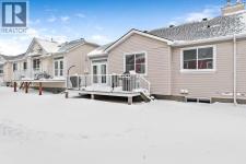 Welcome to a home that makes everyday life simpler. This semi-detached bungalow condo offers over 2,000 sq. ft. of finished living space and is located in a quiet community where snow removal and yard maintenance are included — perfect for anyone who wants more time to enjoy their days and less time spent on chores.Start your days with a coffee at sunrise on the covered front porch and end them on the rear deck for relaxed evenings.Inside, the main floor is bright and inviting with large windows, an open living and dining area, and a kitchen designed for real life: plenty of cupboard space, a breakfast bar, and room to gather with family and friends. The main level includes two spacious bedrooms, including a primary suite with a full ensuite. The additional full bathroom also offers ideal space to add a stackable washer and dryer if desired.Downstairs, the fully finished basement provides the extra space everyone wants — perfect for hobbies, a home gym, movie nights, or a comfortable spot for guests. A large bedroom with a huge walk-in closet and another full bathroom make it especially welcoming for visitors.Additional features include an attached single garage, central vac, water softener, and a new water heater (November 2025). Guest parking and a covered picnic area are just steps from the door and round out the friendly community feel.This is a bright, move-in-ready home in a peaceful setting — designed for easy living. Book your appointment today to come see everything this home has to offer! (id:6769)