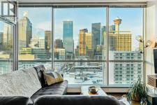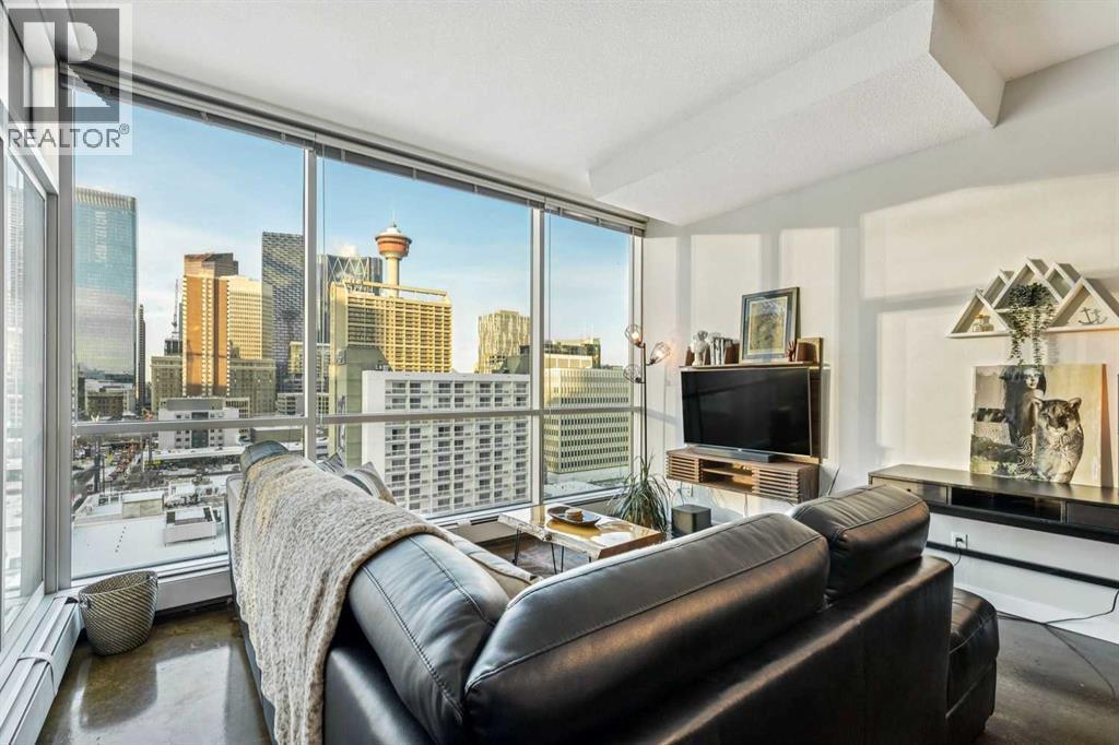 Wake up every day to postcard-worthy views of Calgary’s downtown skyline in the highly sought-after Colours building. This desirable two-bedroom floorplan showcases stunning floor-to-ceiling, north-facing windows that flood the space with natural light and frame incredible city views—an exceptional opportunity for buyers seeking both style and value. Upon entry, you’ll appreciate the polished concrete floors that add warmth and modern character throughout. The open-concept kitchen, dining and living areas offer seamless flow and flexible design possibilities for both everyday living and entertaining. The primary suite serves as a peaceful retreat with captivating downtown views, while the second bedroom easily adapts to your needs—whether as a guest room, work-from-home office, or creative studio. Step outside to your private balcony, complete with a natural gas hookup, perfect for evening barbecues and sunset lounging. Central air conditioning ensures year-round comfort, even on the hottest summer days. Residents of Colours enjoy communal bike storage, rentable private storage units, and a shared outdoor space. Downstairs, indulge in cocktails at the award-winning Proof, or pick up your favorite bottle from Vine Arts before settling in for a cozy night at home. You’re also just steps from First Street Market and acclaimed restaurants like Pat & Betty, Ten Foot Henry, and Calcutta Cricket Club. Enjoy walking access to the Stampede Grounds, the Scotiabank Saddledome, the upcoming Entertainment District, and everything the vibrant Beltline has to offer. Ideal for young professionals, first-time buyers, empty nesters, or investors, Colours is a short-term rental-friendly building—making this an exceptional lifestyle opportunity and a smart investment. This is downtown living at its finest! (id:6769)