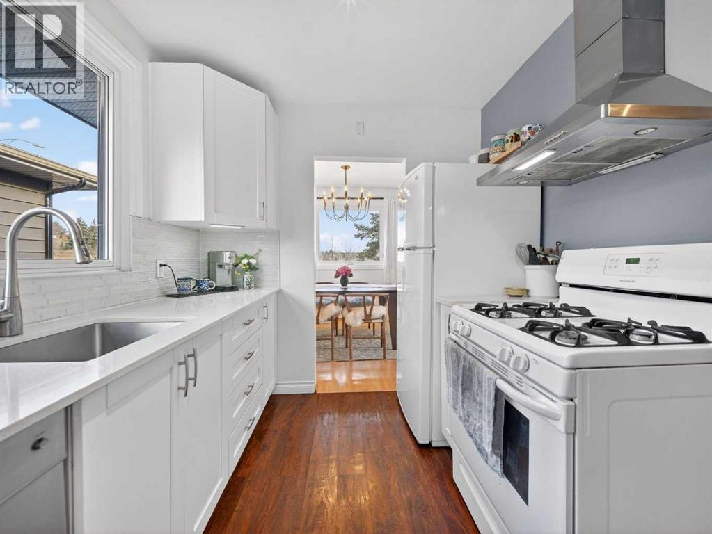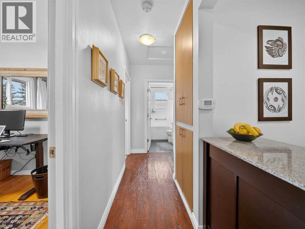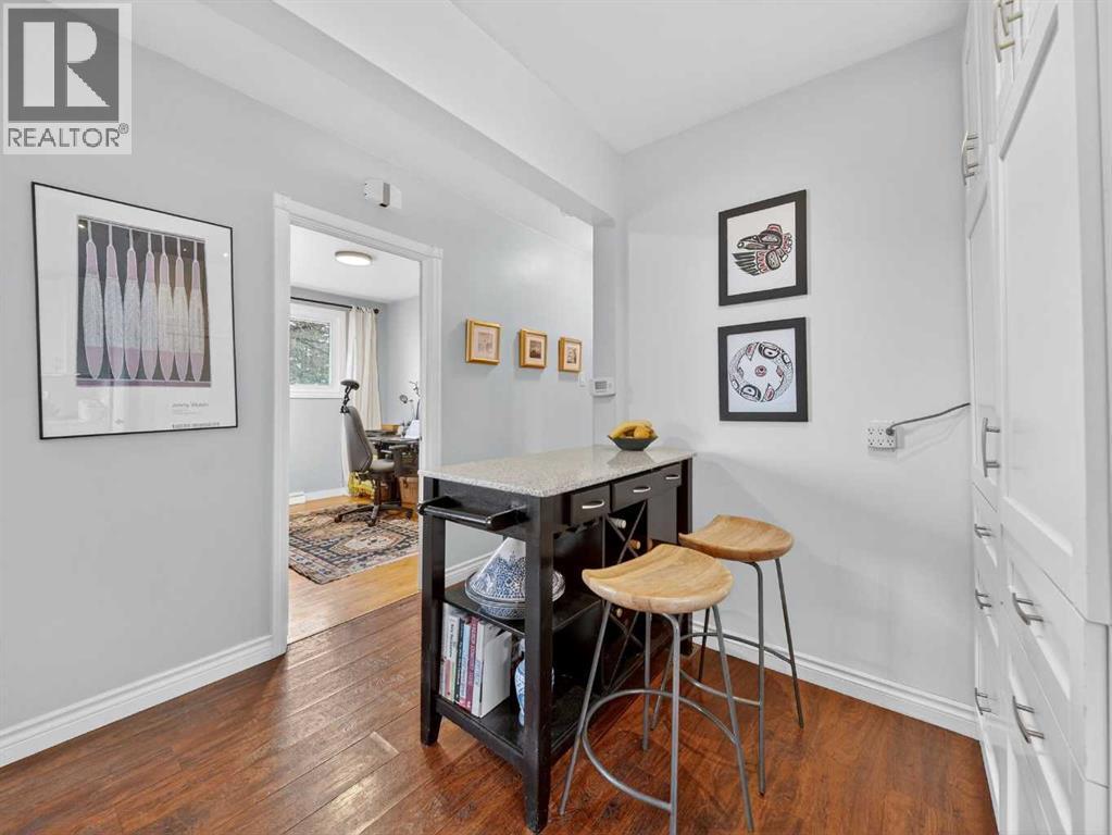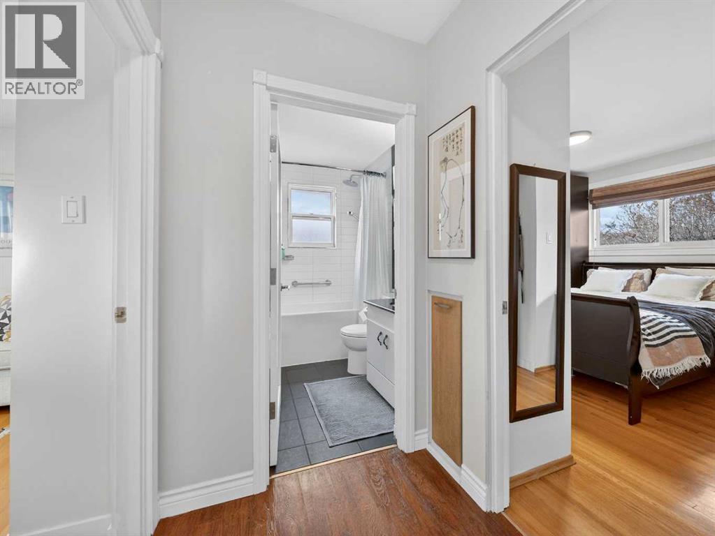 Renovated bungalow perfectly positioned on a sunny corner lot with alley access and picturesque park views. This home blends timeless charm with modern updates, offering versatility for families, investors, or those seeking additional income potential.The main floor features rich hardwood flooring, two spacious bedrooms plus a dedicated office, and a stylish 4-piece bathroom. The renovated kitchen is both functional and elegant, complete with quartz countertops, a gas stove, and ample cabinetry — ideal for everyday living and entertaining. A cozy wood-burning fireplace anchors the living space, adding warmth and character.Step outside to enjoy the brand-new front porch overlooking the park — the perfect spot for morning coffee. The property also includes a detached single-car garage with convenient alley access.Downstairs, the fully LEGAL basement suite offers a separate entrance, providing excellent rental potential or private space for extended family.An exceptional opportunity in a sought-after NW location. (id:6769)