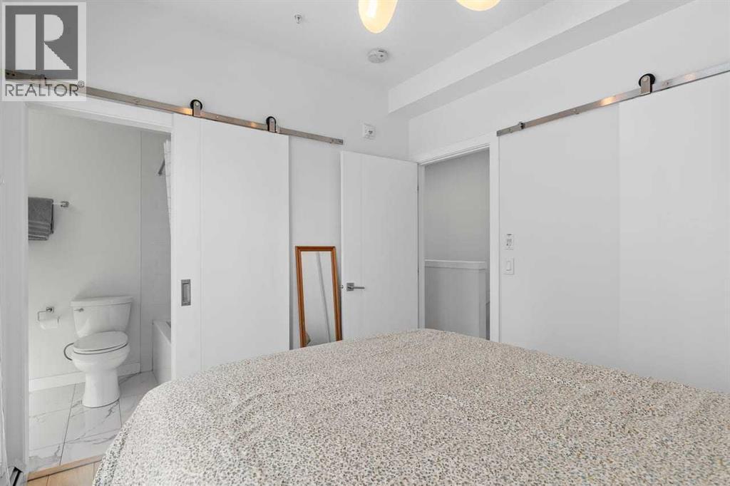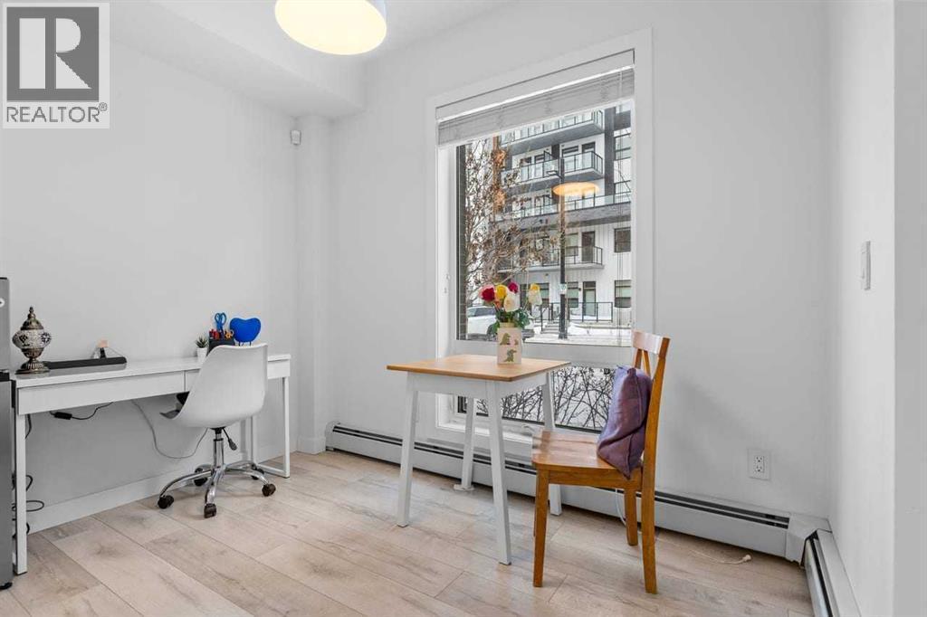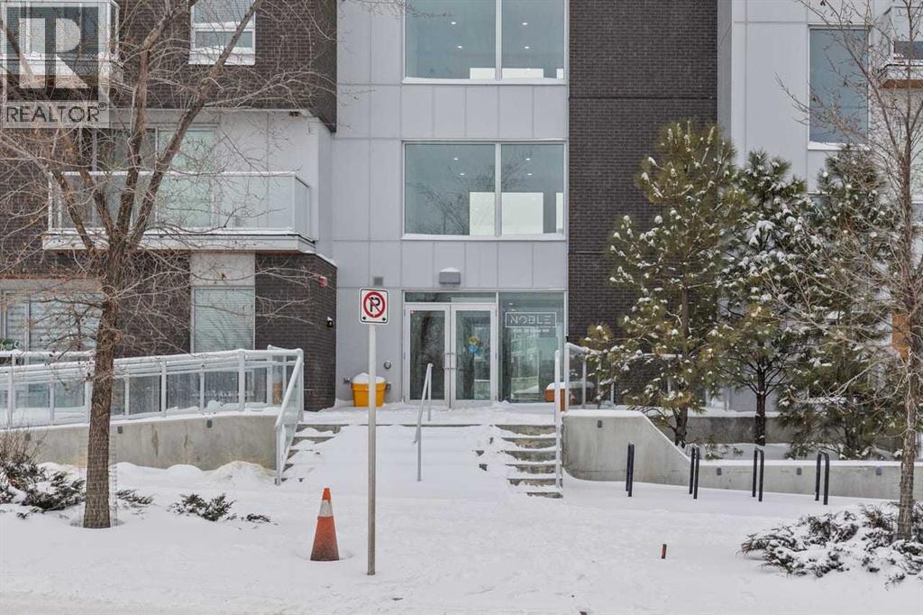 Welcome to Noble by Truman, an exceptional townhome-style residence in the heart of Calgary’s award-winning University District — one of only three communities in Canada where every building meets a minimum Built Green Gold certification. Designed for vibrant urban living with a remarkable Walk Score of 90, everything you need is just steps from your door — parks, cafés, restaurants, shopping, and entertainment. This rare two-level condo with a private exterior entrance offers the feel of a townhome with the convenience of condo living. Inside, you’ll find 2 bedrooms and 2.5 bathrooms thoughtfully laid out across two spacious levels, plus interior access to the building lobby and facilities, and your titled underground parking stall. The main level showcases 9’ ceilings, expansive south-facing windows, and contemporary laminate flooring throughout both floors. The gourmet kitchen is beautifully appointed with quartz counter tops, full-height cabinetry, a designer panel-ready energy-efficient appliance package, LED under-cabinet lighting, and an upgraded island featuring additional drawers and a 12" overhang — perfect for casual seating and entertaining.Upstairs, the bright and airy bedroom level continues with 9’ ceilings, attractive barn doors for closet’s and en-suite bath and premium finishes. Both bedrooms enjoy abundant natural light, and the well-appointed upgraded bathrooms carry through the home’s modern aesthetic. Enjoy not one, but two private south-facing outdoor spaces — a main-floor patio complete with gas line for your BBQ, and morning coffee, and a second upper patio, off the primary bedroom, perfect for evening relaxation outdoors. Hosting guests is effortless with convenient street parking right outside your private entrance, two underground visitor stalls, and additional exterior visitor parking. The location is truly unbeatable — minutes to the University of Calgary, Alberta Children’s Hospital, Foothills Medical Centre, and surrounded by boutiq ue shopping, dining, a theatre, and beautiful green spaces connected by wide pedestrian-friendly sidewalks.Modern design, sustainable living, and an unbeatable lifestyle — this is University District living at its finest. (id:6769)