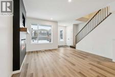 Boasting over 2130Sq Ft, with 3+1 bedrooms of fully developed living space, this gorgeous detached home offers stunning designer style comfortable modern living. Natural light floods the home with the ideal South facing exposure, where the foyer blends into the open living, dining and kitchen area. Tastefully finished subtle designer tones complement the earthy, timeless aesthetic of this home. The great room features luxury vinyl plank flooring throughout with a focal 50" electric fireplace with sleek custom oak mantle giving the living room flexible layout options. The kitchen is a chef's dream, featuring a spacious pantry, an amazing over sized island with upgraded quartz counters and loaded with custom designed drawers. Enjoy the gas range and counter depth refrigerator offering easy everyday function and convenience. Continuing on the main level, you'll find a convenient powder room, perfect for guests and daily use and a spacious mud room with bench and hooks for easy daily function. Upstairs, the primary bedroom is flooded with natural light and offers a spacious walk-in closet and ensuite with oversized shower. The two extra bedrooms are perfect for family members or guests, and they share a beautifully appointed central 4pc family bathroom. Enjoy the convenience of an upstairs laundry room with a full length hanging rack and additional shelving. The basement is thoughtfully designed by the builder with a generous family room, perfect for entertainment and relaxation, a 4-piece bathroom for added convenience and a fourth bedroom. The lighting throughout this home has been thoughtfully upgraded to recessed LED's which create an ambiance that is both warm and inviting. The exterior of this home is equally impressive, with a fully landscaped & fenced yard that adds to its curb appeal and creates a welcoming outdoor space for entertainment. A paved back alley-way provides access to space for secure parking or future dbl garage. This newer Morrison Home in Belmon t offers a fresh and comfortable living experience, blending contemporary design, functional elegance, and a sense of community that makes it a true gem. Across from a possible future school area and easy access to excellent commuter routes and shopping amenities. Presented in pristine move-in ready condition and available for quick possession! (id:6769)
