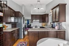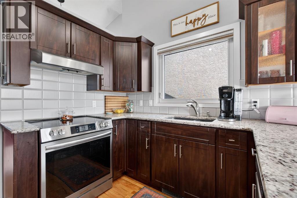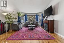 Tucked onto a massive, mature lot backing directly onto serene green space, this beautifully maintained bi-level walkout offers more than 2,300 sq ft of developed living space and the lifestyle you’ve been waiting for. From the moment you step inside, vaulted ceilings and expansive windows flood the main floor with natural light, highlighting the rich hardwood flooring and creating a warm, welcoming atmosphere throughout the living and dining areas. The thoughtfully designed kitchen blends style and function with maple cabinetry, granite countertops, and stainless steel appliances, making it the perfect space to cook, gather, and entertain. The main level features two generous bedrooms, with the option to easily convert back to three, along with two full bathrooms designed for everyday comfort and flexibility. Downstairs, the bright walkout level is equally impressive, complete with in-floor heating, wide-plank luxury vinyl flooring, and a spacious recreation area anchored by a cozy gas fireplace. Two additional bedrooms or a bedroom and home office, a modern 3-piece bathroom, and a dedicated laundry space offer versatility for growing families, guests, or remote work. Step outside to enjoy the sunny south-facing backyard, beautifully landscaped with stone accents and Rundle rock, plus a durable rubberized deck, a new deck umbrella, and a plug-and-play inflatable hot tub for year-round enjoyment. Permanent Gemstone exterior lighting (2024) adds both style and convenience. Along the side of the home, you’ll find a large storage shed with a secure, lockable gate, offering excellent space for tools, toys, and seasonal storage. Major upgrades include roof (2021), hot water tank (2024), leaf filter system with lifetime warranty (2024), furnace, and water softener — offering long-term peace of mind and value. A double attached garage and direct access to extensive walking paths and open green space complete the package. This is a rare opportunity to own a move-in-ready ho me that perfectly balances comfort, thoughtful upgrades, and an unbeatable location close to everything that matters. (id:6769)