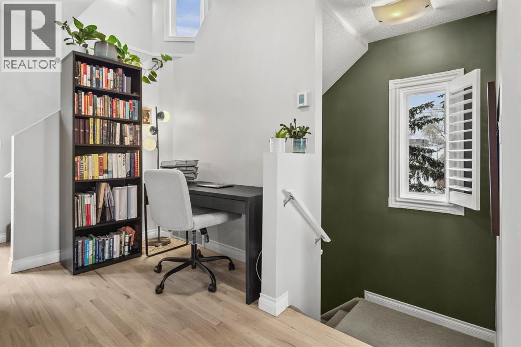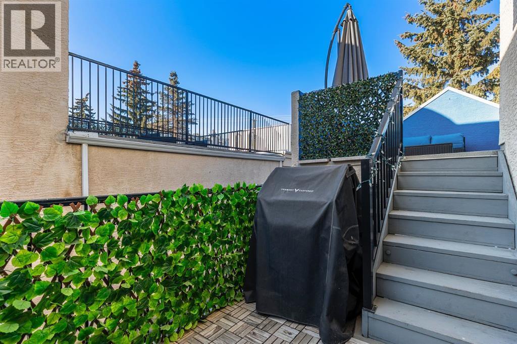 OPENHOUSE FEB 21: 1-3PM. Fantastic end-unit townhome in the heart of Bankview offering a rare double car garage and an incredible rooftop patio! With 1,564 square feet of thoughtfully designed living space, this is an exceptional opportunity to live walking distance to downtown and directly across from a large park and tennis courts. Step inside to a welcoming open-concept main floor featuring 9-foot ceilings and a spacious layout designed for both everyday living and entertaining. The dedicated dining area easily accommodates a large table, while the impressive U-shaped kitchen offers stainless steel appliances, granite countertops, abundant cabinetry, and generous counter space. Enjoy beautiful park views right from your window as the kitchen flows seamlessly into the expansive living room, centred around a cozy gas fireplace with a designated nook for a desk or workspace.French doors lead to the show-stopping outdoor space — a private patio that wraps around to stairs leading up to the massive rooftop terrace, perfect for entertaining, relaxing, and enjoying the surrounding views. Upstairs you’ll find two well-sized bedrooms, two full bathrooms, and convenient upper-floor laundry. The primary suite is generously sized with large windows overlooking the park, an updated ensuite bathroom, and a walk-in closet.Between the main level and lower level, you’ll discover a fantastic and unique recreation room exclusive to this unit — ideal for a man cave, movie room, home office, or flex space. Complete with a second gas fireplace and beautiful California shutters, it’s a cozy and versatile retreat. The double attached garage truly feels like an extension of the home, featuring epoxy flooring, space for two vehicles, and two dedicated storage areas.Additional upgrades include triple-pane windows (2023), a high-efficiency furnace, heat pump, tankless water heater, water softener, humidifier and thermostat (2022), along with updated paint, bathrooms, fixtures and more. L ow condo fees of $367 per month and an unbeatable location make this home a standout opportunity. This impressive Bankview townhome truly has it all — space, style, updates, and exceptional outdoor living. Be sure to review the attached feature sheet for a complete list of upgrades and features. (id:6769)