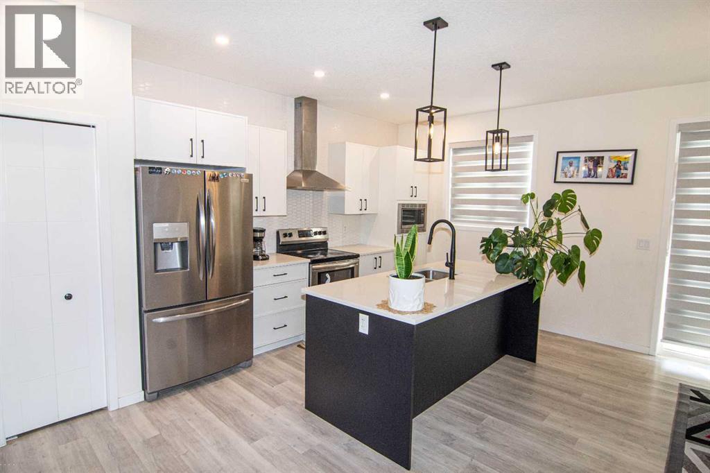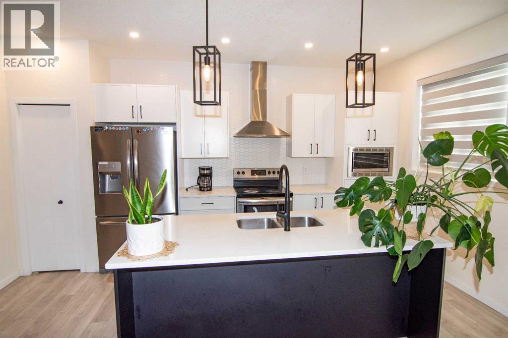 Welcome to this impeccably maintained townhouse in the highly sought-after SouthPoint Park community of SW Airdrie. Offering 3 bedrooms, 2.5 bathrooms, and a versatile lower-level flex space, this residence seamlessly blends modern style, thoughtful design, and everyday comfort.Step inside to a bright, open-concept layout designed for both functionality and elegance. The lower level features a spacious flex area—ideal for a home office, fitness studio, media room, or play space—providing flexibility to suit your lifestyle needs.The main level showcases beautiful vinyl plank flooring throughout and an effortless flow between living spaces. At the heart of the home is a stunning white kitchen accented with striking black finishes. Designed with both form and function in mind, it features a generous centre island, sleek stainless steel appliances, quartz countertops, and a dramatic full-height tile backsplash. Ample cabinetry and counter space make this kitchen perfect for everyday living and hosting gatherings alike.Across from the kitchen is a spacious dining area with direct access to a private balcony—an inviting extension of your living space. Adjacent, the comfortable and well-proportioned living room offers the perfect setting to relax or entertain. A convenient powder room completes this level.On the upper level, the primary suite provides a private retreat, complete with a 3-piece ensuite. Two additional well-sized bedrooms, a full bathroom, and the convenience of upper-level laundry complete the upper floor.The attached double garage offers both practicality and additional storage, while the spacious balcony creates an ideal outdoor escape for morning coffee or evening relaxation.Ideally located just steps from schools, playgrounds, and everyday amenities, this home presents an exceptional opportunity for families and modern buyers alike. With its strategic location, thoughtful layout, and outstanding value, this turnkey residence delivers comfort , convenience, and lifestyle in one exceptional package.Don’t miss your chance to make this property your own — schedule a private showing or connect for early access today!??? (id:6769)