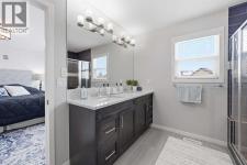 Welcome to the ultimate lake-lifestyle retreat in Auburn Bay. Set on one of the largest lots in the area; an impressive 50% larger than the average! This nearly 2,100 sq. ft. home offers a rare fusion of space, sustainability, and sophisticated style. The heart of the home is a chef-inspired kitchen, featuring floor-to-ceiling cabinets, a spacious pantry, and one of the largest islands you will ever see, comfortably seating six. This space is perfect for hosting Sunday brunch or evening entertaining. The living room features a cozy fireplace, and the dedicated office nook is a great added feature for modern work or study. The main & upper floors flow seamlessly with durable vinyl plank flooring and an open-concept layout, all bathed in natural light. Upstairs, you will discover a massive bonus room, three spacious bedrooms, including the primary suite with a luxurious ensuite and a walk-in closet. A built-in desk area and a dedicated laundry room complete this level. This home is packed with high-value upgrades designed for efficiency and comfort, including fully paid-off solar panels to curb utility costs, triple-pane windows for superior energy efficiency, central A/C, and a water softener. Outside, enjoy the MASSIVE fenced backyard with tons of trees for added privacy, complete with a huge, maintenance-free deck, a stamped concrete area perfect for a fire pit, and an in-ground irrigation system ensuring a lush, beautiful lawn. This rare and complete package is truly a find in this area. Don’t miss out! (id:6769)