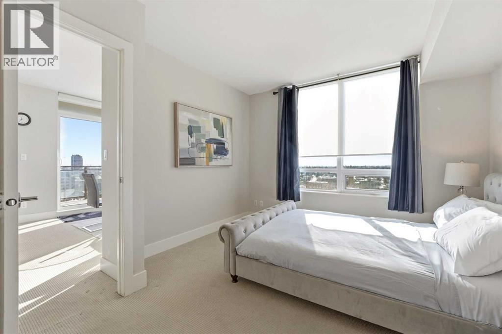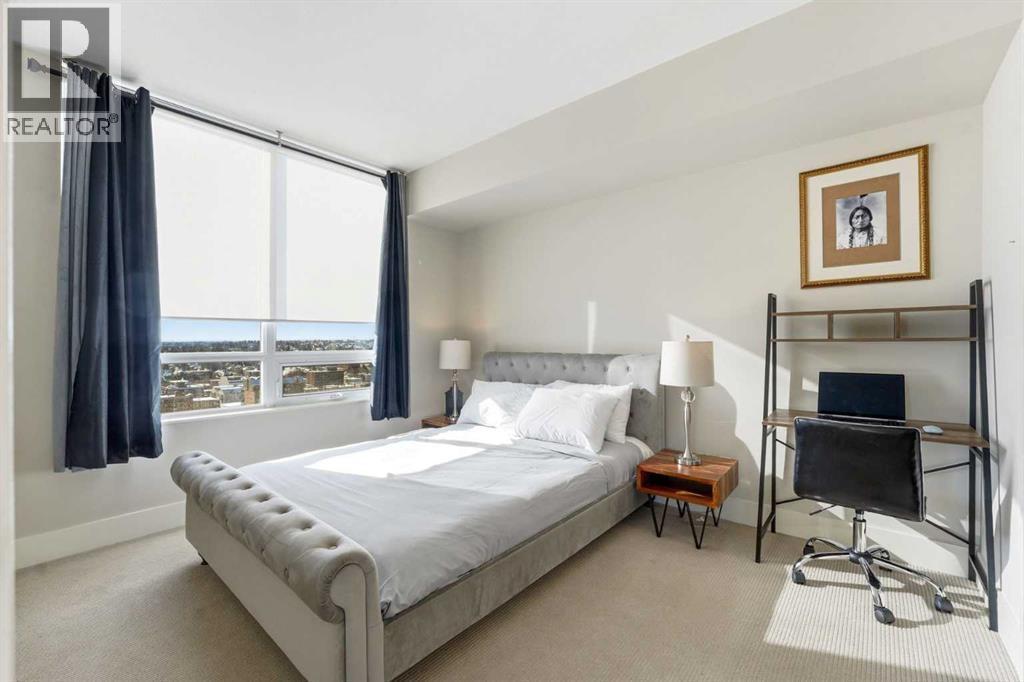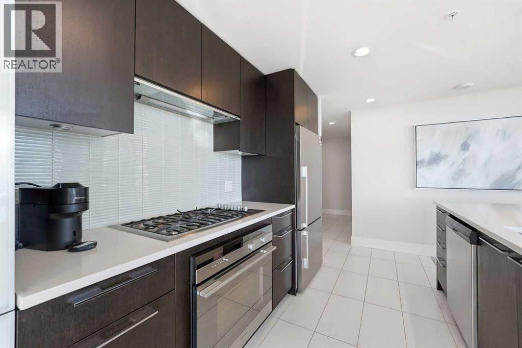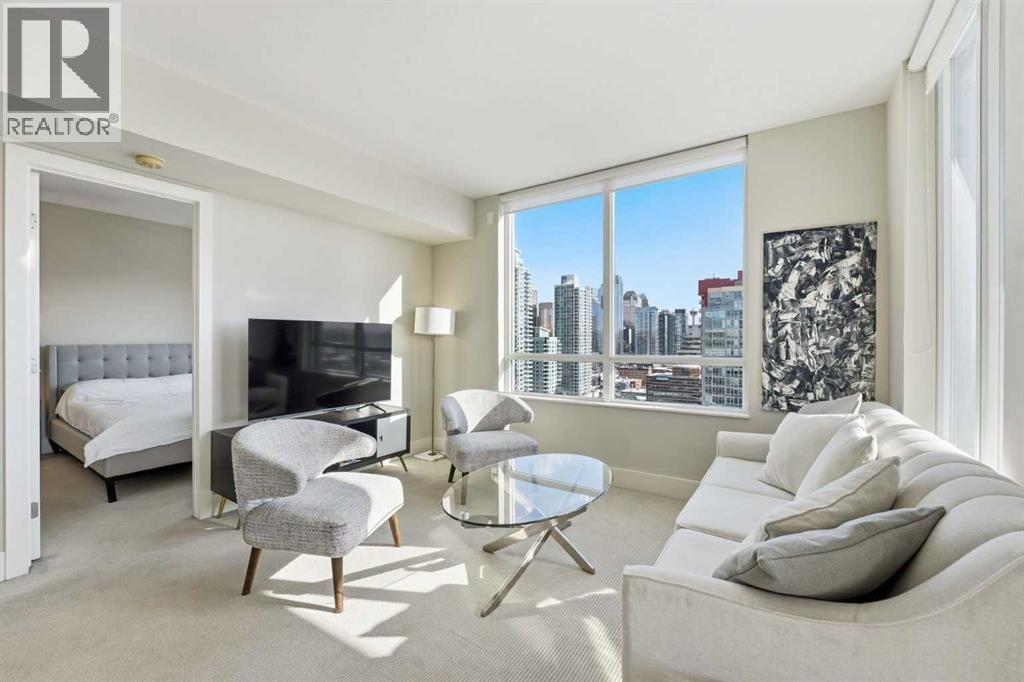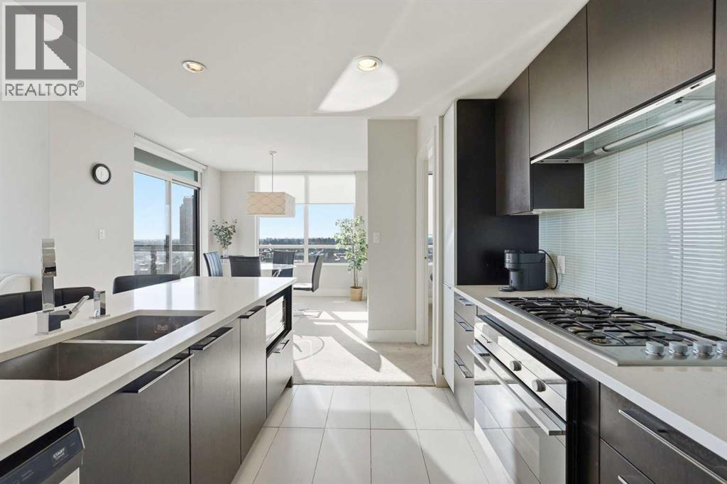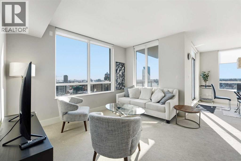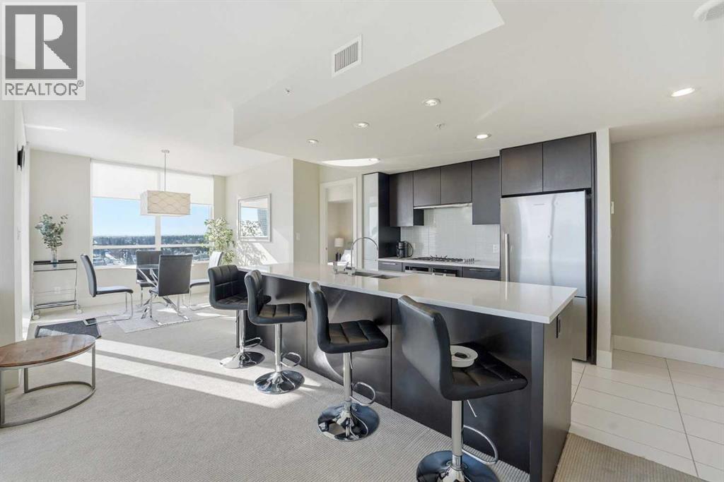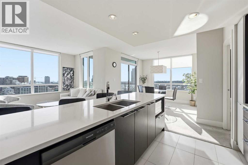 Elevate your lifestyle in this stunning 19th-floor corner unit at the prestigious LUNA. Drenched in natural light from South and East-facing floor-to-ceiling windows, this 967 sq. ft. sanctuary offers breathtaking skyline and mountain views from every angle.The open-concept floor plan is an entertainer’s dream. The gourmet kitchen features a massive quartz island, full-height cabinetry, and a premium 5-burner gas range. Retreat to a primary suite that rivals a five-star hotel, boasting a walk-through closet and a spa-like 5-piece ensuite with a deep soaker tub and heated floors. A second bedroom with its own private 3-piece ensuite ensures total privacy for guests or a home office. Building amenities include a YOGA Studio, an Owner's Lounge with a pool table and kitchen (Great for Birthdays and Hockey Games), underground parking and a large STORAGE ROOM. The building has 2 guests suites for those times your family comes to town for a visit. (id:6769)