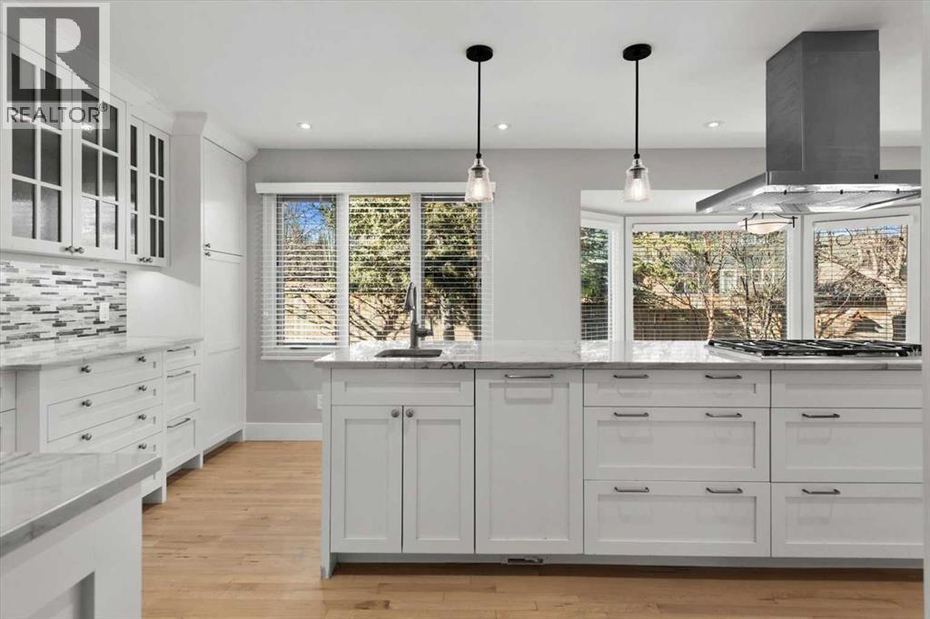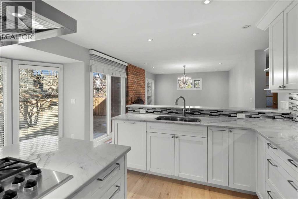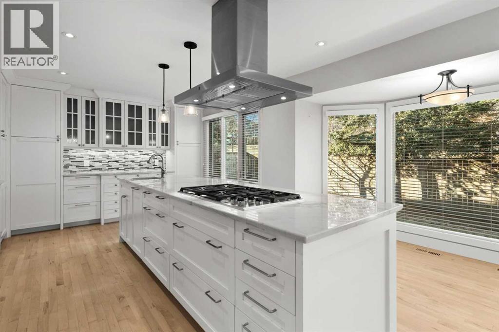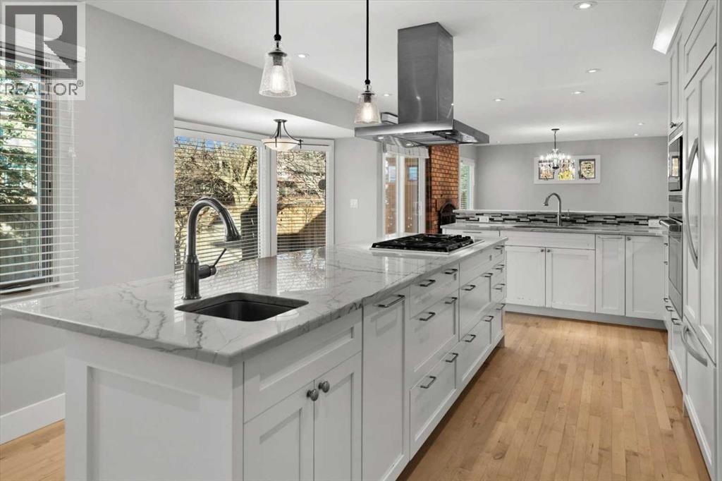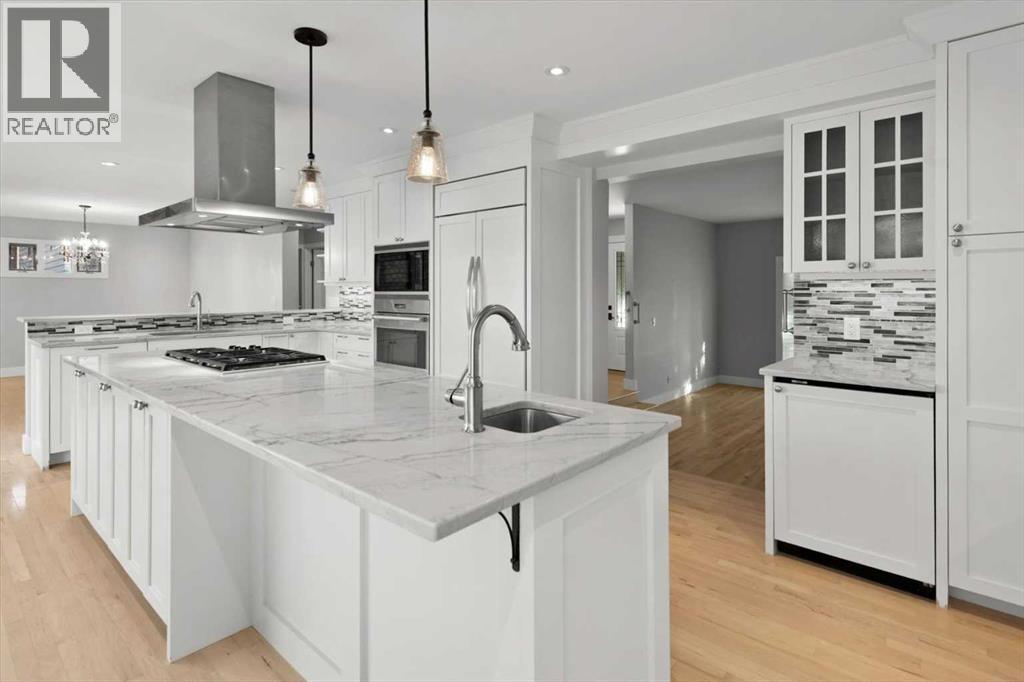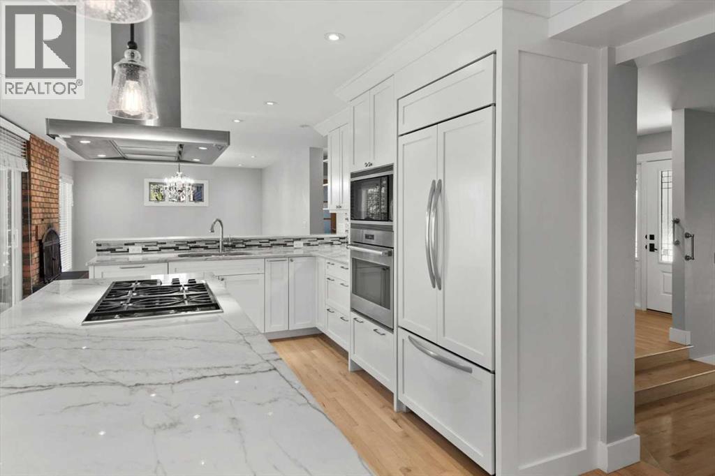 Beautiful 2 storey family home with triple car garage in the sought after community of Oakridge, just steps to South Glenmore Park and the Glenmore Reservoir. A spacious foyer welcomes you into a bright main level with gleaming hardwood floors and a generous living room.The luxurious renovated kitchen (2015) features a large island with quartz countertops, breakfast bar, and exceptional storage including soft-close drawers (approx. 20), corner organizer, and pullout pantry. Stainless steel appliances (2015) include an integrated-front refrigerator, dishwasher, and bar fridge, plus a gas cooktop with chimney-style hood fan, built-in wall oven and microwave. The kitchen overlooks the warm family room with a brick-faced wood-burning fireplace and views of the fully fenced backyard.The main floor also offers a convenient 2 pce. powder room and a functional mudroom with main-floor laundry.Upstairs you’ll find 4 spacious bedrooms and a renovated 4 pce. bath. The primary retreat includes a sitting area and 5 pce ensuite.The lower level includes a large workshop with storage shelves, a 5th bedroom/office and family room area. Updates include - Kitchen renovation ($100,000) cabinetry/island, quartz counters, soft-close drawers & pullouts, stainless appliances (2015), 2 sink areas, Upper level 4 pce bath renovated (2015), hardwood flooring throughout main (excluding back entrance & 2 pce. bath), hardwood up stairs continuing down the hall, primary bedroom and sitting area (2015) most windows replaced (2015–present), front door (2015), two upper level solar skylights (2015), primary balcony reconstructed (2020), cedar shake roof inspected (2024), furnace (2023), Furnace serviced (2025), Hot water tank replaced (Jan 2026), fence replaced. A wonderful family home with access to Stoney Trail SW and allows easy access to travel in all directions beyond the city limits. Offer pending Feb 25. Seller welcomes showings (id:6769)