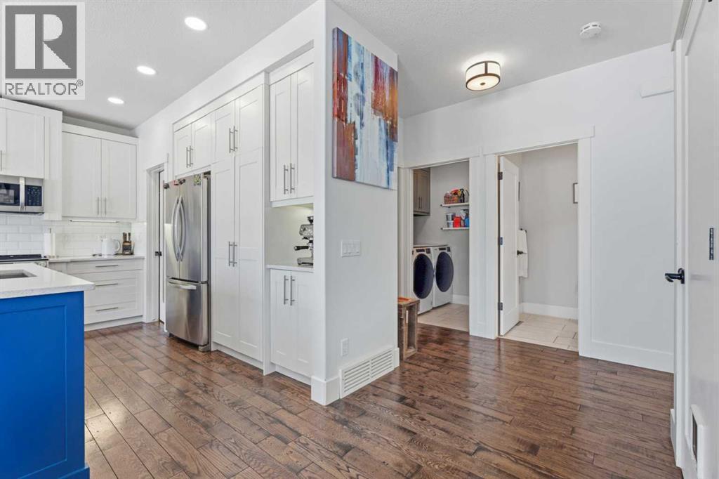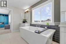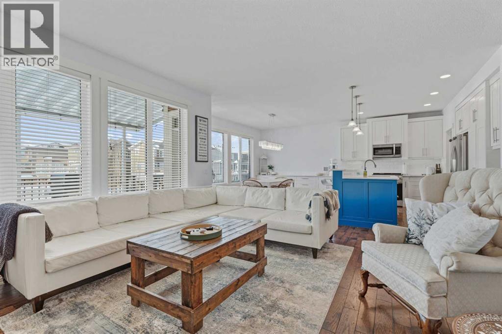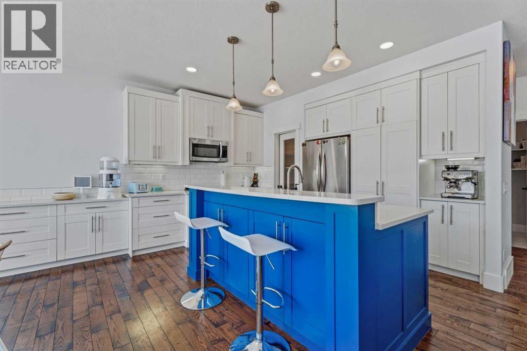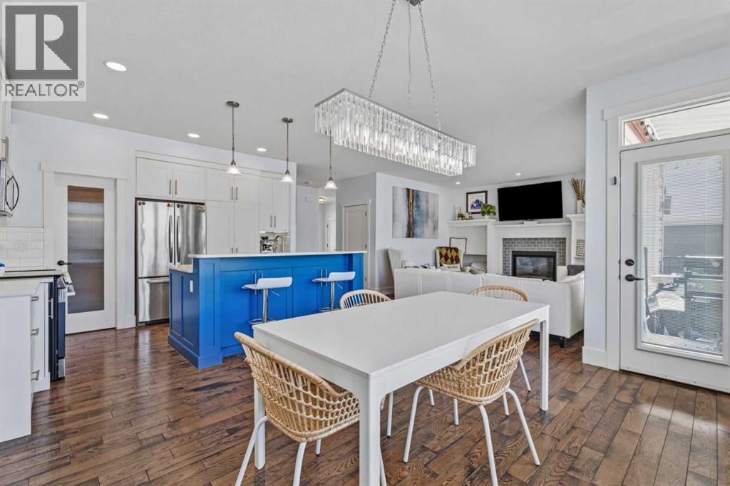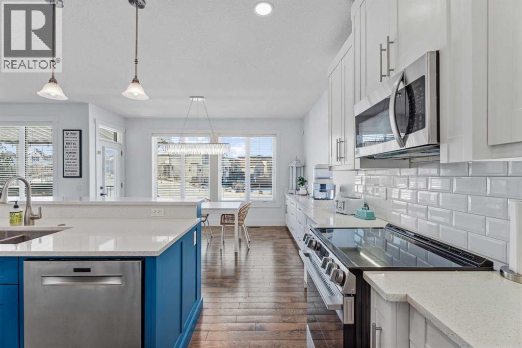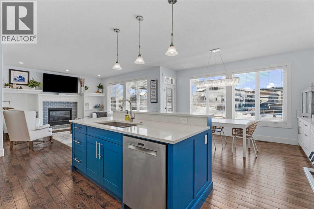 Welcome to Cimarron Springs, where comfort, convenience, and community come together. This beautifully maintained home sits along a scenic walking and biking path and features a west-facing backyard with a fully developed walkout basement—an ideal setting for outdoor living and year-round enjoyment. The garage is thoughtfully finished with epoxy flooring, a man door to the side yard, and extra storage. Inside, a spacious mudroom with built-in bench and hooks provides the perfect drop zone. Continue through the walkthrough pantry into a modern kitchen featuring white cabinetry, granite countertops, a striking blue island, and additional built-ins that flow seamlessly into the dining area. The main floor offers an open and inviting layout. The dining room accommodates a variety of table sizes, while the cozy living room features a fireplace and built-in shelving. Step onto the upper balcony to enjoy warm-weather lounging and BBQs—complete with newly added stairs leading down to the yard. A half bath and convenient laundry area complete the main level. Upstairs, a bright bonus room anchors the second floor. Two generously sized secondary bedrooms, a full bathroom, and a serene primary retreat provide plenty of space for the whole family. The primary ensuite includes dual vanities, a soaker tub, and tiles shower. The fully developed walkout basement extends your living space with in-floor heat, a wet bar, a full bathroom, a fourth bedroom, and a versatile recreation area. Outside, the yard features thoughtful landscaping, a charming firepit area, a matching garden shed, and a lean-to storage space along the side of the home. Additional perks include air conditioning and refreshed paint throughout. Lovingly maintained and move-in ready—book your showing today and experience all that Cimarron Springs has to offer. (id:6769)