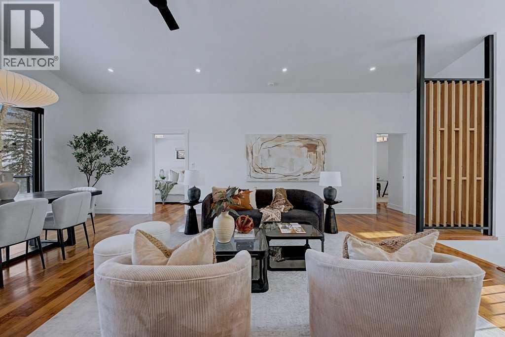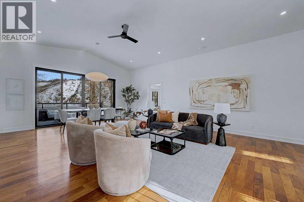Welcome to this exceptional RIVERFRONT paradise! Set on one of the most expansive lots (over half an acre in size!) on the highly sought-after "Bow Crescent", this extraordinary property provides a unique lifestyle where you can fish, swim, and raft right from your backyard! The beautifully landscaped property has been carefully manicured to remove the brush and many trees that once impeded views of the water. The unique home has been tastefully upgraded over the years...with so many special features. Be swept into the open plan, with its welcoming feature wood wall...immediately introducing modern "style". Floors are adorned with walnut hardwood, adding warmth and elegance to the spaces. All windows, blinds and doors have been replaced. The oversized new patio doors provide views of the river from the main living area, plus access to the expansive "view" deck. The chef's kitchen showcases high-end stainless steel appliances (eg. 48" gas stove with 6 burners and a griddle), granite counters, plus a large island and an adjacent dining area. The master suite features views of the river, plus a BRAND NEW spa-like ensuite, with chic walnut cabinetry/quartz counters, a deep soaker tub and an oversized shower. Bedrooms 2 & 3 share a new 3 piece bathroom with stand-up shower. The bright walk-out basement also features stunning riverfront views, with easy access to the spectacular outdoor grounds that are fully irrigated - 7 zones. Bedrooms 4 & 5 are spacious and share a full 4 piece bathroom, plus an open recreation area with a cozy gas fireplace. New furnace, hot water tank and Central Air Conditioning. Roof is 8 years new. This rare oversized property on Bow Crescent (with over 60 feet of river frontage) offers such an opportunity to experience nature at its best and enjoy this gorgeous upgraded stylish home! (id:6769)