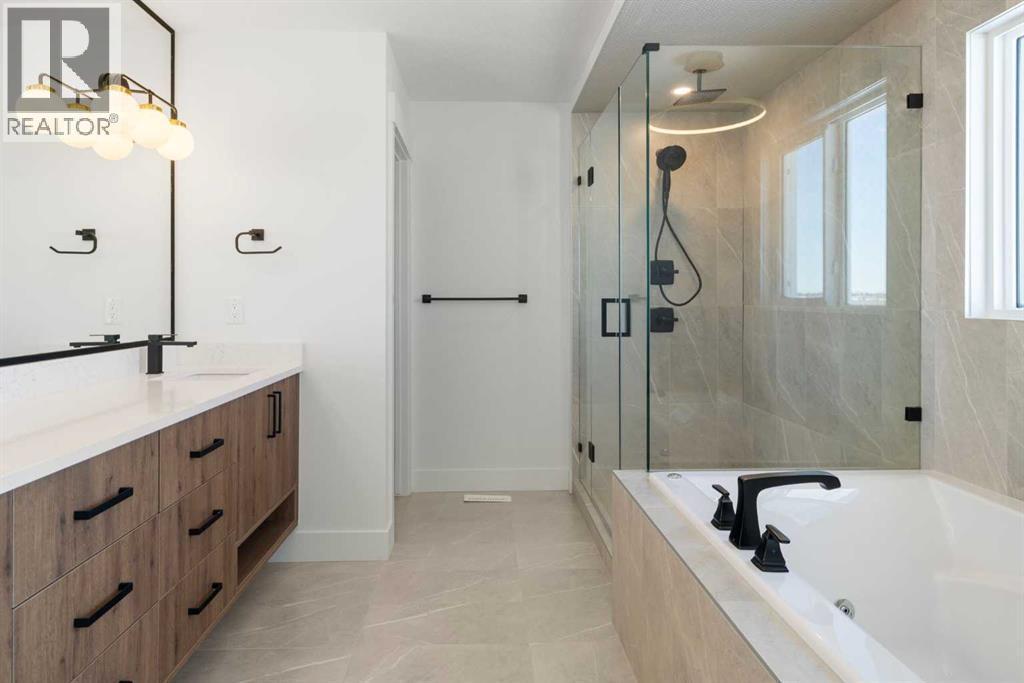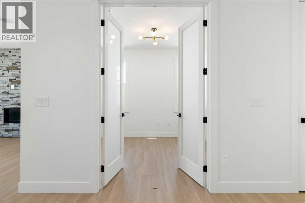 WALKOUT | OVERSIZED TRIPLE GARAGE | QUIET CUL-DE-SAC | PIE LOT ON PATHWAY | LAKE VIEWS | ALMOST 2,700 SQ FT Wake up to peaceful living and views. Step directly onto pathways from your backyard. Tucked away on a quiet cul-de-sac in prestigious Strathmore Lakes Estates, this exceptional walkout home sits on a large pie-shaped lot backing the pathway system with breathtaking lake views. Offering close to 2700 sq ft of refined living space, this modern contemporary residence blends upscale finishes with thoughtful functionality — all anchored by an oversized triple garage, perfect for vehicles, storage, or toys. A dramatic two-storey foyer, open to above, floods the home with natural light and creates an immediate sense of space. The open-concept main floor is designed for both elevated entertaining and everyday comfort, featuring a chef-inspired kitchen with granite countertops, a statement island, walk-through pantry, custom feature walls, gas fireplace and high-end finishes throughout. A standout feature is the full bathroom on the main level, offering flexibility for guests or multi-generational living. The main-floor office can easily convert into an additional bedroom if desired. Upstairs, a bright bonus room provides the perfect family retreat. The primary suite is a true sanctuary, capturing beautiful views and offering a spacious walk-in closet with custom built-ins and a spa-inspired 5-piece ensuite. Two additional generously sized bedrooms — both with walk-in closets — share an impressive 5-piece bathroom, ideal for growing families. The walkout basement remains unfinished — a blank canvas ready for your custom vision. Whether you imagine a home theatre, gym and additional bedrooms the open space makes future development especially compelling. With quick access to over 50 km of scenic pathways in Strathmore, winding through canals and green space, plus the privacy of a quiet cul-de-sac and the bonus of a triple garage, this property delivers luxury, location , and lifestyle in one remarkable package. A rare opportunity to secure one of the community’s most desirable lots with room to grow. (id:6769)