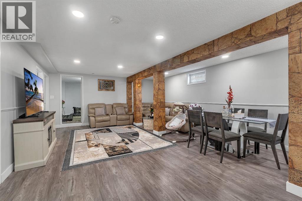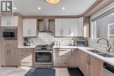 Welcome to this impeccably maintained stucco bungalow offering over 2,450 sq. ft. of beautifully developed living space, perfectly blending comfort, functionality, and modern upgrades. From the moment you arrive, the sleek glass railings and oversized fully heated double garage create a striking first impression, while the low-maintenance exterior features durable stucco, concrete walkways, a private patio, fully fenced yard, and ample storage. Inside, the main floor showcases stylish LVP flooring and a bright open layout that flows seamlessly into a massive living room filled with natural light and a spacious dining area ideal for entertaining. The chef-inspired renovated kitchen is thoughtfully designed with quartz countertops, modern cabinetry, and high-end built-in stainless steel appliances, including a gas stove. This level offers three well-appointed bedrooms, including a primary retreat with a 2-piece ensuite, a full 4-piece bathroom, and the added convenience of a 2-in-1 washer/dryer. The fully developed lower level features an expansive illegal suite complete with its own kitchen, large bedroom, spacious rec room, separate living area, full 4-piece bathroom, and dedicated laundry, making it perfect for extended family or guests. Additional upgrades include a newer furnace, HRV unit, humidifier, roof, windows, flooring, kitchen, stucco, and glass railings, providing comfort and peace of mind for years to come. Ideally located near O.S. Geiger School and Terry Fox School, with quick access to the airport and major highways, this move-in ready home offers exceptional convenience and versatility. (id:6769)