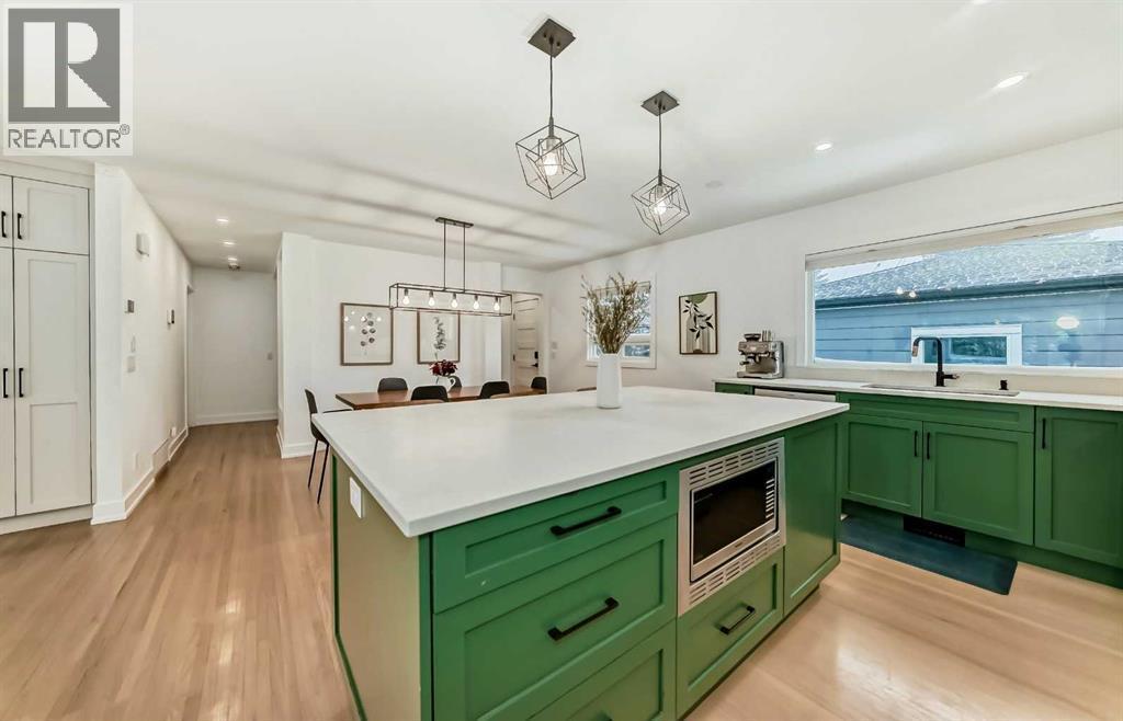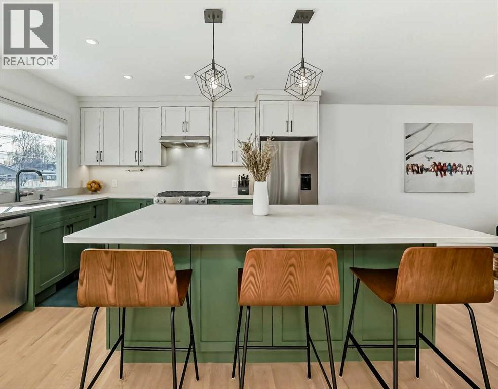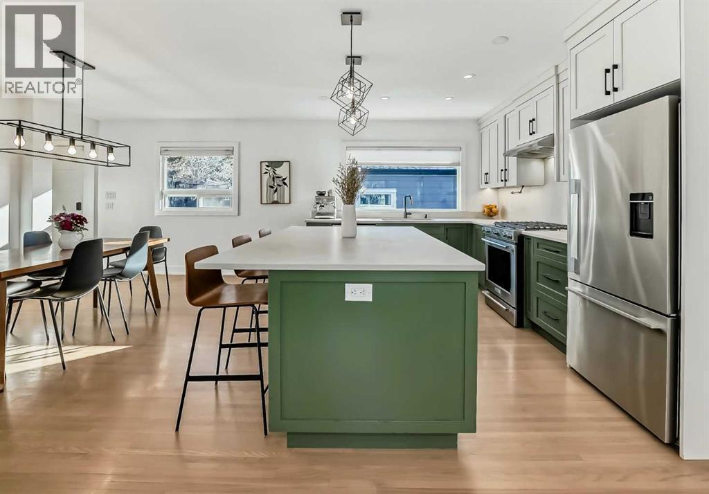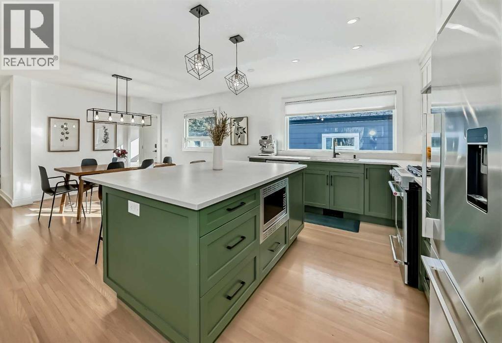 Welcome home to this thoughtfully renovated Wildwood bungalow, ideally located on a quiet, tree-lined street in one of Calgary’s most established and sought-after inner-city communities. Extensively renovated between 2019 and 2022 and designed by Amanda Hamilton Interiors, this home blends timeless design with modern functionality. The main floor is bright, open, and welcoming, thoughtfully designed for both everyday living and effortless entertaining. The chef-inspired kitchen is the heart of the home, featuring quartz countertops, custom full-height cabinetry, stainless steel appliances, a gas range, and carefully selected modern fixtures and finishes. The seamless connection between the kitchen, dining, and living areas creates a warm, inviting space ideal for hosting family and friends or enjoying quiet evenings at home. The primary suite is a true retreat, offering a spacious walk-in closet and a spa-inspired ensuite complete with dual vanities, a walk-in shower, heated floors, and a steam shower. An additional main-floor bedroom and full bathroom provide flexibility for guests, children, or a home office. The fully developed basement expands the living space even further with a generous media and recreation area, two additional bedrooms, a full bathroom, and a dedicated laundry area—perfect for families or multi-generational living. Behind the scenes, this home has been comprehensively upgraded to provide long-term peace of mind. Renovations include all new electrical and plumbing, upgraded HVAC ducting, furnace and hot water tank, enhanced insulation throughout (including insulated rim joists), new vapour barrier, and new drywall on both the main floor and basement. Original hardwood floors have been refinished and paired with basement carpet. Additional comfort features include heated floors in all three bathrooms, air conditioning, air sanitation purification system. The exterior has been fully refreshed with Hardie board siding, new windows and doors, a ne w roof, eaves, soffits, and fascia, enhancing both curb appeal and durability. The backyard is designed for enjoyment and entertaining, featuring a large deck and fire pit, while the oversized 26’ x 22’ double detached insulated garage offers ample storage and parking space. Within walking distance to Wildwood Elementary School, soccer fields, tennis and pickleball courts, a hockey rink, playground, Wildwood Playschool, and a community garden, this neighbourhood is ideal for active lifestyles. Enjoy quick access to Edworthy Park’s extensive pathways and green spaces, and easy connections to Bow Trail, placing downtown Calgary just minutes away.This exceptional home offers the rare combination of thoughtful design, extensive renovations, and an unbeatable inner-city location—perfect for those seeking quality, comfort, and community. Book your showing today! (id:6769)