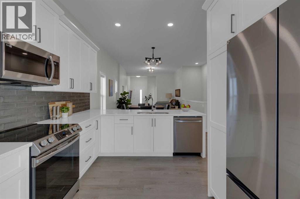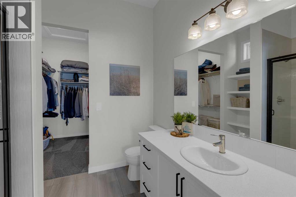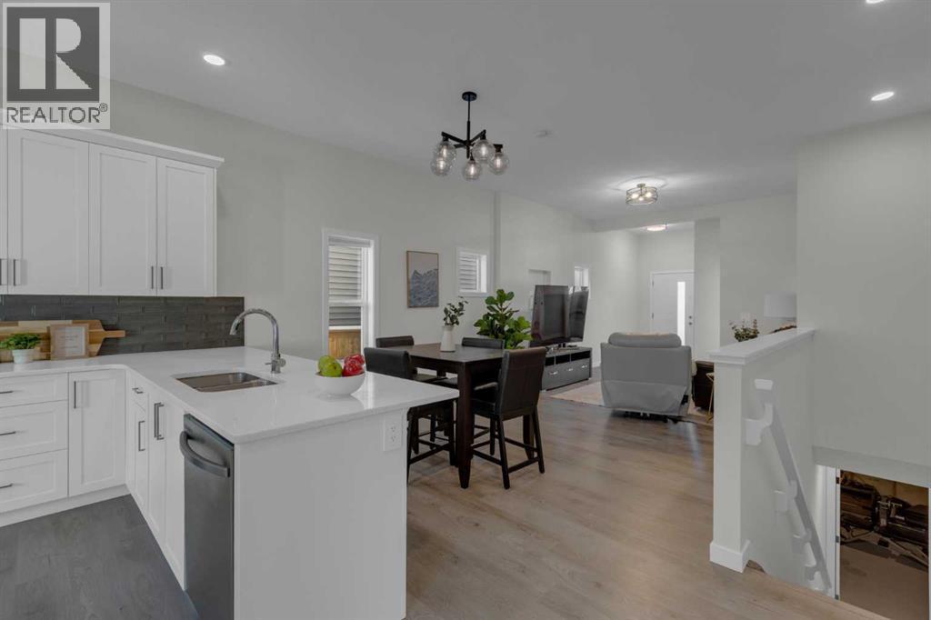 **OPEN HOUSE Saturday February 28th 2-4pm** Modern BUNGALOW living with soaring 10’ ceilings, a heated DOUBLE DETACHED 19'x21' GARAGE, and an unbeatable location across from a children's park in Coopers Crossing! Built in 2022 and offering 1,119 sq ft of thoughtfully designed space, this 2 Bedroom, 2 Full Bathroom home delivers stylish single level living with an open concept layout and clean contemporary finishes throughout. Step inside and immediately appreciate the airy feel created by the tall ceilings and expansive main living area finished in durable VINYL PLANK flooring. The bright white Kitchen is both timeless and functional, featuring quartz countertops, crisp white cabinetry, stainless steel appliances, and a long peninsula that offers generous prep space and a comfortable eating area, perfect for casual meals or entertaining guests. The Kitchen flows seamlessly into the Dining and Living areas, creating an inviting space ideal for everyday living. The spacious Primary Suite is designed as a comfortable retreat, complete with a large WALK IN CLOSET and a beautifully finished tiled Ensuite featuring a glass shower for a clean, modern look. A second Bedroom and full Bathroom provide flexibility for guests, a home office, or small family living. The unfinished Basement offers excellent future potential, ready for your vision with room to expand your living space exactly how you need it with 3 large windows and rough in plumbing for a bathroom. Outside, you’ll appreciate the fenced yard, heated and insulated DOUBLE DETACHED GARAGE, offering year round comfort and valuable storage. Conveniently close to 40th Avenue for quick access into Calgary, this home combines convenience, modern design, and low maintenance living in one of Airdrie’s most desirable communities. Welcome home! (id:6769)
