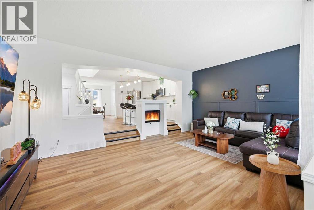 Welcome to 41 New Brighton Green SE, a FULLY RENOVATED bright and inviting home with a unique and practical layout. This well kept property sit on a EAST-WEST lot and offers three bedrooms and two and a half bathrooms, making it perfect for families or first time buyers. The main floor is open and filled with natural light, featuring an open to above kitchen that creates a spacious feel. The sunken living room is warm and cozy, complete with an electric fireplace that is ideal for relaxing evenings or entertaining guests. The living, dining, and kitchen areas flow smoothly together, giving plenty of room for daily living and gatherings. A discreet half bath and small mud area add extra convenience on the main level. Upstairs, the rounded staircase leads to a bright landing with a skylight. The primary bedroom is generously sized with a walk in closet and a private 4 piece ensuite. Two more comfortable bedrooms and another full bathroom complete the upper floor. Outside, enjoy the west-facing fenced backyard with an oversized double parking area, perfect for outdoor enjoyment and extra parking. Large windows bring in plenty of sunlight throughout the day, making every room feel bright and welcoming. The layout is easy to maintain and works well for both everyday living and special occasions, offering a move in ready home full of comfort and charm. (id:6769)