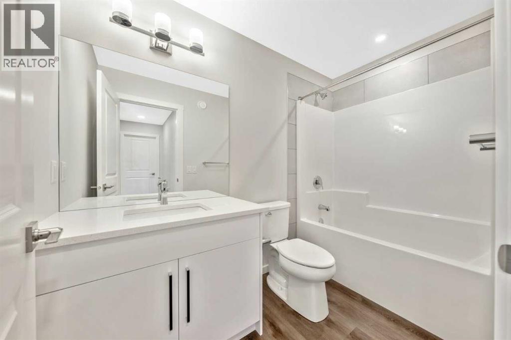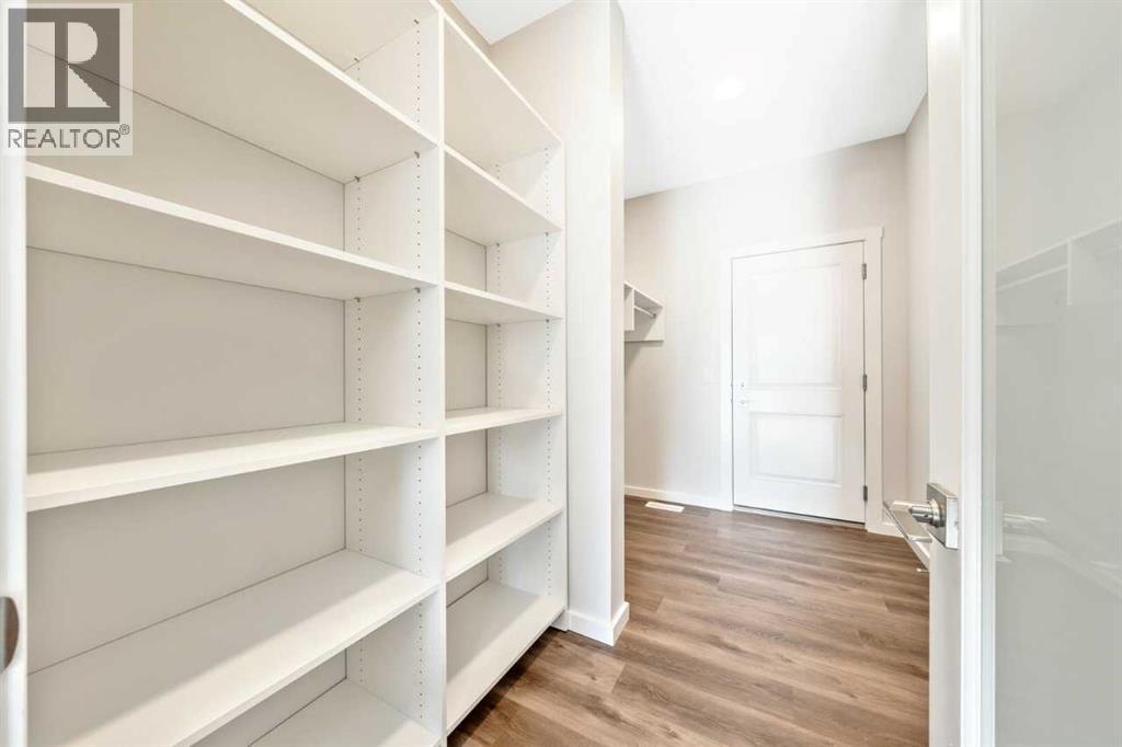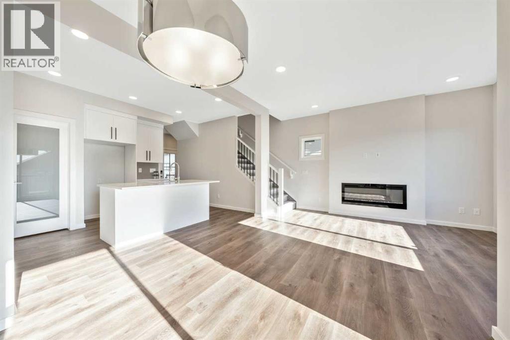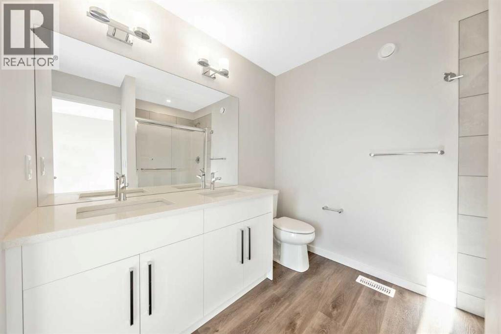 This home features a walkout lot with mountain views! The Eden is designed for contemporary living. Entering this home, you are welcomed by a half bath, closet and convenient walk-through mudroom and pantry leading to the central kitchen. The main floor opens up to reveal a spacious great room and dining area, leading to the covered balcony - a perfect retreat to enjoy year round. The second level boasts a primary bedroom with ample space, including an ensuite offering dual sinks and adjacent walk-in closet. Upstairs also offers two secondary rooms, a bathroom, and laundry area. To round out this home, the attached double-car garage provides secure parking and additional storage space. Photos are representative. (id:6769)