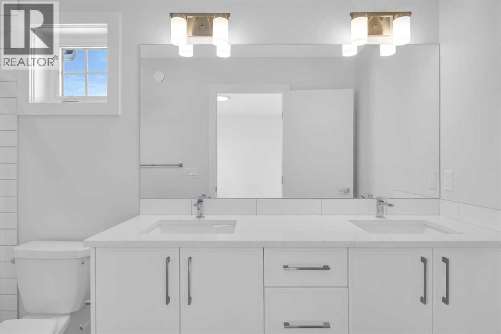 Welcome to The Edward by Partners, a brand new quick possession home in Logan Landing offering a rare fully developed two bedroom, two bathroom legal basement suite with a private side entrance. Positioned on a premium corner lot and complete with a 20’ x 21’ double detached garage, this home delivers exceptional flexibility for homeowners and investors alike. A rare main floor bedroom and full bathroom add immediate versatility, ideal for guests, a private office, or added living flexibility. Nine foot ceilings on both the main level and basement enhance the sense of space throughout. The kitchen is thoughtfully designed with full height cabinetry, upgraded quartz countertops with undermount sinks, under cabinet lighting, a chimney hood fan with built in microwave, and a Whirlpool stainless steel appliance package. The open concept layout connects seamlessly to the dining and living areas, creating a bright and functional environment for everyday living. Upstairs, the primary suite offers a walk in closet and a well designed ensuite with additional vanity storage, quartz surfaces, and a walk in shower. Two additional bedrooms, a central bonus room, and upper level laundry with washer and dryer included complete a layout that adapts easily to changing needs. The legal basement suite truly sets this home apart. Featuring 775 square feet of developed living space with two bedrooms, two full bathrooms, nine foot ceilings, walk in showers, and its own kitchen and living space, it functions as a fully independent residence. Whether used for consistent rental income, extended family, or mortgage support, this is a rare and highly desirable configuration. The double detached garage includes a 60 AMP subpanel and 50 AMP EV rough in, offering future ready convenience for electric vehicle charging and additional power capacity. Additional features include air conditioning rough in, knockdown ceilings, and quality finishes throughout. Located in Logan Landing with access to pa rks, pathways, and the Bow River, this property offers a strong balance of lifestyle, long term value, and income potential. (id:6769)