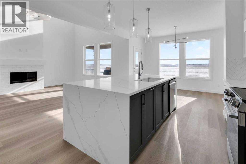 Introducing The Prestige, a beautifully appointed 3-bedroom, 3-ensuite bathroom estate home offering 2,462 sq. ft. of thoughtfully designed living space. Situated on a premium 453sqm walkout lot in the heart of Copperstone—a 70-acre master-planned community within Copperfield—this home perfectly combines luxury, functionality, and everyday comfort.The main level features an expansive open-concept layout with soaring ceilings and huge windows that fill the home with abundant natural light, creating a bright and inviting atmosphere ideal for entertaining and family living. The family room is anchored by a gas fireplace, providing warmth and a cozy focal point. The signature kitchen serves as the centerpiece, boasting a waterfall island, contemporary cabinetry, herringbone backsplash, floating shelves, generous workspace, and a large walk-in pantry, perfect for culinary enthusiasts and entertaining.Practicality is built in, with a main floor home office, a grand foyer and a separate mudroom entry from the front-attached double garage, offering ample storage and organization for busy households.A striking staircase with elegant railing detail leads to the upper level, which is open to below, overlooking the family room and enhancing the sense of space and light.Upstairs, the primary retreat impresses with vaulted ceilings, a walk-in closet with custom built-in shelving, and a spa-inspired ensuite featuring a freestanding soaker tub, dual vanities, and a fully tiled shower. Two additional well-sized bedrooms, both with their own ensuites a convenient laundry room with cabinetry and quartz countertop, and a large bonus room with vaulted ceilings complete the upper level.The backyard includes a covered rear deck and walkout concrete patio, perfect for outdoor entertaining. The yard backs onto an environmental reserve and features a rear chain-link fence, providing privacy while maintaining a connection to the natural surroundings.Residents of Copperstone enjoy beautifully landscaped parks, playgrounds, and an extensive network of walking paths. Ideally located near major shopping centres, South Health Campus, and offering quick access to Stoney Trail and Deerfoot Trail, this home ensures effortless connectivity throughout the city. Downtown Calgary and the airport are approximately 30 minutes away.Experience sophisticated design, luxury finishes, and functional family living with The Prestige in Copperstone—one of southeast Calgary’s most desirable communities. (id:6769)