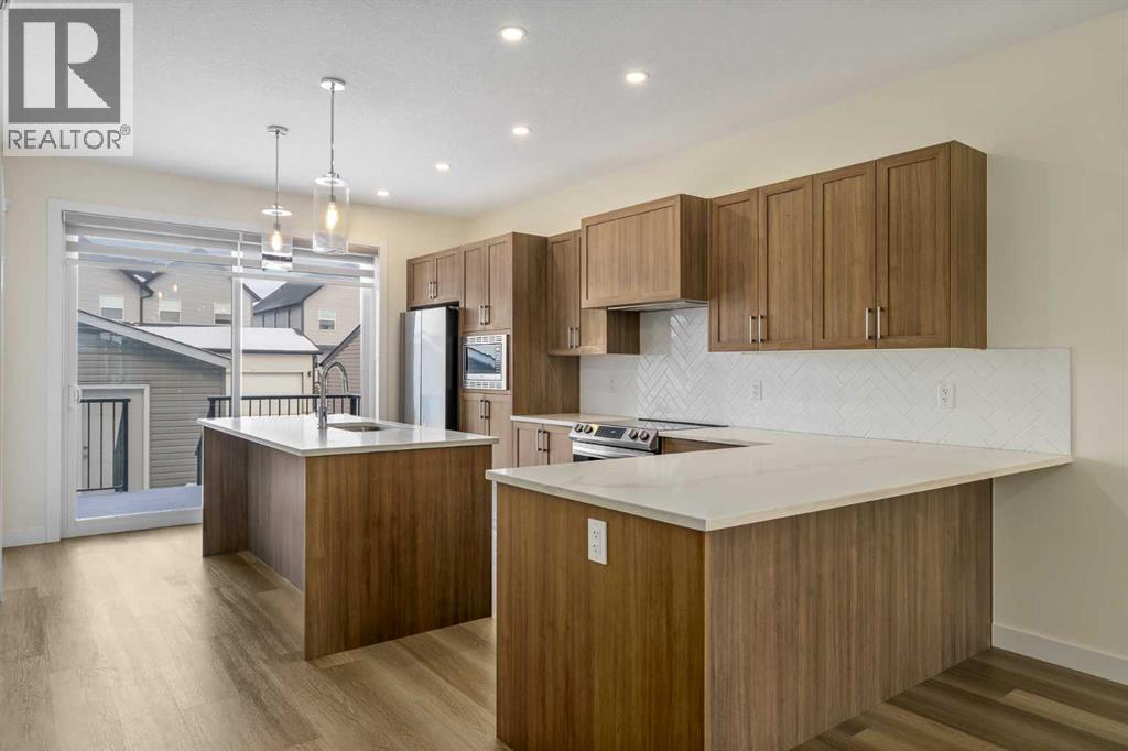 **OPEN HOUSE on SATURDAY and SUNDAY, MARCH 7 & 8, from 12 PM - 4 PM. **Welcome to this unique and well-maintained home in growing Airdrie, the 5th largest city in Alberta. Great potential for a growing or multi-generational family or investor. With a total of 2,570 sq. ft. of living space over three levels, which includes 5 bedrooms and 3.5 baths, this home provides room to grow. The first impression upon entering is light and bright. A transom window above the entry door, an open area living room, dining, and kitchen with blonde, wide-plank flooring, neutral colours, clean lines and windows and patio doors at opposite ends of the space spell out airy and cheerful. The combined living room/dining area is spacious and presents numerous possibilities as to furniture arrangements. Likewise, the kitchen is a study in sleekness with smooth, shaker-style cabinetry, cool, white quartz countertops, white chevron-style, tiled backsplash, stainless appliances and a breakfast bar/island with deep double, undermount sinks. A 2-pc. bath and rear hall leading to the outside deck finish this level. The carpeted upper level begins with a bonus room at the head of the stairs. Use this as a family room, play area or a home office. The laundry room is conveniently located across the hall. A substantial primary bedroom features a vaulted ceiling, walk-in closet and the privilege of a 4-pc. bath (double vanity). Two additional bedrooms, both with a good amount of closet space, share a tiled 4-pc bath. The lower level, a fully finished illegal suite can be accessed via a side entrance, has wide-plank flooring and boasts a rec room, 2 bedrooms, kitchen with stainless fridge and microwave, 4-pc. bath, utility room and storage area. Roughed-in plumbing is available for washer and dryer hookup. This level is perfect for guests or could be a secondary living area. The back yard features a railed, wooden deck for summer relaxing plus a double, detached garage accessed from the back lane. Addin g to the family vibe of this home is the proximity to Airdrie’s Main Street with shopping (Walmart Supercentre and Home Depot), restaurants, multiple schools, playgrounds, the QE 2 with just minutes to the New Horizon Mall, the City of Calgary and the International Airport. Visit today as this home will move quickly. (id:6769)