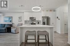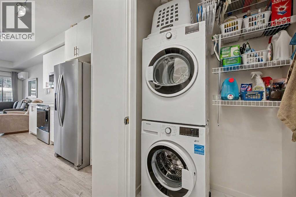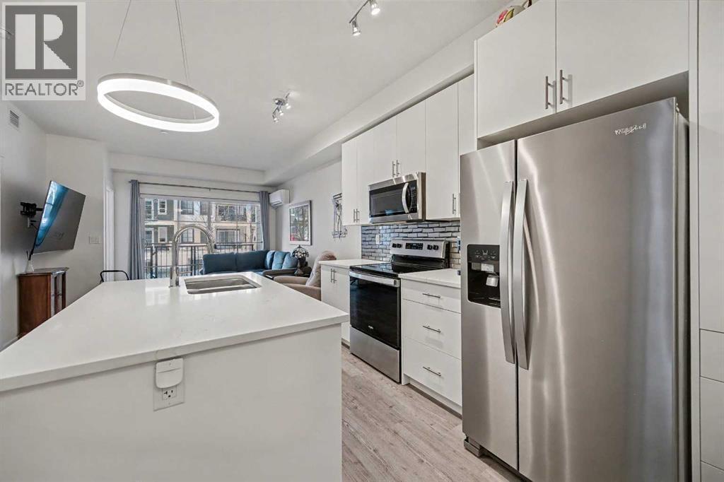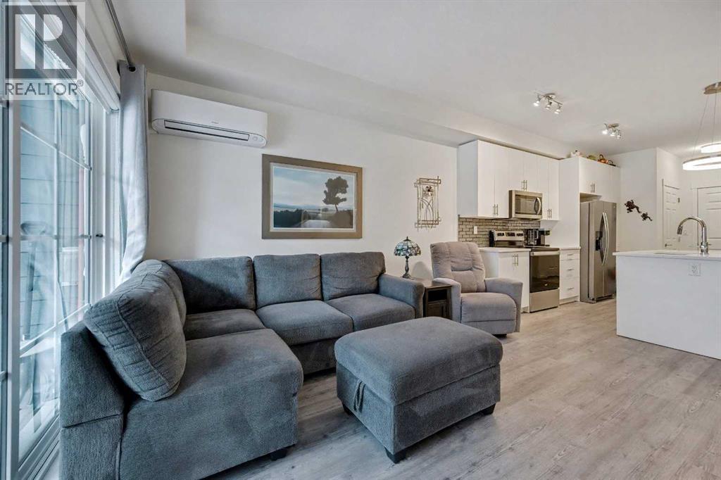 Welcome home to your beautifully UPGRADED MODERN two bedroom plus den/storage condo featuring 9 ft ceilings, LUXURY VINYL PLANK flooring throughout, CENTRAL AC, and more. The spacious kitchen offers QUARTZ countertops, full height cabinets, STAINLESS STEEL appliances, and a large ISLAND overlooking the dining and living areas, perfect for everyday living and entertaining. This ground floor unit features a large FENCED PATIO and is located in a PET FRIENDLY building. The primary bedroom includes a walki-n closet and a cheater ENSUITE. There is INSUITE laundry and storage, as well as a titled UNDERGROUND PARKING stall and assigned storage locker. Located in popular Legacy, close to walking paths, playgrounds, and nearby shopping. Exceptional value! Don’t miss out on this fantastic condo. (id:6769)