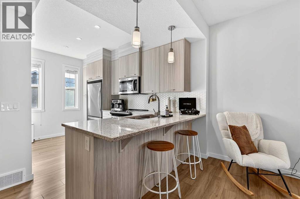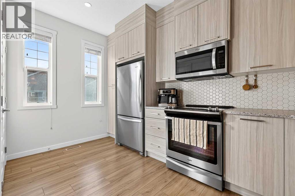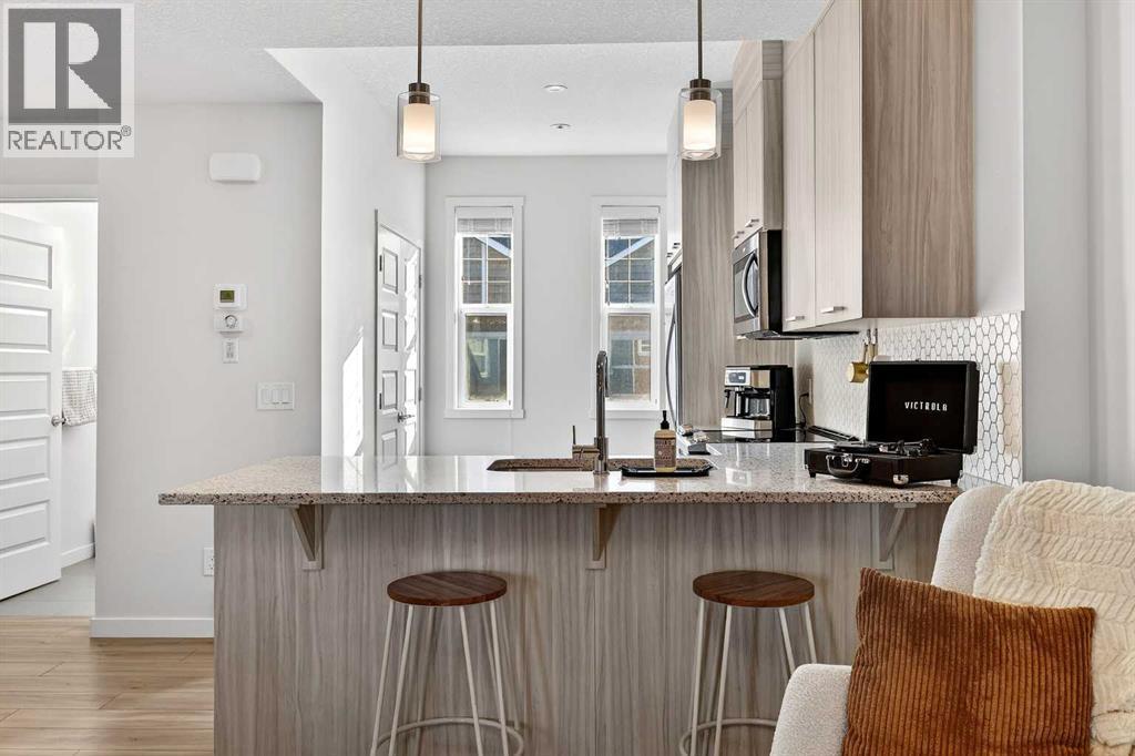 2 Beds | 2.5 Baths | 1,407 Sq. Ft. | Tandem Double Garage | Greenspace Views! Located in the desirable Canals community, this bright and thoughtfully designed townhome offers 1,407 sq. ft. of functional living space with a rare double tandem garage. The open-concept main level is filled with natural light and showcases upgraded fixtures, modern finishes, and a seamless flow to the covered balcony overlooking greenspace. Upstairs, you’ll find two spacious bedrooms, including a primary retreat complete with a large walk-in closet and a double vanity ensuite. The layout is efficient, practical, and ideal for professionals, couples, or small families seeking low-maintenance living without sacrificing space. Enjoy the convenience of condo living paired with the feel of a well-designed home in one of Airdrie’s most sought-after neighborhoods. (id:6769)