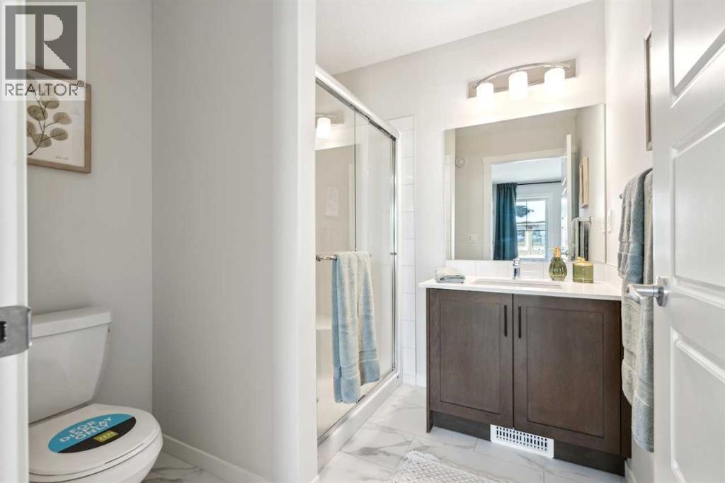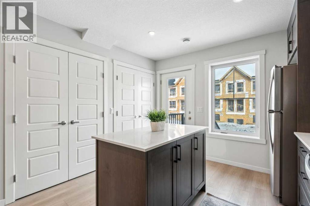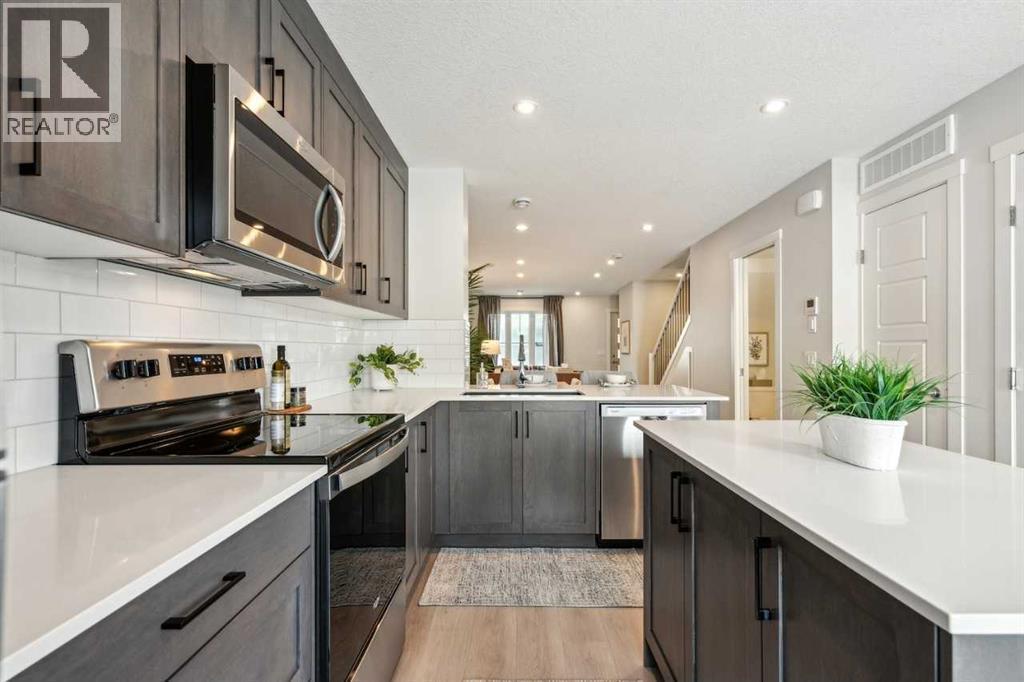 Welcome to Prima at ZEN Livingston, a thoughtfully designed 2-bedroom, 2.5-bath NET ZERO townhome offering 1,086 sq. ft. of modern, energy-efficient living by Avalon Master Builder. Built for comfort and long-term savings, this home features TRIPLE-PANE windows, advanced insulation, and a solar rough-in. The OPEN-CONCEPT main floor showcases luxury VINYL PLANK flooring, pot lights with knock-down ceilings, and a bright living and dining area that seamlessly flows into your FULLY FENCED BACKYARD, ideal for kids, pets, or added privacy. Enjoy a BBQ gas line, plus landscaping and irrigation already included. The modern kitchen is finished with QUARTZ countertops and a 6-piece Whirlpool appliance package, offering both style and functionality. Upstairs, you’ll find two spacious bedrooms, including a primary bedroom with its own ensuite, along with convenient upper-floor laundry. Photos are representative. (id:6769)