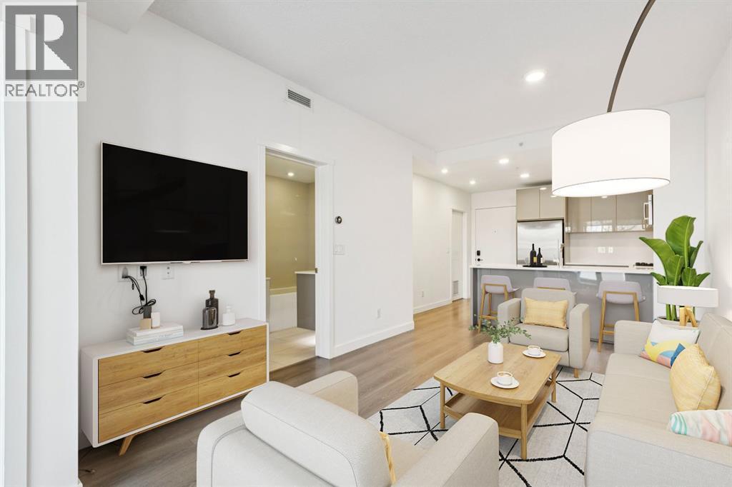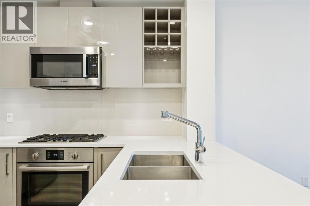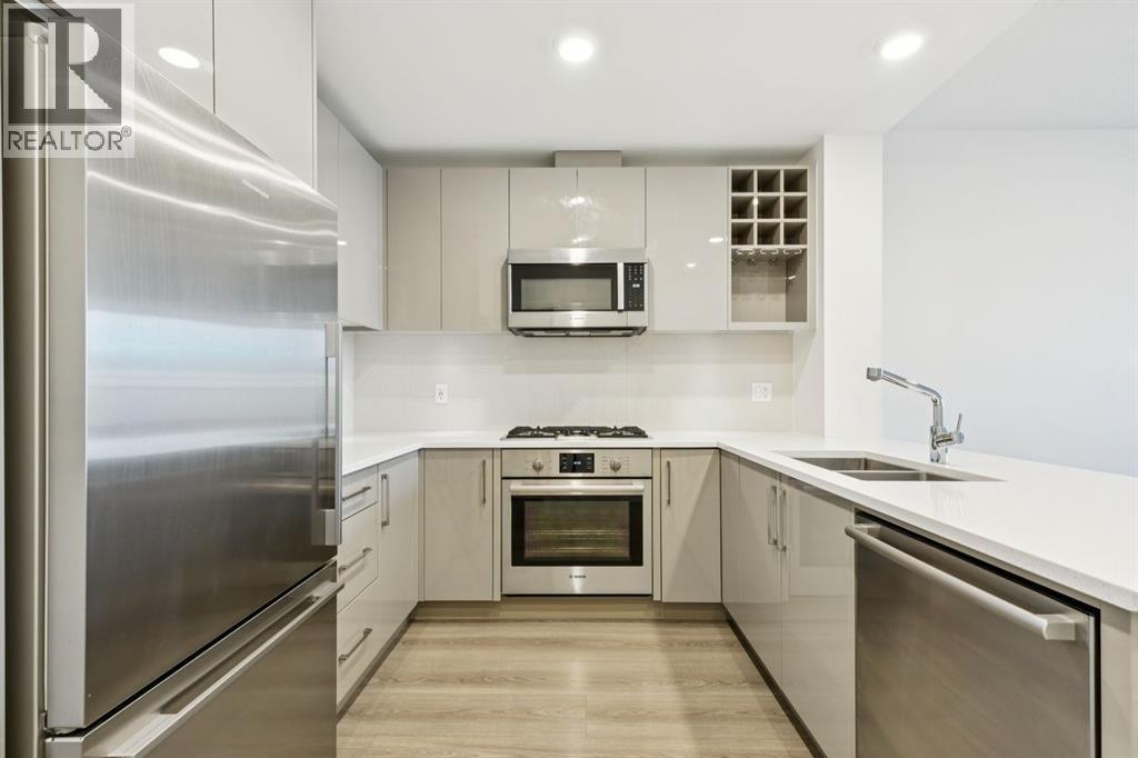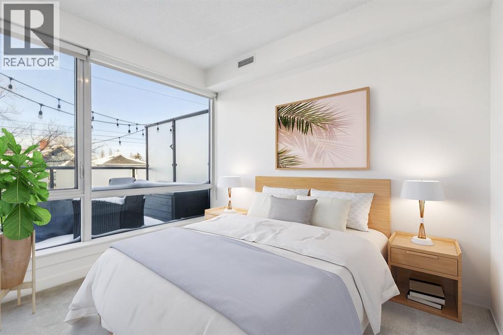 Elevate your urban lifestyle in this sophisticated second-floor sanctuary, tucked away on the quiet west side of the prestigious, concrete-built Kensington building. While many one-bedroom condos feel confined, this residence breaks the mold with an expansive, oversized patio. This massive outdoor footprint is a rare architectural feature reserved for only a select few units in the building and acts as a seamless extension of your living space, perfect for hosting summer dinner parties under the stars or creating your own lush garden oasis in the heart of the city. Inside, the condo is a masterclass in refined style, anchored by a chef’s kitchen that punches far above its weight class. It is fully equipped with high-end Fisher & Paykel stainless steel gas cooktop & oven + Bosch fridge and dishwasher, plus a custom-integrated wine rack, all framed by elegant quartz countertops and a peninsula with seating for four. Practicality is a priority here with the inclusion of convenient in-suite laundry, an in-unit storage room, and a separate assigned storage locker for all your seasonal gear. The primary bedroom serves as a sun-drenched escape, featuring large windows and a walk-through closet that leads directly into the spa-inspired bathroom. This retreat offers a deep soaker tub, a separate glass-enclosed shower, and a sleek vanity with quartz countertops. Beyond the unit walls, the building offers a level of convenience rarely seen, including central air conditioning, titled underground parking, a dedicated car wash bay, and secure bike storage. Whether you are walking through Riley Park, commuting via the nearby Sunnyside LRT, or exploring the boutique shops and cafes of Kensington Village, this pet friendly residence offers the perfect balance of a serene retreat and vibrant urban vitality. (id:6769)