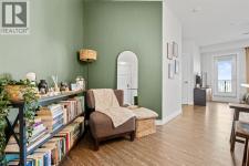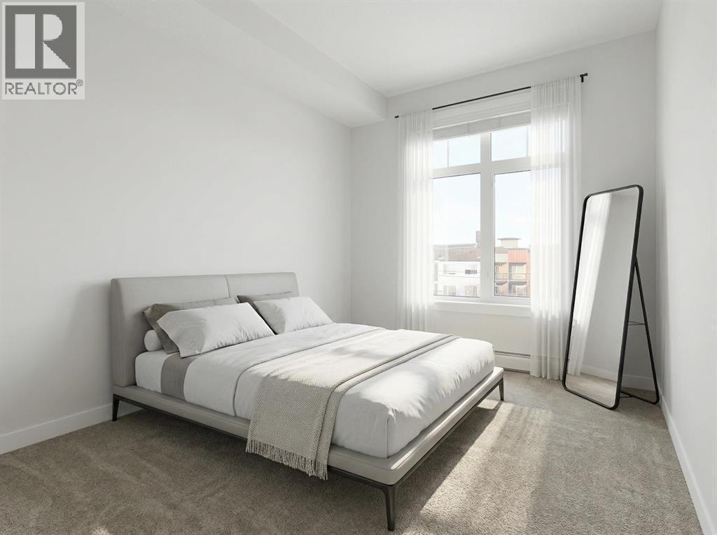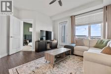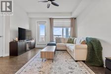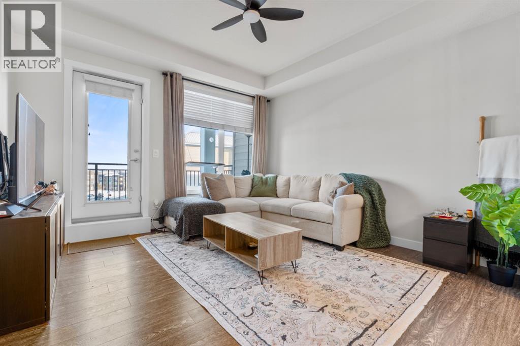 Welcome to this beautifully appointed two-bedroom, two-bathroom modern farmhouse–style condominium built in 2018, this is one of the larger units in the complex and features numerous builder upgrades throughout.The bright and spacious main living area showcases high ceilings and an open-concept design, seamlessly connecting the kitchen, dining, and living spaces. The contemporary kitchen is finished with sleek shaker-style cabinetry, upgraded backsplash, quartz countertops, and stainless steel appliances. A large island provides additional seating, while still allowing ample room for a full dining table—ideal for both everyday living and entertaining.Enjoy the east-facing balcony, perfectly positioned for morning coffee and comfortable afternoon shade. Expansive glass sliding doors flood the interior with natural light, enhancing the home’s warm and inviting atmosphere.The primary bedroom offers generous proportions, complete with a walk-in closet and a private ensuite featuring a walk-in shower and added storage. The second bedroom is well-sized and versatile—ideal for guests, a home office, or a child’s room—with a full bathroom conveniently located across the hall next to the in-suite laundry.Additional highlights include one oversized parking stall in the secured underground parkade, dedicated bike storage, and an assigned storage locker.This exceptional home combines style, space, and functionality. Contact us today to arrange your private viewing. (id:6769)