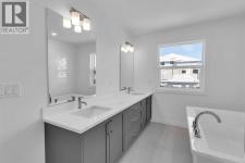 Nestled in the highly sought-after community of Copperfield, this exceptional 4 bedroom up, single-family home showcases quality craftsmanship and numerous upgrades throughout. The thoughtfully designed main level features 9-foot ceilings, creating a bright and spacious atmosphere. A generous living room flows seamlessly into the chef-inspired kitchen, complete with ceiling-height cabinetry, ample storage, and refined finishes. A private office off the spacious front foyer boats a stylish barn door, and a convenient two-piece powder room completes the main floor. The elegant staircase, finished with modern railings, enhances the home’s open-concept feel as it leads to the upper level. Upstairs, you’ll find four generously sized bedrooms, including a luxurious primary suite spanning the back of the home; featuring a spacious walk-in closet and a spa-inspired ensuite with dual vanities, a freestanding soaker tub, and a fully tiled shower. Two additional bedrooms are connected by a well-appointed Jack-and-Jill bathroom, while the fourth bedroom enjoys access to a full bathroom located just outside its door—offering three full bathrooms on the upper level.The home also features a separate side entrance leading to a 9-foot basement, which is roughed-in for a future legal basement suite, providing excellent investment or multi-generational living potential. Outside, the completed rear fence, patio off the dining room and a double front-attached garage adds everyday convenience. Residents will appreciate the abundance of nearby green spaces, parks, and walking paths. Ideally located just minutes from top-rated schools, major shopping amenities, and offering quick access to Deerfoot Trail and Stoney Trail, this home perfectly balances comfort, functionality, and future opportunity. This is an exceptional opportunity to own a beautifully appointed home in a prime location. Schedule your private viewing today. (id:6769)