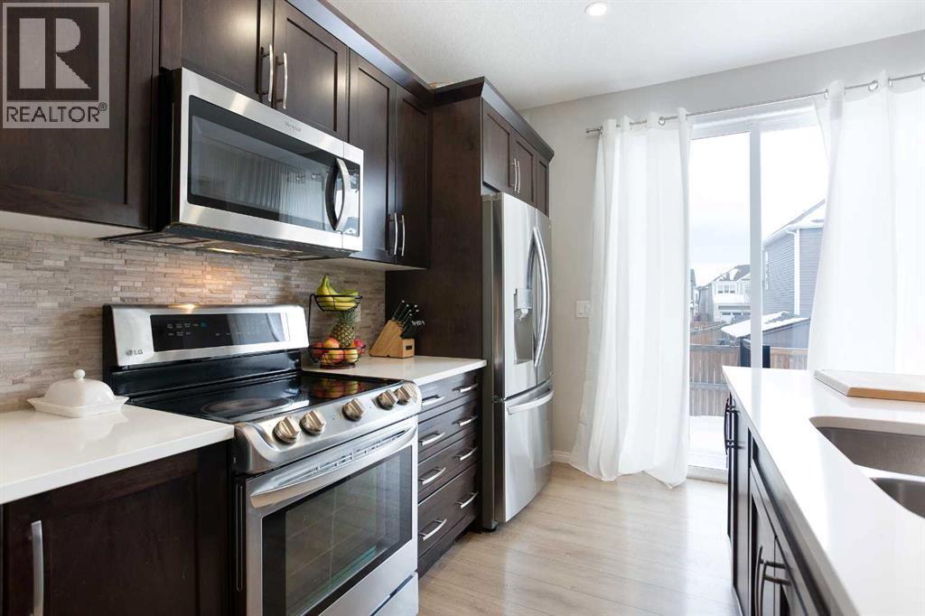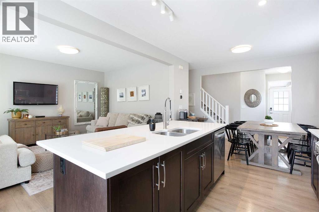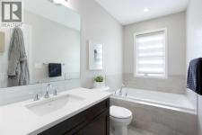 Nestled within the vibrant and highly coveted community of Southwinds, this impeccably maintained contemporary residence offers 1,726 square feet of sophisticated living space. From the moment you cross the threshold, the home exudes an air of refined elegance, characterized by soaring knockdown ceilings and a high-efficiency open-concept layout. Warm, inviting tones harmonize beautifully with durable luxury vinyl plank flooring that stretches across the main level, creating a cohesive and polished aesthetic. Bathed in a radiant glow from expansive windows, the airy living room provides a serene atmosphere for relaxation before transitioning effortlessly into a chef-inspired kitchen. This culinary masterpiece boasts sleek quartz surfaces, a central social island with integrated seating for four, and an abundance of premium cabinetry. Positioned perfectly for hosting, the kitchen flows into a grand dining area suited for both intimate weeknight meals and festive gatherings. Functional excellence is found in the thoughtful details of the main floor, including a streamlined mudroom, a discreet powder room, and a front foyer enhanced by custom built-in storage and dual closets. The upper sanctuary is anchored by a lavish primary suite designed as a private retreat. This spacious chamber features a generous walk-in closet and a spa-like four-piece ensuite, complete with a deep soaker tub and a separate glass-enclosed shower. Two additional well-proportioned bedrooms offer ample closet space and share access to a secondary full bathroom. Enhancing the home’s versatility, a sprawling upper-level family room serves as an ideal secondary lounge or media hub, while the dedicated laundry room adds a layer of modern convenience to the top floor. Beyond the finished levels, the pristine unfinished basement presents a massive blank canvas, offering endless potential for a personalized gym, theater, or guest suite to further expand your total square footage. Outside, the fully fen ced backyard provides a secure and private oasis for children to play or pets to roam. Vehicle storage is effortless thanks to the double front attached garage and a wide driveway for guest parking. Situated mere steps from lush parks, scenic playgrounds, reputable schools, and diverse shopping centers, this property flawlessly fuses architectural foresight with premium finishes. This is an unparalleled opportunity to secure a turnkey lifestyle in a neighborhood that truly has it all – don’t miss out and book your Showing today! (id:6769)