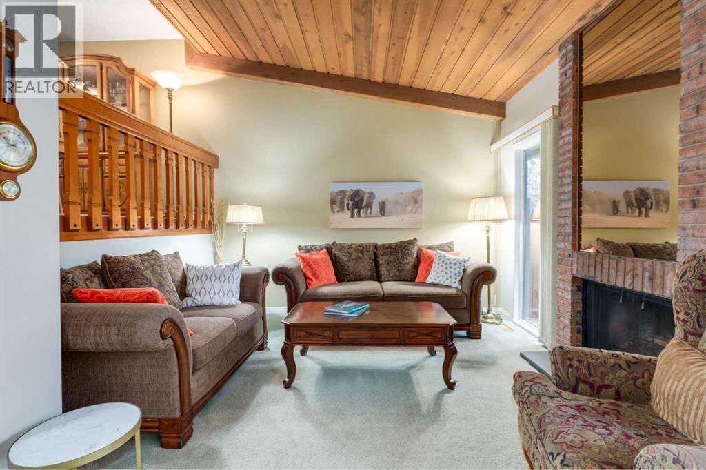 Welcome to Oakwood Lane located in the community of Oakridge. This beautiful corner 4 level split townhouse with no neighbors behind features a main floor with carpet and updated laminate flooring throughout. Large living room with gorgeous vaulted wood ceilings, wood fireplace surrounded by brick giving off a cozy ambiance and access to a west facing concrete patio and private yard. Updated kitchen with granite countertops, elegant mocha cabinets and pantry. Breakfast nook with built in cabinetry and access to a large deck. Large dining room with open to below of the living room and 2pc bathroom. The upper level features the primary bedroom with plenty of closet space and 2pc ensuite. Two other good sized bedrooms and full 4pc bathroom. The basement is fully finished with a recreation room and large under level storage. Main entry storage and laundry room and double attached garage with a gas heater and a small driveway. Just minutes from Glenmore reservoir, shopping, schools, restaurants and walking paths. Easy access to Stoney Trail, Costco and Rockyview Hospital. This is a must see unit. Don’t miss out on this opportunity. Make your private showing today. (id:6769)