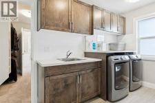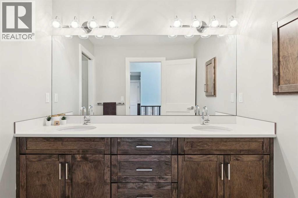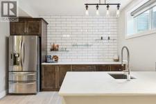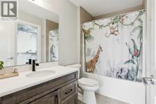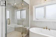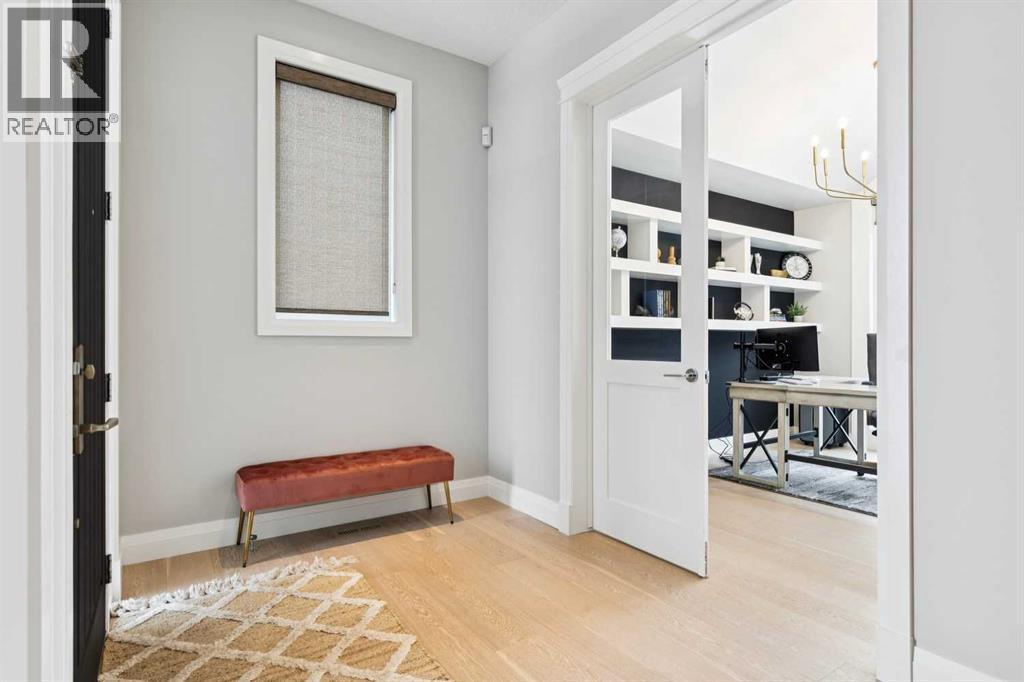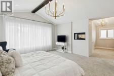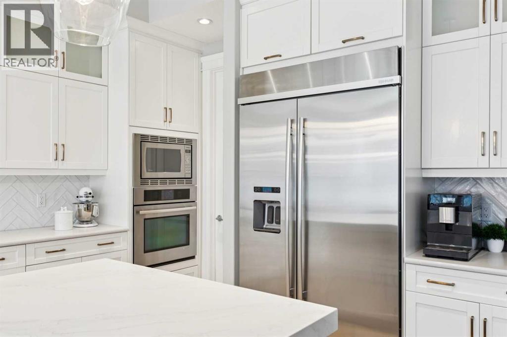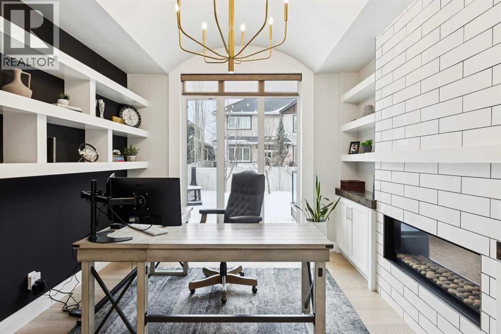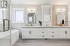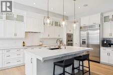 This is a home that thoughtfully accommodates real family life with space for work, rest, and entertaining, beautifully arranged across more than 4,500 square feet. Situated on a convenient, walkable street in West Springs, the property is close to some of Calgary’s best schools, parks, recreation, and everyday amenities, all within easy reach.On arrival, you’re greeted by an impressive vaulted, curved-ceiling office complete with custom built-ins and a striking two-sided fireplace, a space that works equally well for focused work or relaxed conversation. From there, the main living area opens with 10-foot ceilings and expansive west-facing windows that flood the home with natural light. A full brick feature wall with oak mantle and built-ins anchors the family room, seamlessly connected to a chef’s kitchen outfitted with JennAir appliances, custom cabinetry, and generous prep space. The dining area opens directly onto the composite deck and west backyard, ideal for evening sun and family gatherings.A thoughtfully designed walk-through pantry connects the kitchen to a well-appointed mudroom with custom storage, leading to the oversized, fully finished triple garage with epoxy floors.Upstairs, soaring ceilings and skylights continue the sense of openness. The primary retreat is expansive, featuring vaulted ceilings, large west-facing windows, and an additional double-sided gas fireplace that adds warmth and character. A private lounge area with built-in bar creates separation within the suite, offering both scale and privacy. The spa-like ensuite includes heated floors, a freestanding soaker tub, and a beautifully designed oversized shower that feels more like a private retreat than a typical bathroom. The generous walk-in closet offers extensive custom storage and connects directly to the laundry room for everyday convenience.Three additional bedrooms complete the upper level - one with its own ensuite, and two sharing a well-designed bath with double sinks and a separate water closet, ideal for busy mornings.The lower level continues the thoughtful design with 9-foot ceilings and heated hardwood floors throughout. A spacious rec room, dedicated gym, and fully equipped second kitchen make this level ideal for entertaining or everyday flexibility. Just off the kitchen is a dedicated wine and storage room, adding both function and character. A fifth bedroom and full bath complete the space.Many of the home’s key spaces - including the kitchen, living area, primary ensuite, fireplaces, powder room, and garage - were tastefully updated in 2022, blending timeless design with enduring quality. (id:6769)