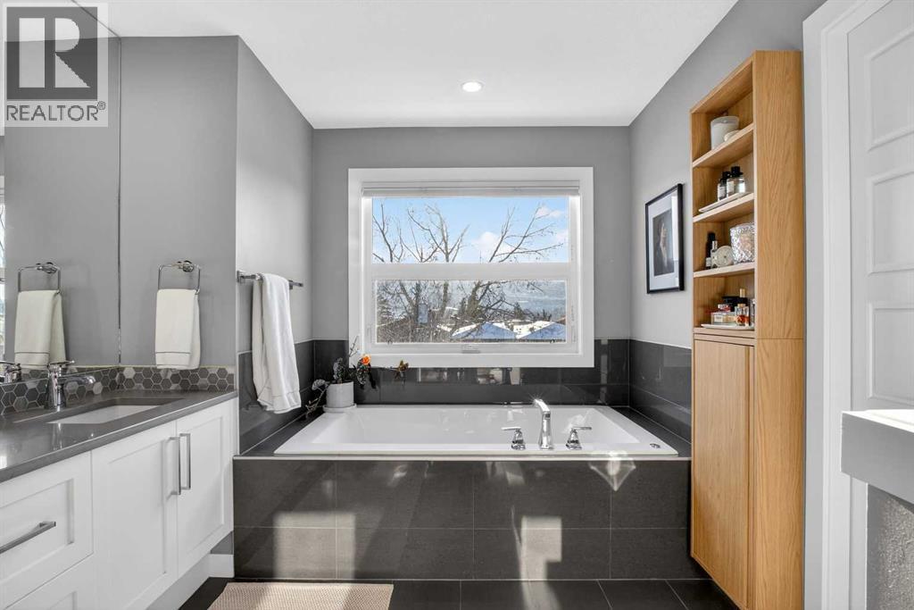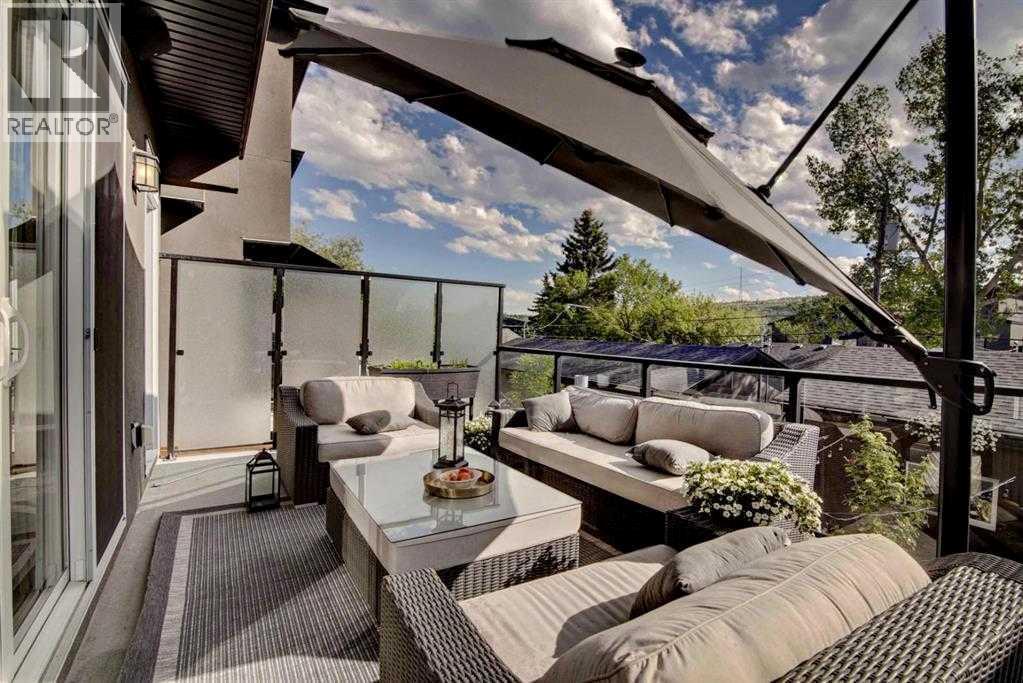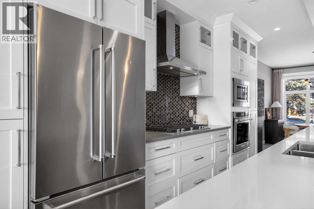 Exceptionally maintained and thoughtfully upgraded, this refined residence in Montgomery captures beautiful VALLEY VIEWS from both the living room and primary bedroom. A bright OPEN-CONCEPT MAIN FLOOR creates seamless flow for everyday living and entertaining, enhanced by HARDWOOD FLOORING, DESIGNER LIGHTING, and carefully selected finishes throughout. The kitchen anchors the space with an oversized WATERFALL QUARTZ ISLAND offering generous seating, FLOOR-TO-CEILING CABINETRY for exceptional storage, and a KITCHENAID STAINLESS STEEL APPLIANCE PACKAGE including a GAS COOKTOP, BUILT-IN WALL OVEN, and microwave. A full-height wall pantry with pullout drawers keeps everything organized, while a dedicated BEVERAGE STATION with WINE FRIDGE makes hosting effortless. The living room spans the full width of the home and invites connection, featuring a GAS FIREPLACE flanked by RECESSED SHELVING and patio sliders that open to a FULL-WIDTH BALCONY, extending your living space outdoors and maximizing the SW EXPOSURE. A tucked-away powder room completes the level. Upstairs, a soaring CATHEDRAL CEILING enhances the hallway’s sense of space, while a functional laundry room with cabinetry, utility sink, and NEW WASHER AND DRYER streamlines daily routines. Two spacious secondary bedrooms feature OVERSIZED WINDOWS for abundant natural light and flexible layouts, complemented by a 4pc main bath. The primary bedroom offers a calming retreat with a COFFERED CEILING, WALK-IN CLOSET with custom MILLWORK SHELVING AND DRAWERS, and a spa-inspired 5PC ENSUITE with OVERSIZED SHOWER and HEATED FLOORING for everyday comfort. The WALKOUT BASEMENT connects indoor and outdoor living and is designed for entertaining, complete with a rec room featuring BUILT-IN ENTERTAINMENT CABINETRY and a WET BAR with BEVERAGE CENTRE for easy refreshment access. A 4pc bath and fourth bedroom with included Ikea wardrobe add versatility for guests or home office needs. Outdoors, LOW-MAINTENANCE LANDSCAPING creates pri vacy without the upkeep of a traditional lawn, highlighted by DECORATIVE GRAVEL, RAISED GARDEN BEDS, a central PATIO framed by CONCRETE PAVERS, and a COVERED PATIO off the walkout level for sheltered relaxation. Additional UPGRADES include BUILT-IN SPEAKERS, AIR CONDITIONING, FLOOR-TO-CEILING WINDOW DRAPES, and BLACKOUT WINDOW COVERINGS in bedrooms. Parking is provided by a DOUBLE DETACHED GARAGE that is INSULATED, DRYWALLED, and EV CHARGER READY, accessed via a PAVED BACK LANE. Walking distance to BOW RIVER PATHWAYS and SHOULDICE PARK, this location also offers quick access to MARKET MALL, the UNIVERSITY OF CALGARY, FOOTHILLS MEDICAL CENTRE, ALBERTA CHILDREN’S HOSPITAL, and DOWNTOWN, delivering an exceptional balance of lifestyle and convenience. (id:6769)