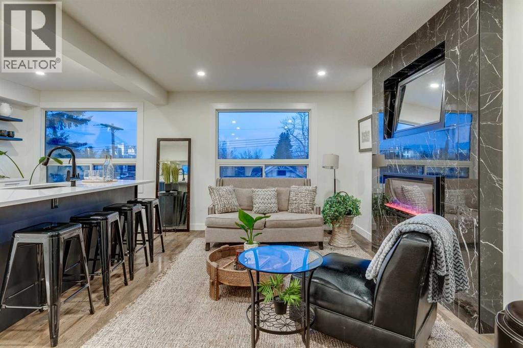 This fully renovated 1431 sq ft home offers the quintessential rooftop entertaining experience beneath the city skyline. Situated in Calgary’s highly sought-after inner-city community of Bankview, the home features an expansive 450 sq. ft. private rooftop patio boasting panoramic views extending across the downtown core. This rooftop space serves as an exceptional venue for any occasion, from summer soirées and barbecues to enjoying evening cocktails or relaxing during leisure time.The interior showcases a modern, sophisticated layout, comprising three bedrooms and two fully remodeled bathrooms, ideal for various uses such as co-habitation, a dedicated home office, or a creative studio. The open-concept kitchen is designed for social interaction, featuring quartz countertops, stainless steel appliances, and island seating that seamlessly connects with the bright, airy living room, complete with an electric fireplace and a stylish feature wall. The upper level provides access to two bedrooms and a full bathroom, both conveniently linked to the private rooftop retreat. The main floor includes an additional bedroom or office, a second full bathroom, and a practical mudroom.The walkout basement opens onto a landscaped yard, enhanced with mature fruit trees, providing an ideal setting for outdoor gatherings or tranquil repose. A heated garage offers enhanced versatility, suitable for use as a gymnasium, studio, or workspace. Additional amenities include two separate washer/dryer hookups located on the main floor and in the walkout basement.This home was extensively remodeled and renovated in the last 5 years which includes: All plumbing and electrical including new furnace and hot water tank. Completely remodeled kitchen and bathrooms, new composite deck and all exterior redone such as stucco, stairs, fence and landscaping. All windows and doors, interior exterior doors replaced, new flooring, all new drywall inside with new insulation inside the walls, LED pot-l ights with dimmers, stair and cabinet toe kick lighting and so much more. (id:6769)