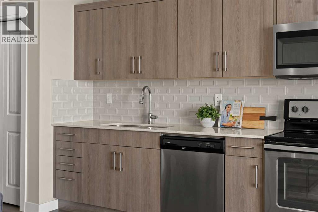 Imagine coming home to a space that feels effortlessly calm, bright, and easy. Perched on the third floor in Auburn Bay, this beautifully maintained one-bedroom suite welcomes you with natural light that pours through the windows and, on clear days, offers a subtle view of the city skyline in the distance. Lovingly cared for by its original owner, the pride of ownership is evident the moment you step inside. The layout is well designed—every square inch thoughtfully planned so there’s no wasted space. The kitchen is truly the heart of the home, with abundant counter space and generous cabinetry that make cooking and entertaining a joy. Whether you’re prepping dinner or hosting a cozy night in, everything has its place. The living area feels open and inviting, while the bedroom offers a peaceful retreat, complete with a transom window that allows soft light to filter through and enhance the tranquil atmosphere. The full bathroom is bright and sparkling, and in-suite laundry adds that everyday convenience. Step outside and you’re within walking distance to Co-op and an incredible array of shops, cafés, restaurants, and services in both Auburn Bay and neighbouring Mahogany—perfect for spontaneous dinner plans or weekend coffee dates. Pet lovers will appreciate that pets are welcome (with board approval), and with a nearby dog park, your four-legged companion will feel just as at home as you do. Added bonuses include a secure, warm, and dry main-floor storage unit and a surface-level parking stall for easy year-round access. This is the kind of home that makes life feel simple, connected, and beautifully manageable—the perfect blend of comfort, convenience, and community. (id:6769)