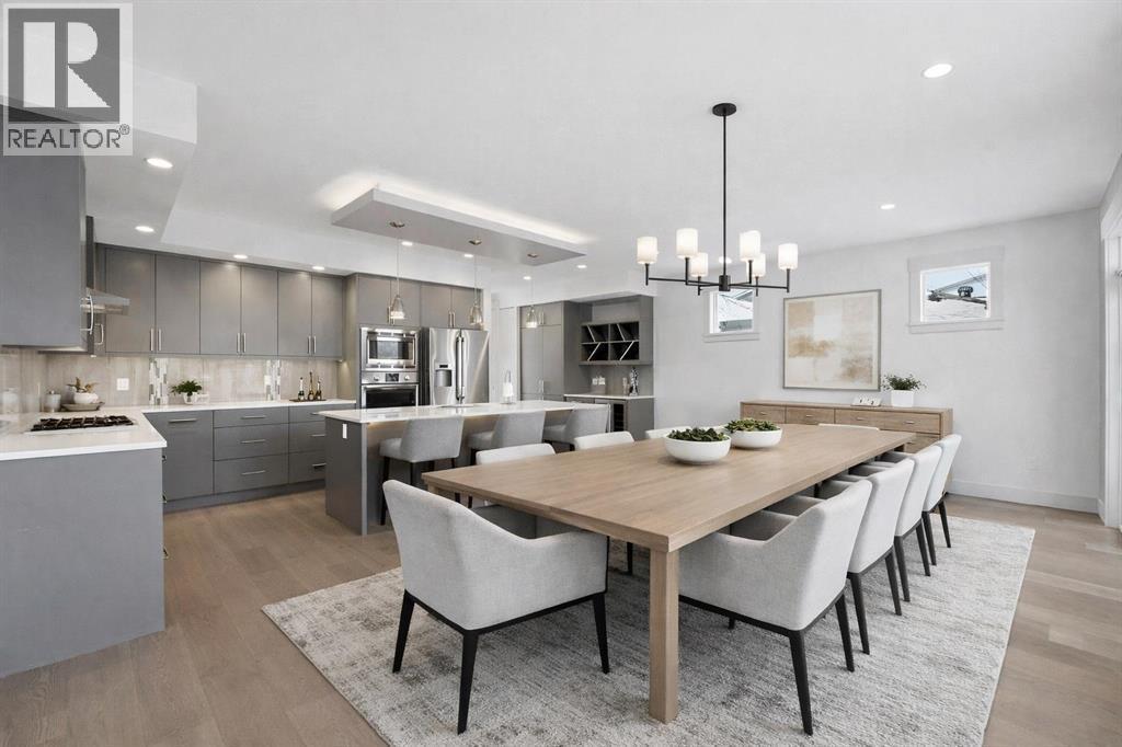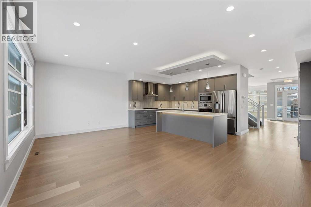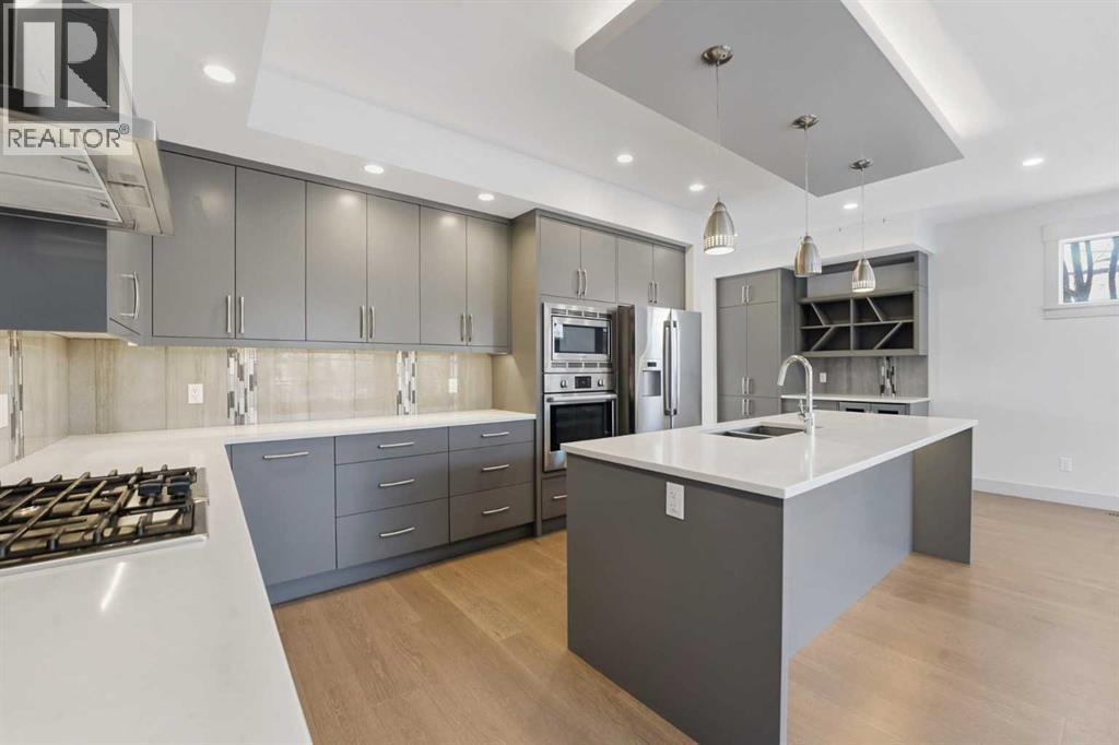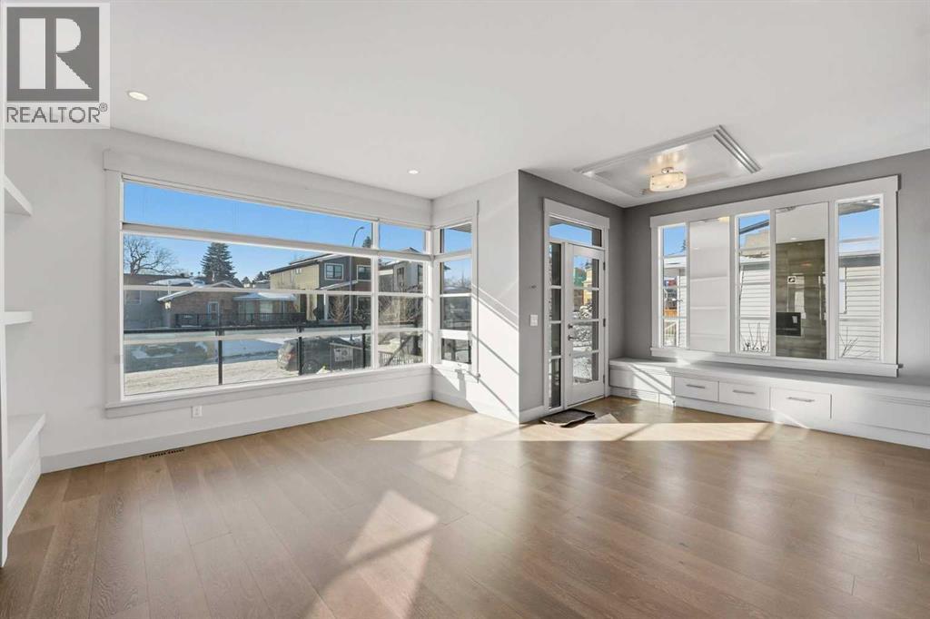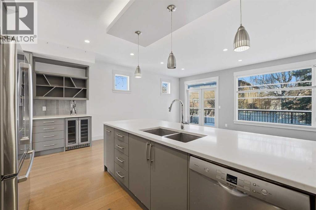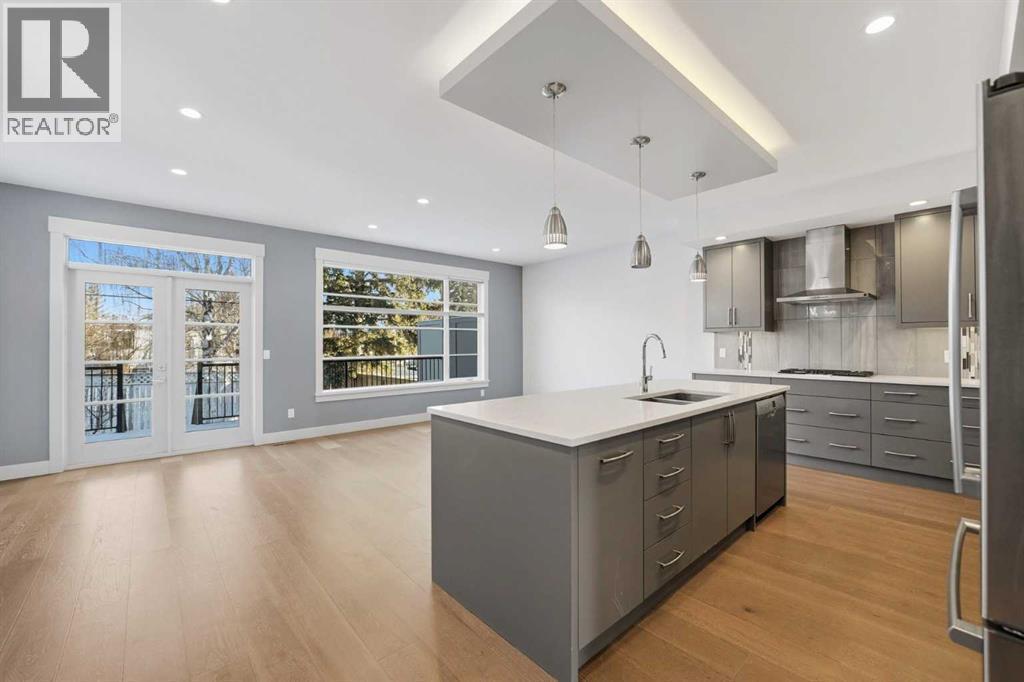 Beautifully designed semi-detached home in Shaganappi, offering quick access to downtown via Bow Trail, 17th Avenue, and the Shaganappi LRT. Featuring 3 bedrooms and 3.5 bathrooms, this home offers over 2,265 sq ft of professionally designed living space with an open-concept layout, oversized windows, and multiple skylights that create an exceptionally bright, airy atmosphere. The main level showcases engineered hardwood flooring and a thoughtfully designed staircase with a generous landing. The chef-inspired kitchen includes a large island, stainless steel appliances, gas range, built-in wall oven and microwave — ideal for both everyday living and entertaining. Upstairs, you’ll find 3 spacious bedrooms including a generous primary suite with walk-in closet and ensuite. A full bathroom, convenient upper-level laundry, and a bright flex space complete the level. The fully finished basement offers a large family room and an additional full bathroom — perfect for guests, media, or recreation. Additional highlights include:• Central air conditioning• Quality window coverings• Private backyard with expansive deck• Double attached garage with large front drivewayMove-in ready and ideally located — an excellent opportunity as a primary residence or strategic investment in one of Calgary’s established inner-city communities. (id:6769)