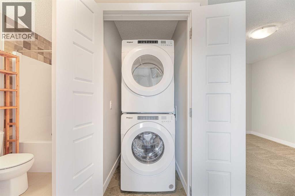 | 2023 | DOUBLE DETACHED GARAGE | SEPARATE ENTRANCE | MOVE IN READY | This beautifully designed 1,626 sq. ft. duplex by Shane Homes combines high-end style with everyday functionality in the heart of Pine Creek. Move-in ready, the home features a sun-drenched, open-concept main floor with soaring ceilings, durable LVP flooring, and a stunning kitchen boasting quartz countertops, stainless steel appliances, and a convenient walk-in pantry. A south-facing front veranda invites you inside, while the rear entrance provides easy access to a 2-piece powder room and leads out to your double detached garage. Upstairs you will find a central bonus room, with a large primary bedroom, 3pc ensuite bathroom and a walk-in closet to one side, and two additional bedrooms, a 4pc bathroom and a laundry area on the other side. All bathrooms are finished with quartz countertops and tile flooring. The basement adds incredible value with a separate side entrance and plumbing rough-ins for a future legal suite, upon approval by the City of Calgary. Perfectly situated within walking distance of schools, shopping, and pathway trails, this home also offers quick access to Macleod and Stoney Trails for an effortless commute. (id:6769)