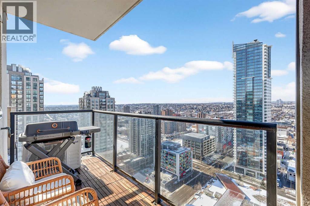 Take in breathtaking mountain and Bow River views from the 24th floor of the highly desirable Vantage Pointe. This beautifully updated two bedroom, two bathroom condo offers the ideal blend of comfort, style, and unbeatable inner city convenience. Perfectly positioned just steps from Calgary Co-op and within easy walking distance to downtown and the vibrant energy of Uptown 17th Avenue, you will love the incredibly walkable lifestyle. Restaurants, cafés, shopping, and everyday amenities are all right at your doorstep. Inside, the modern kitchen showcases stainless steel appliances and quartz countertops, seamlessly connecting to the bright, open concept living area. Expansive windows flood the space with natural light while perfectly framing the stunning mountain and river views. Additional features include in suite laundry, air conditioning, and a private balcony with a gas BBQ hookup that is ideal for relaxing or entertaining. This pet friendly building offers a fitness centre, secure entry, visitor parking, and an impressive lobby. A titled underground parking stall is included, and the low condo fees cover heat, electricity, water, sewer, and parking, ensuring easy, worry free ownership. An exceptional opportunity for a first time buyer, a professional working downtown, or an investor seeking a prime rental property in a sought after location. Enjoy elevated urban living with spectacular views every day. (id:6769)