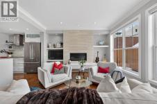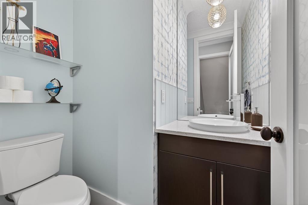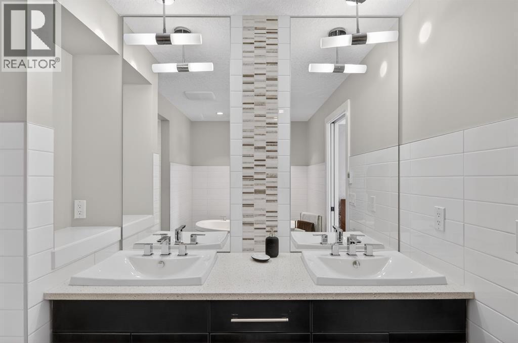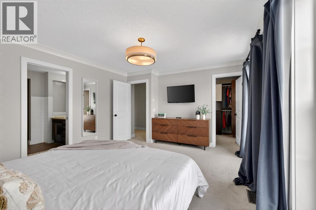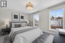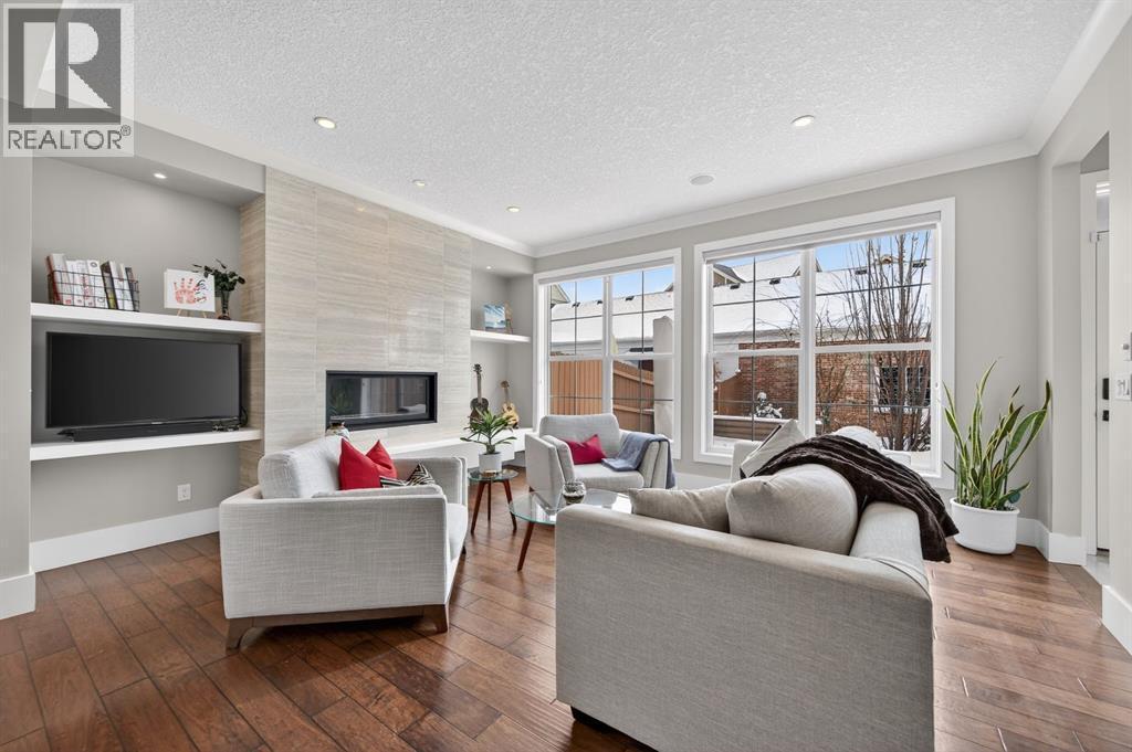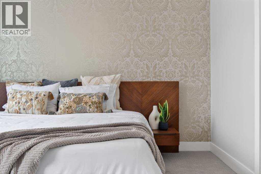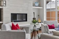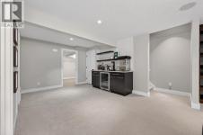 Rare opportunity to own a fully renovated townhouse in the coveted community of Currie Barracks. Flooded with natural light, the main floor showcases hardwood flooring, high ceilings, and a spacious dining area that flows seamlessly into a stunning custom kitchen featuring a quartz waterfall island, built-in stainless steel appliances, buffet with wine fridge, and extensive cabinetry. The oversized living room is anchored by a gas fireplace with a beautiful stone mantle and custom built-ins. Step outside to a thoughtfully designed backyard with a large Kayu hardwood deck and a beautifully landscaped lower garden. The insulated double detached garage is finished with epoxy flooring and custom storage. Upstairs, the primary retreat offers a massive walk-in California Closet and a spa-inspired ensuite with heated floors, soaker tub, separate shower, and dual vanities. A second bedroom with its own ensuite and walk-in closet, plus convenient upper-floor laundry, complete this level. The sprawling third level is ideal as a bedroom, home gym, or recreation room. The thoughtfully designed lower level is designed for entertaining, with a cozy media room, built-in speakers, Murphy bed with shelving, wet bar with wine fridge, and an additional full bathroom. Added highlights include a built-in sound system throughout and air conditioning for year-round comfort. Exceptionally well planned, Currie Barracks offers outstanding schools, scenic walkways, beautiful parks, and a growing collection of restaurants, cafés, and breweries, all just a short 10-minute drive to Downtown Calgary. Perfect for young professionals, this vibrant inner-city community delivers an unbeatable lifestyle. (id:6769)