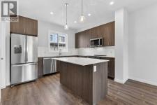 HOME IS UNDER CONSTRUCTION. StreetSide proudly presents this exceptionally popular interior-unit townhome, where expansive living areas meet modern comforts and sophisticated finishes. The thoughtfully designed floorplan features three spacious upper-level bedrooms and two and a half well appointed bathrooms, complemented by a versatile lower-level den perfect for a home office or quiet retreat. The heart of the home is an inviting open-concept main floor, anchored by a large gourmet kitchen featuring a functional breakfast bar for casual dining. This bright living space transitions seamlessly to a private balcony, offering a perfect setting for outdoor relaxation. The interior showcases high end craftsmanship, including modern dark slab-style cabinetry with a full bank of drawers for maximum storage. The kitchen is further elevated by polished white quartz countertops and a full suite of premium stainless steel appliances. Durable luxury vinyl flooring runs throughout the primary living areas, while the stairs and upper level are finished with plush carpet over an 8lb underlay for superior comfort. Additional conveniences include an attached double car garage and a lifestyle defined by maintenance free living and professionally maintained landscaping. Located in the vibrant community of Hotchkiss, where nature takes centre stage by boasting 80+ combined acres of green space and wetlands, providing a scenic backdrop for modern living. Enjoy proximity to Seton’s vibrant retail district, world-class healthcare, and easy highway access. As the community grows to include its own school and daycare, Hotchkiss remains the premier choice for those seeking a balanced, well-connected lifestyle. Please note that photos used are of another unit as this home is still being built. (id:6769)