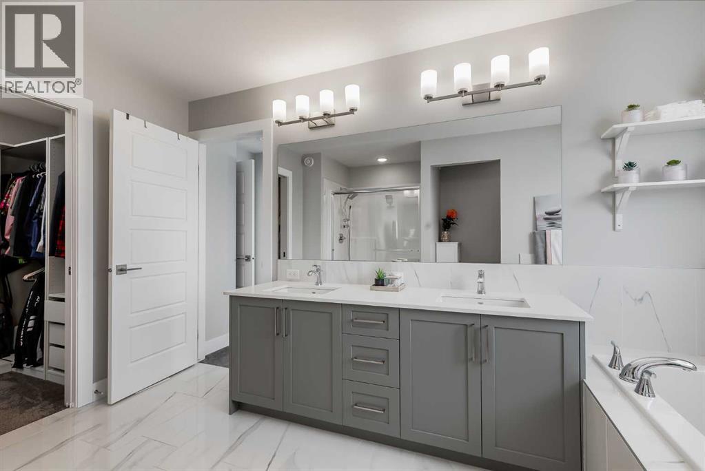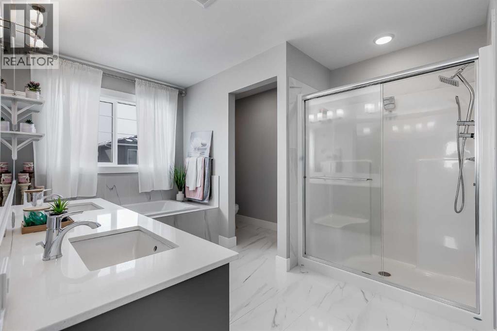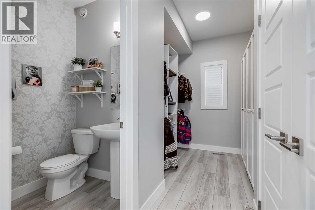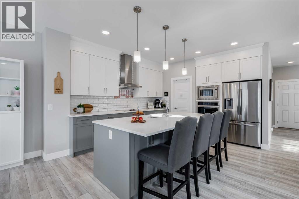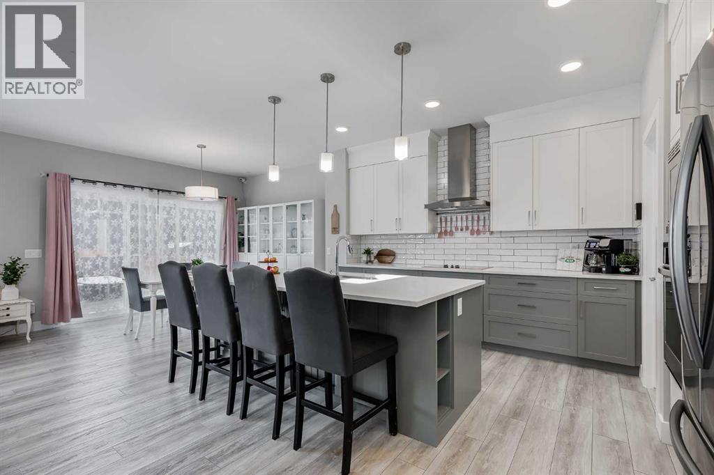 Nestled in the vibrant, family-friendly community of Chinook Gate, this home, built by Excel Homes in 2023, offers 2,375 sq ft of thoughtfully designed living space on a corner lot with a double attached garage. With serene pond views and scenic walking paths, it combines modern comfort with an exceptional location, just steps from parks, playgrounds, and all the amenities a growing family could want. Inside, a welcoming entryway with soaring 9’ ceilings sets the tone for the main floor, where luxury vinyl plank flooring and abundant natural light create an open, airy feel. A flexible front room offers a home office, sitting area, or formal dining space, adapting easily to your lifestyle. The heart of the home is the open-concept kitchen, dining, and living area. The kitchen impresses with crisp white upper cabinetry paired with grey lower cabinetry, quartz countertops, a stylish backsplash, stainless steel appliances, and a spacious island with seating. A walk-in pantry and plentiful counter and cupboard space ensure functionality meets style. The dining area accommodates family meals or entertaining, while the living space provides a comfortable place to unwind. Sliding doors open to the expansive west-facing deck, extending the living space outdoors. A powder room and mudroom complete the main level. Upstairs, plush carpeting adds comfort throughout, and the bonus room with vaulted ceiling provides a bright, versatile space for movie nights, play, or quiet relaxation. The primary retreat features a walk-in closet and a luxurious five-piece ensuite with dual sinks, a soaker tub, and an oversized shower with built-in seating. Three additional bedrooms, a four-piece bathroom, and a convenient upper-level laundry room make daily living effortless for a busy household. The unfinished basement offers a blank canvas for a future living area, home gym, or extra storage. The backyard is designed for enjoyment and entertaining. A large composite deck is perfect for barbecu es, while the hot tub is a showstopper. Less than a year old, this 10–12 person “party tub” is among the largest available and doubles as a splash pool for kids during warmer months. Energy-efficient and costing less than $20 per month to operate, it’s an affordable, year-round addition for relaxation and gatherings. Additional backyard amenities include a trampoline and a gravel pad with RV parking, while a basketball hoop is positioned at the front driveway. The home also features air conditioning and a 220-volt outlet in the garage. Chinook Gate offers a lifestyle of ease and recreation. Quick access to 8 Street, Yankee Valley Blvd, and Hwy 2 makes commuting simple, while nearby schools, shopping, dining, and public transit keep daily life effortless. W. H. Croxford High School is close by, and Chinook Winds Regional Park is just steps away, featuring three playgrounds, a skate park, a spray park, multi-use courts, beach volleyball, ball diamonds, a toboggan hill, and outdoor skating in winter. (id:6769)