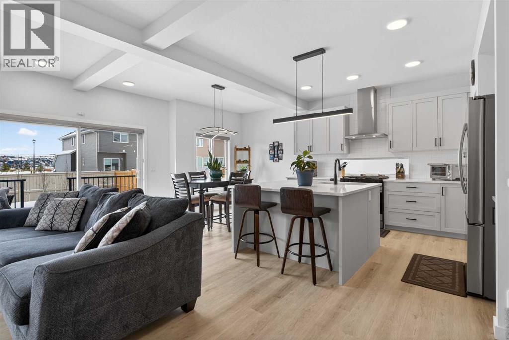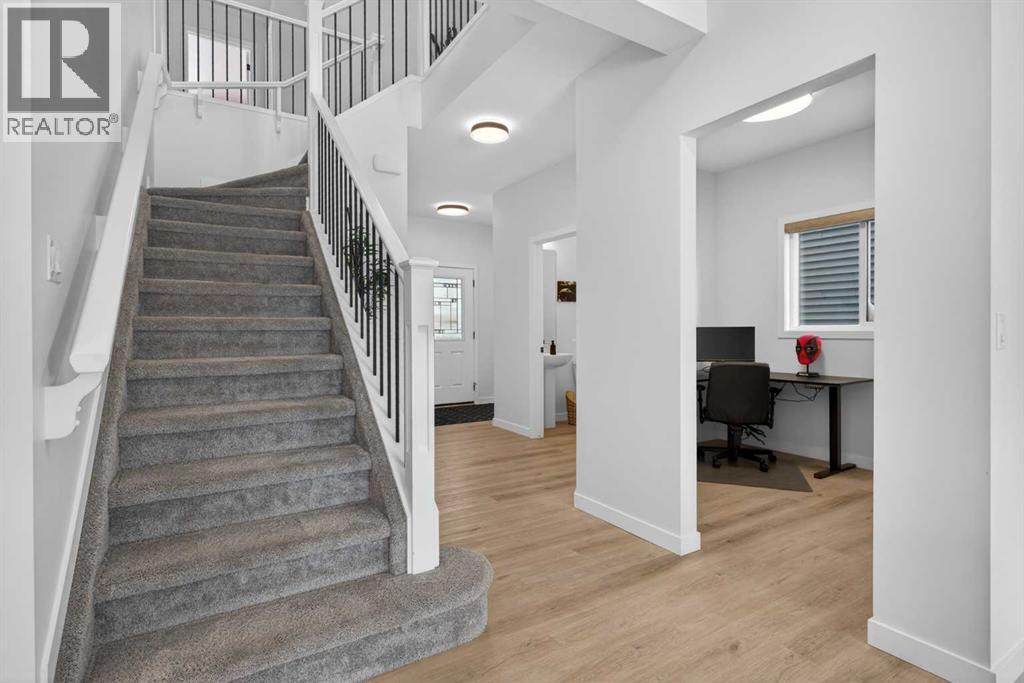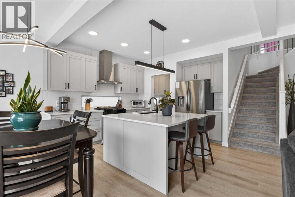 Looking for the perfect home for your family? Well you’ve found it in this beautifully crafted two storey in the popular Airdrie community of Bayside, located here on this quiet crescent within walking distance to neighbourhood parks, ponds & the canals. Built by McKee Homes for the original owners, this wonderful home enjoys luxury vinyl plank floors & quartz countertops, total of 4 bedrooms up, relaxing central air & fantastic outdoor space in the fully fenced & landscaped West backyard. With its 9ft ceilings & expanse of windows, you’ll love the bright & airy main floor with its gracious living room with remote-controlled gas fireplace & beamed ceilings, open concept dining room with views of the backyard, home office alcove & custom kitchen with centre island & quartz counters, butlers & walk-in pantry, ceramic tile backsplash & upgraded stainless steel appliances including a Samsung gas stove/convection oven. Upstairs there are 4 lovely bedrooms highlighted by the West-facing primary bedroom with walk-in closet & ensuite with quartz-topped double vanities, separate shower & soaker tub. Another full bathroom is shared by the other 3 bedrooms…2 of which have walk-in closets. A spacious bonus room & laundry room with GE steam washer & dryer complete the 2nd floor. The unspoiled lower level – with roughed-in bathroom plumbing & oversized windows, offers tremendous potential for future living space. Additional features include Clean Comfort HVAC system & triple-pane windows, natural gas line for your BBQ on the backyard deck, garage door opener with built-in camera, adjustable LED lighting throughout, Ecobee thermostat & upgraded SMART appliances. As one of Southwest Airdrie’s premier family communities, Bayside features 100km of paved pathways winding throughout the neighbourhood & along picturesque canals & ponds, with numerous parks & playgrounds for year-round activities. Nose Creek Elementary & W.H. Croxford High are both just minutes away, & with its prime loc ation to Yankee Valley Blvd means all regional amenities are close-by (Chinook Winds Regional Park, Genesis Place, retail centers, Woodside Golf Course, etc) & you’ve got quick & easy access to the QEII to Cross Iron Mills, the airport & Calgary. (id:6769)
