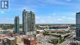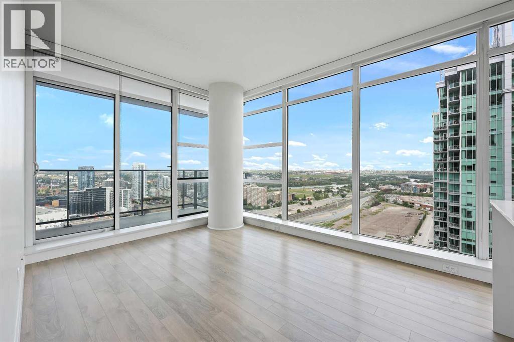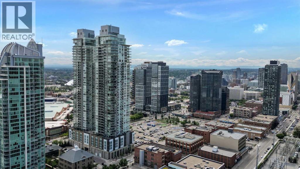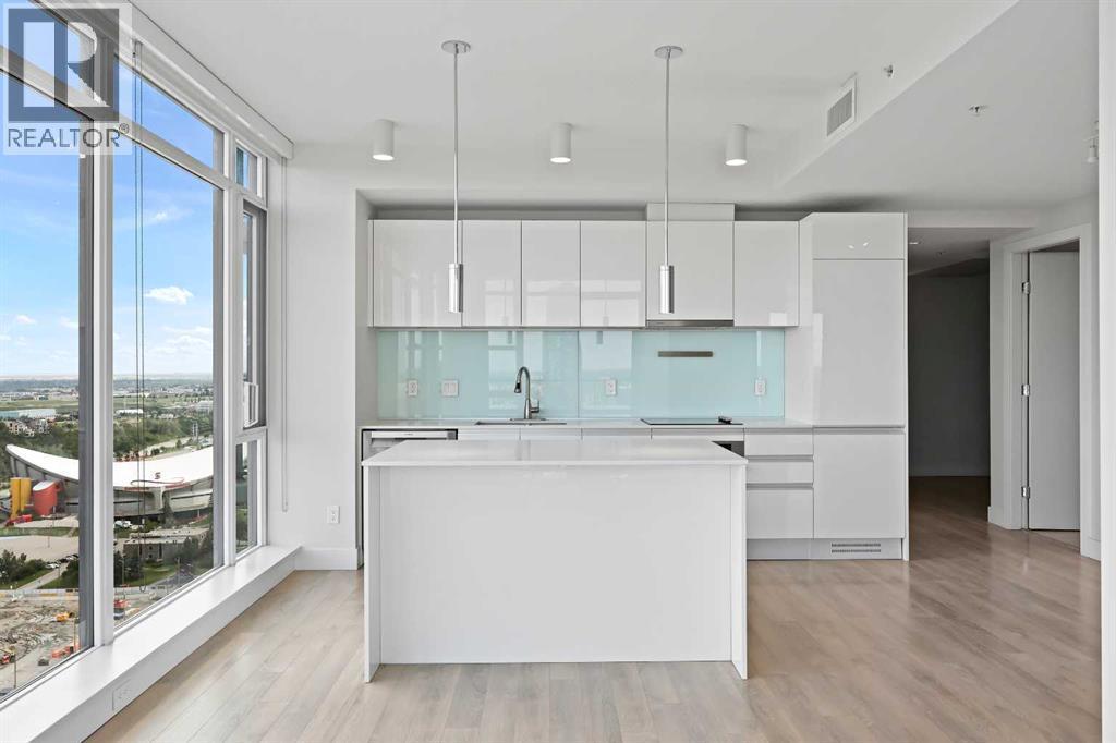 Experience refined urban luxury in this breathtaking 27th-floor corner residence at The Guardian, Calgary’s tallest residential tower. Perfectly situated in the dynamic and historic Victoria Park, this premier address places you just steps from the iconic Scotiabank Saddledome, Stampede Park, Studio Bell, and the architectural masterpiece of the Calgary Central Library — offering the ultimate downtown lifestyle at your doorstep. Inside, walls of floor-to-ceiling windows frame jaw-dropping panoramic views of downtown Calgary, the Bow River, East Village, and Stampede Park, filling the home with an abundance of natural light from sunrise to sunset. The open-concept living and dining space is designed to impress — ideal for entertaining or unwinding against a stunning city backdrop. At the heart of the home, the custom Italian Armony Cucine kitchen is a true showpiece, featuring sleek quartz countertops, a dramatic full-height glass backsplash, and premium stainless-steel appliances — a seamless blend of sophistication and function. Retreat to the dreamy primary suite, complete with custom built-in closets, captivating skyline and river views, and a spa-inspired 4-piece ensuite designed for total relaxation. A spacious second bedroom with custom built-ins, a full guest bath, and convenient in-suite laundry round out this intelligently designed layout. Additional highlights include upscale finishes throughout, an oversized private balcony perfect for summer evenings, titled underground parking, and a dedicated storage locker. Residents of The Guardian enjoy exceptional amenities including a state-of-the-art fitness centre, yoga studio, stylish social lounge with outdoor terrace, workshop, and the comfort of full-time concierge and security services. Whether you’re a professional seeking sophistication, an investor looking for a premier asset, or simply someone who values elevated design and unbeatable convenience, this is downtown Calgary living at its absolute finest. (id:6769)