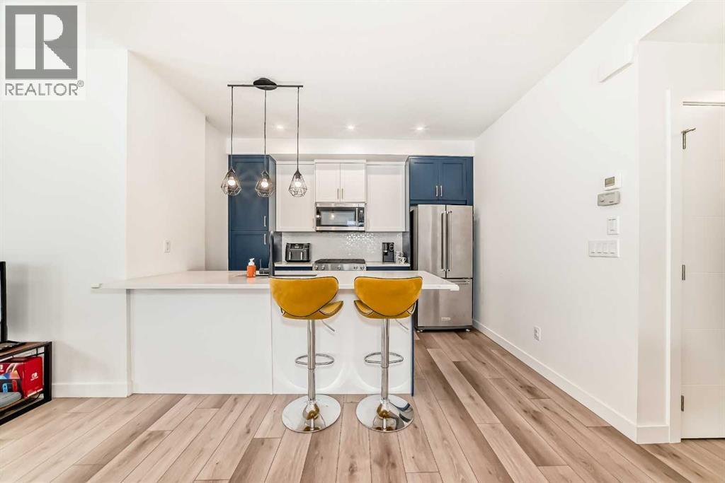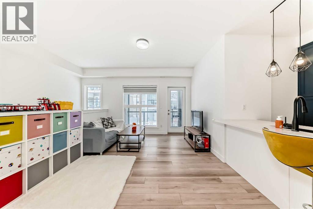 Welcome to this stunning corner-unit townhouse in the prestigious community of Springbank Hill SW, nestled within the highly desirable “Aspen Springs” development. Backing onto a peaceful green space and offering one of the largest floor plans in the complex, this nearly new home presents over 1,100 sq. ft. of beautifully designed living space that perfectly blends modern elegance with everyday functionality.The main floor welcomes you with a versatile office/den—ideal for remote work, study, or creative pursuits. Upstairs, the sun-filled open-concept living area creates an inviting atmosphere for both relaxing and entertaining. The chef-inspired kitchen showcases gleaming quartz countertops, stainless steel appliances, a stylish tiled backsplash, and a central island that offers additional workspace and casual seating. The spacious dining area and cozy living room flow seamlessly onto a large private balcony, complete with a gas hookup—perfect for summer BBQs and outdoor gatherings.The upper level features two generously sized bedrooms, including a serene primary retreat with a walk-in closet and a bright, well-appointed ensuite bathroom. A second bedroom and a contemporary full bathroom provide comfort for family members or guests, while the conveniently located washer and dryer on the same level add everyday practicality. Luxury vinyl plank flooring throughout enhances both durability and sophisticated style.This exceptional home also includes a private attached single garage and a gas BBQ line for effortless entertaining. Enjoy the convenience of a retail plaza within the complex and being just minutes from Aspen Landing for premium shopping and dining. Families will appreciate close proximity to top-tier private schools such as Webber Academy, Calgary Academy, and Rundle College, along with easy access to downtown Calgary, Stoney Trail, and the 69 Street LRT station.Move-in ready and filled with thoughtful upgrades, this elegant townhouse offers the per fect balance of urban convenience and tranquil suburban living. An outstanding opportunity for families, young professionals, or investors seeking a refined home in one of Calgary’s most sought-after neighbourhoods. (id:6769)