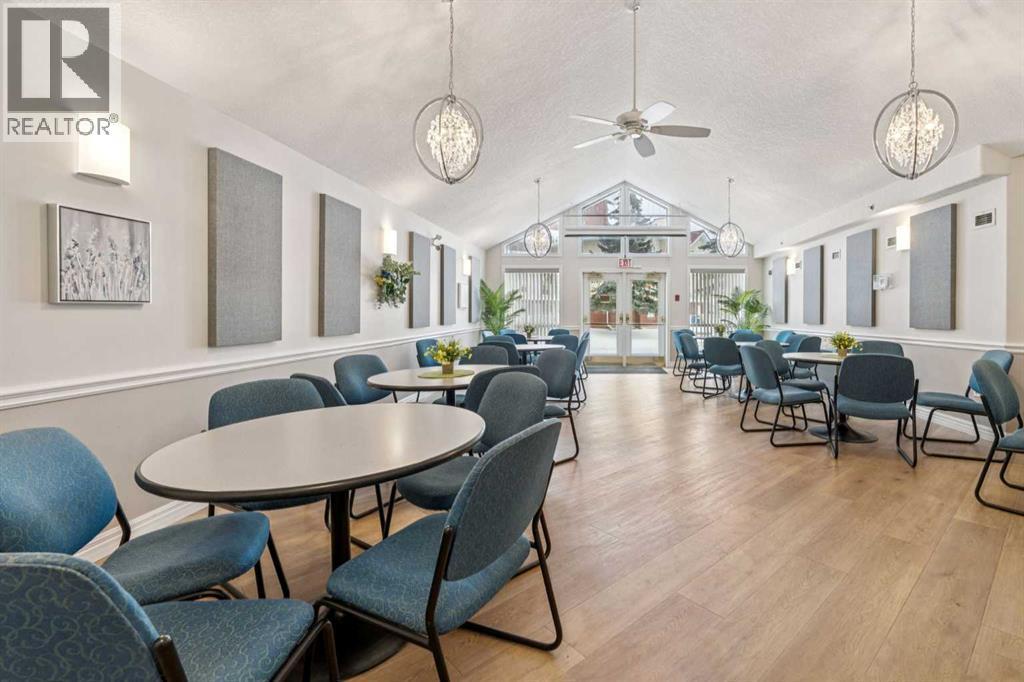Retire your Cares - NOT your Dreams! Immaculate TOP FLOOR 2 Bedroom/2 Bath Condo with TREED Courtyard Views, AMAZING In-House Amenities & Numerous UPDATES throughout! Stylish Modern Kitchen - QUARTZ Counters, Crisp White & Blue Cabinetry, Stainless Steel Fridge & Dishwasher & Convenient Side PANTRY. Flexible Open Living & Dining Area with lots of natural light - Generous Master with WALK-THRU Closets & Ensuite bath, Spacious 2nd Bedroom perfect for Guests or a Computer/Sewing/Craft Room, 2nd full Bath with “Easy Access” Shower & Private Balcony for relaxing morning coffees with Sunrise views. There’s a large Laundry & Storage Room with newer washer & dryer Plus an X-TRA Storage Locker in your UNDERGROUND parking stall. How’s your SOCIAL calendar? Dana Village offers daily activities - fitness classes, movie nights, potluck dinners, game nights & a “HELPING HANDS” committee to assist owners with small daily chores, along with exceptional SITE FACILITIES - Fitness, Billiards, & Puzzle areas, Woodworking Shop & even a Car Wash Bay - all accessible WITHOUT going outside. SUPERIOR complex construction focused on SAFETY & SECURITY includes 5 elevators, security doors & low maintenance fire retardant materials - Concrete Tile roof, Stucco exterior & fire suppression system with sprinklers & speakers. 55+ AGE Restricted, Non-Smoking complex & 1 cat is permitted with Board Approval. CENTRAL LOCATION with Easy Access to Transit & LRT, Shopping, Downtown & the Mountains too. Those who say “You can’t buy happiness” haven’t been to Dana Village! (id:6769)