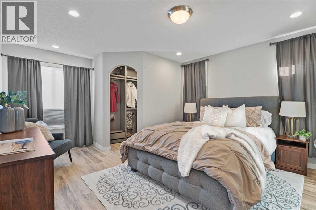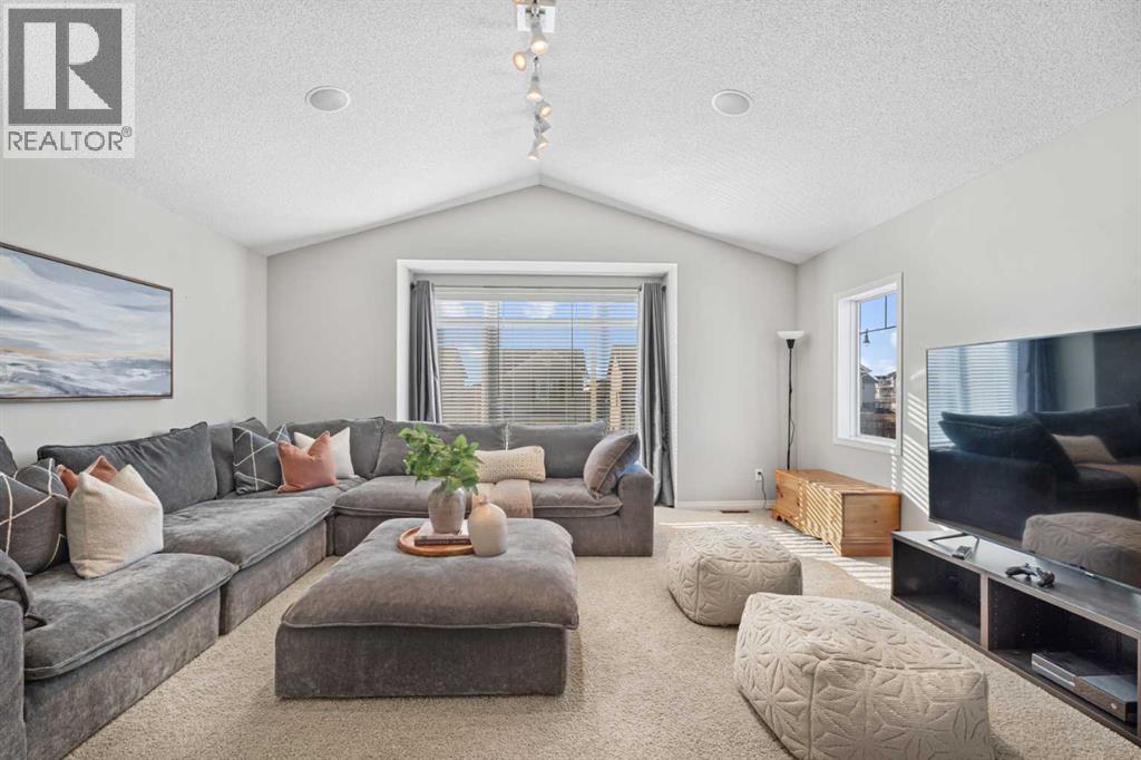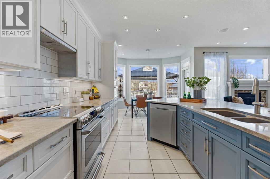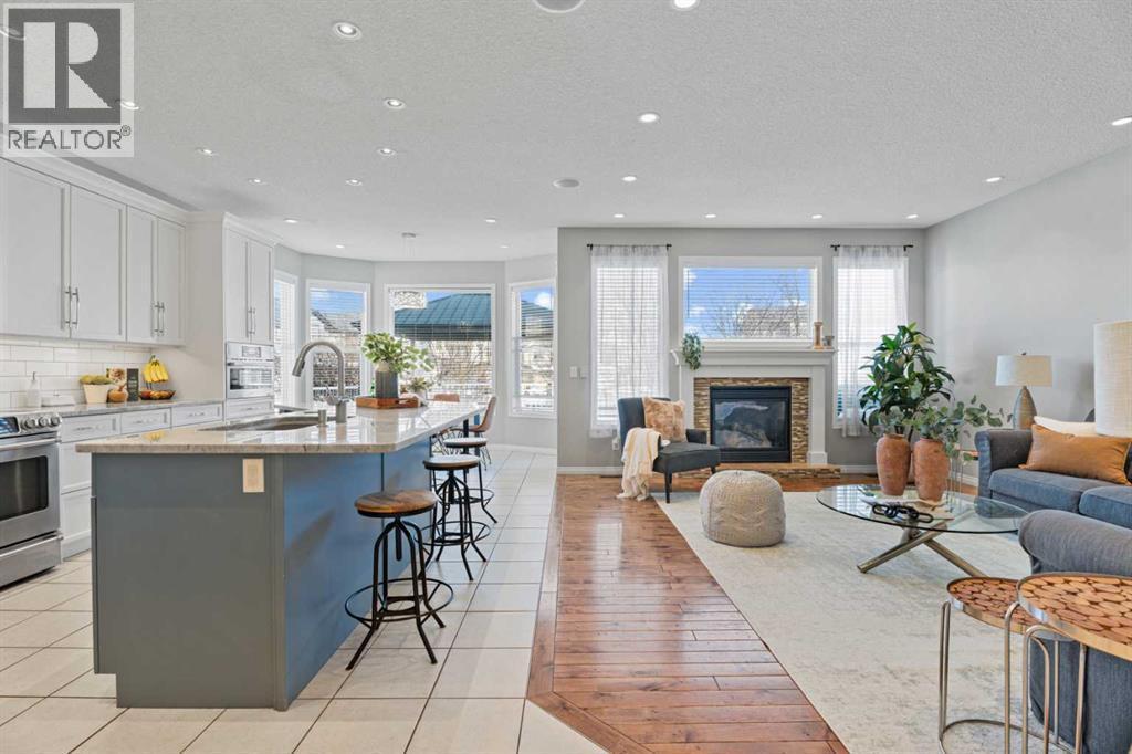 Welcome to your next home in the highly sought-after community of Drake Landing! Situated on a large corner lot backing onto walking paths and green space, this beautifully maintained home offers space, functionality, and thoughtful upgrades in a family-friendly neighbourhood known for its great neighbours and welcoming atmosphere. Lovingly cared for and beautifully updated, this home is move-in ready. A spacious front entrance welcomes you into a bright, open-concept main floor filled with natural light from lots of windows. The centrepiece of the home is the kitchen, fully renovated in 2021. Featuring two-tone contemporary shaker cabinetry, one-of-a-kind stone countertops, stainless steel appliances, including a BOSCH microwave speed oven, and a massive single-level island with seating for six. Storage is outstanding with lots of deep drawers and cabinetry, a dual pull-out recycling station, a walk-in corner pantry and a stunning custom coffee station complete with walnut floating shelves and undermount lighting. The spacious living room creates a warm gathering space with a cozy gas fireplace as a focal point. The mudroom has lockers, bench seating, and hooks to keep busy family life organized, and a two-piece powder room completes the main level. Upstairs, there's a massive vaulted west-facing bonus room that captures mountain views and provides the perfect space for relaxing or family movie nights. The primary ensuite was remodelled in 2024, featuring a walk-in shower replacing the original soaker tub, updated tilework, a double vanity, and a toilet thoughtfully relocated behind a pocket door for added privacy. Two additional generously sized bedrooms, new vinyl flooring throughout all upstairs bedrooms and stairs, updated window blinds, and a full four-piece bathroom complete the upper level. The fully developed basement adds incredible flexibility, with a spacious laundry room featuring a high-efficiency washer and dryer, a three-piece bathroom, and two large bedrooms ideal for teenagers needing their own space, a home office, a gym, or a creative studio. Four floor-to-ceiling storage lockers provide exceptional storage solutions perfect for seasonal items and bulk shopping. The triple-attached garage is a true standout, offering workshop-level functionality with a thermostat-controlled radiant gas heater, high-speed ventilation fan, hot and cold water taps, a centre floor drain, and corrugated metal siding for added fire protection. This thoughtful setup allows room to park two vehicles while maintaining a dedicated workshop bay. Outside, the professionally landscaped yard has been refreshed with updated garden beds, new sod in the backyard, and a newly planted front-yard tree in 2025. (id:6769)