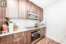 CONCRETE AND STEEL FRAME CONSTRUCTION offering superior noise reduction, reduced insurance costs, and exceptional durability. The building features high-efficiency boilers and HRV systems, with geothermal heating and cooling throughout. Equipped with Cat 5(e) wiring for advanced data and phone connectivity. This spacious 2-bedroom, 2-bathroom unit includes a den, in-suite laundry, and a titled underground parking stall. Designed with modern finishes, the interior boasts wide plank laminate flooring, bright polished white quartz countertops, and premium European-designed Fisher & Paykel appliances, including a dishwasher, induction cooktop, and convection microwave/hood fan combo. Stackable Whirlpool laundry machines are included, and the refrigerator is equipped with a microprocessor that monitors usage to extend food freshness. The primary suite features a walk-in closet and a full ensuite. Ideally located just steps from the C-Train station, shopping, and minutes from Westhills and downtown. Currently tenant occupied on a month-to-month basis—24 hours' notice required for showings. (id:6769)