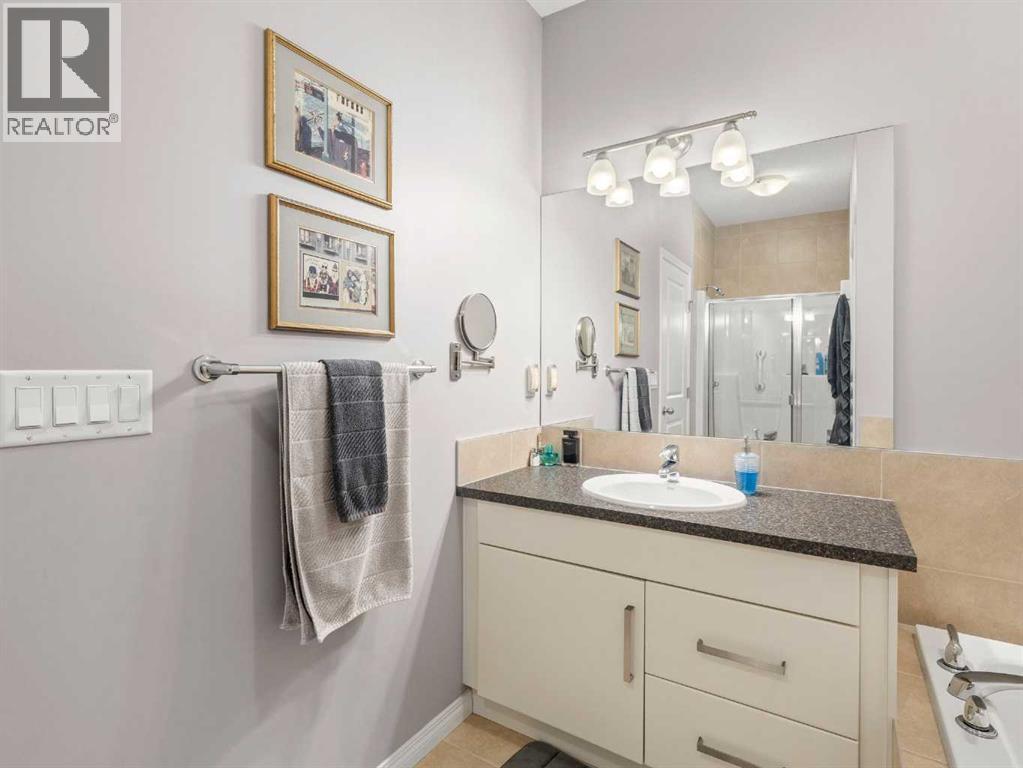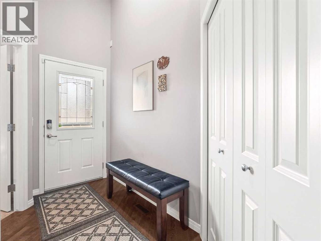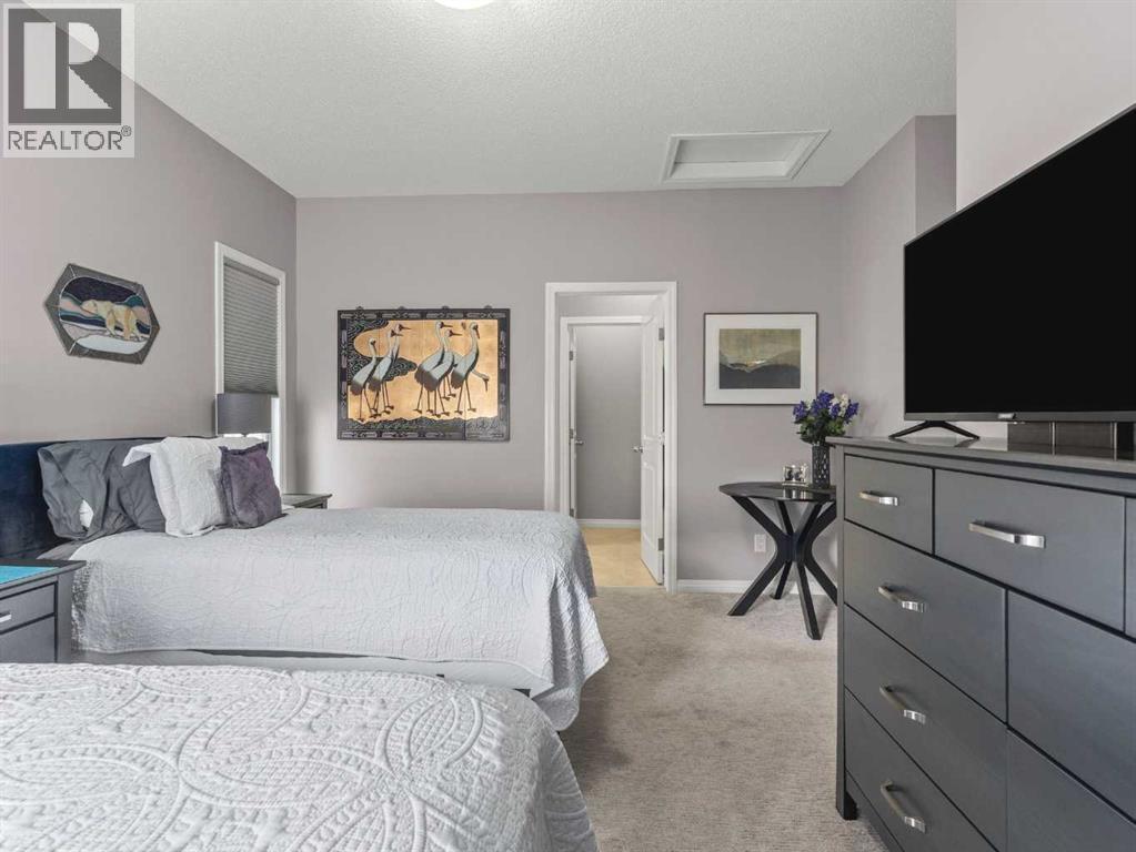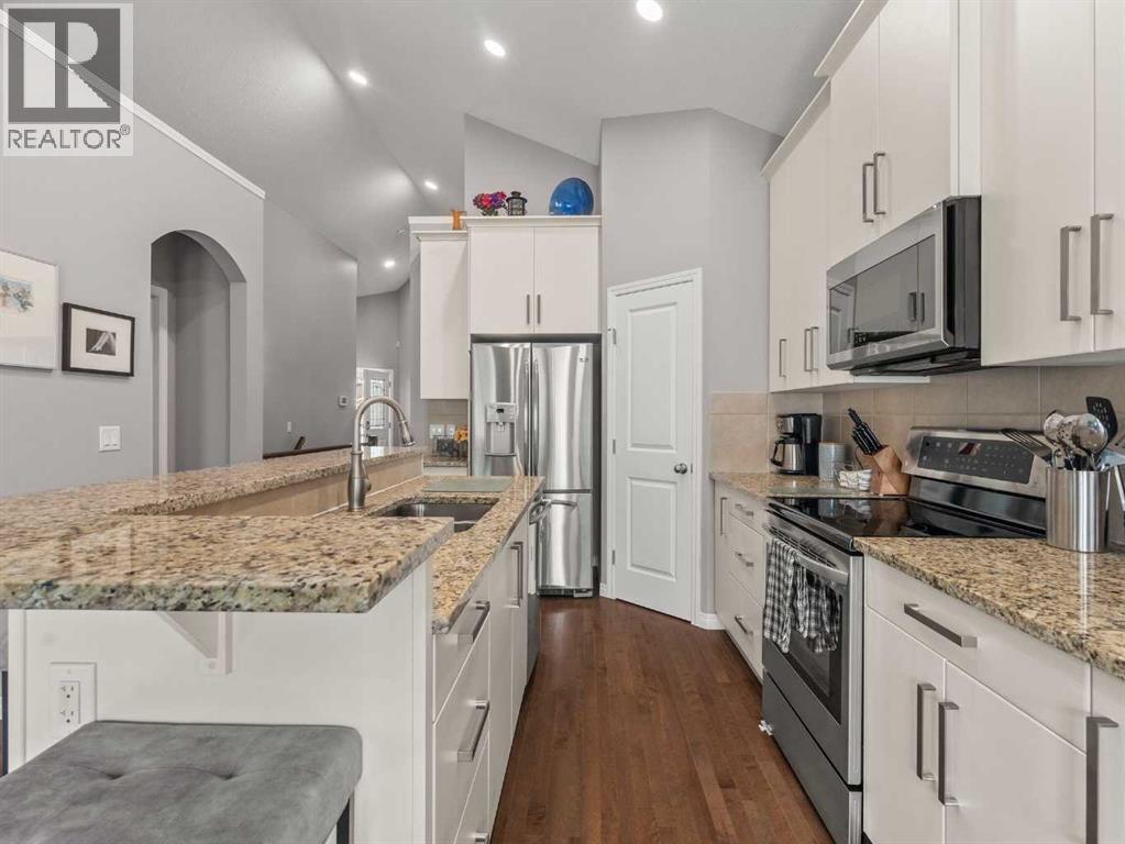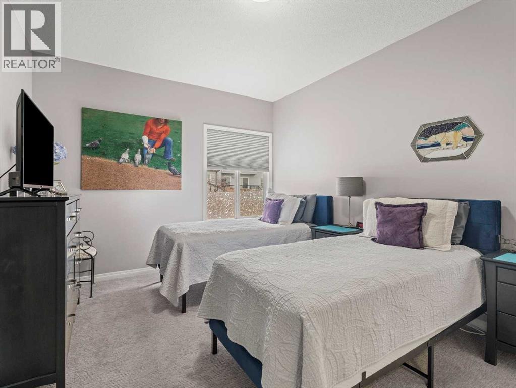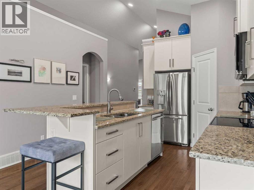 NO CONDO FEES! Welcome to this meticulously maintained 2 bed/2 bath semi-detached bungalow in one of Airdrie’s most sought-after communities! One block from the picturesque canals and walking trails in Bayside, this location offers the perfect balance of peaceful surroundings and everyday convenience. Step inside to a bright, open concept layout featuring granite countertops, stainless steel appliances, and ample workspace which flows seamlessly into the spacious living area. Soaring ceilings and a custom fireplace make this the perfect space to both relax and entertain. The generous primary retreat includes a full ensuite and walk-in closet, while the second bedroom provides flexibility for guests, a home office, or hobby space. Enjoy outdoor living without the maintenance. The thoughtfully landscaped yard with mature trees creates privacy and charm, while upgraded patio doors invite natural light inside. Recent updates add peace of mind and value, including new carpet, fresh paint, washer and dryer (within the last two years), new smoke detectors throughout, privacy glass window in the living room, and central A/C. The double garage offers secure parking and additional storage while the unfinished basement is a blank canvas ready for your vision. Whether you’re downsizing or stepping into homeownership, this property delivers comfort, quality, and an unbeatable location close to nature and minutes from amenities. Move-in ready. Exceptional value. PRICED UNDER ASSESSED TAX VALUE! Call your favorite realtor to view today! (id:6769)