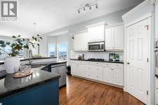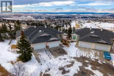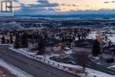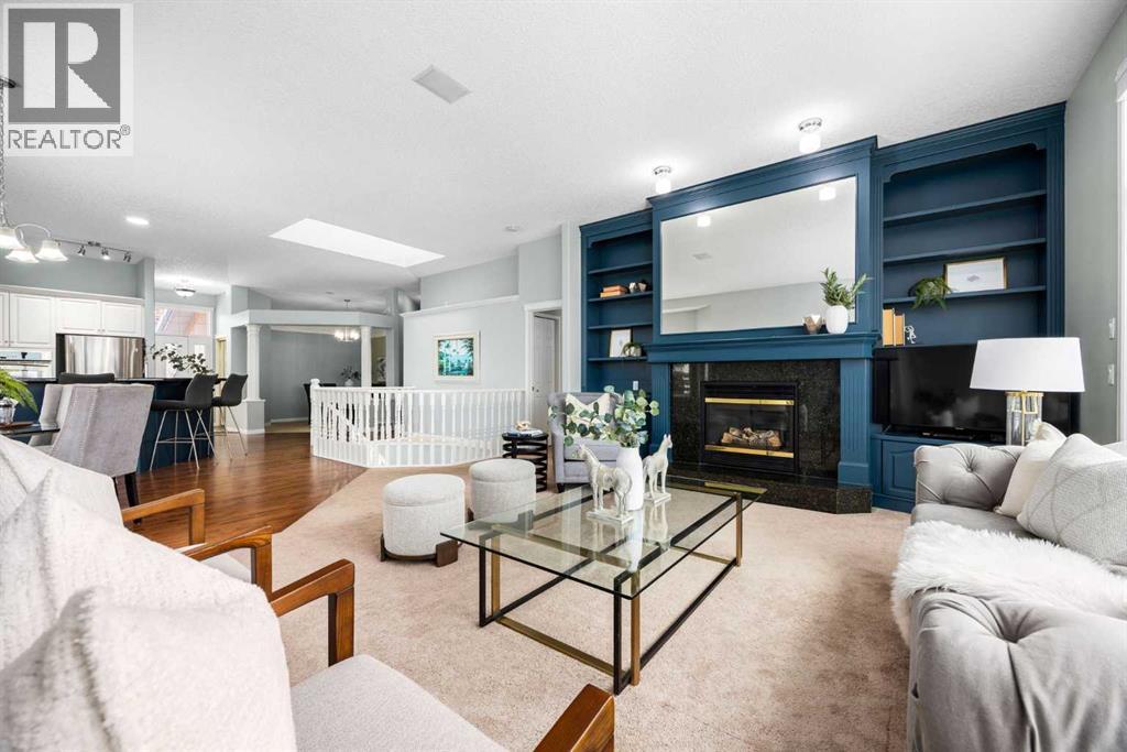 Positioned on one of the most desirable lots in the Villas of Gleneagles, capturing sweeping, unobstructed mountain and golf course views from nearly every room. Elevated above the lush fairways, the setting is both private and spectacular. West facing floor to ceiling windows fill the home with natural light and frame breathtaking sunsets over the Rockies. The bungalow layout offers convenient single level living on the main floor, blending spacious design with everyday comfort. Refinished hardwood floors extend through the kitchen and dining nook, highlighted by a striking island and stainless steel appliances. Updated lighting and fresh neutral paint create a timeless aesthetic, while the dramatic floor to ceiling fireplace anchors the main living space. A formal dining room, dedicated main floor office, and laundry room off the heated garage complete the upper level. The walkout lower level is designed for entertaining and relaxation, featuring a wet bar, large recreation space, second gas fireplace, and two additional bedrooms ideal for guests or hobby space. In floor heat and abundant storage add comfort and practicality. Additional highlights include electric Hunter Douglas blinds on the main floor, in ceiling sound system, Central Air Conditioning, and a heated double garage with epoxy flooring. Enjoy true lock and leave living with snow removal and lawn care included, leaving more time to explore the miles of pathways weaving throughout the community or to enjoy a round at The Links of Gleneagles just outside your back door. A rare opportunity in one of Cochrane’s most sought after villa communities. (id:6769)